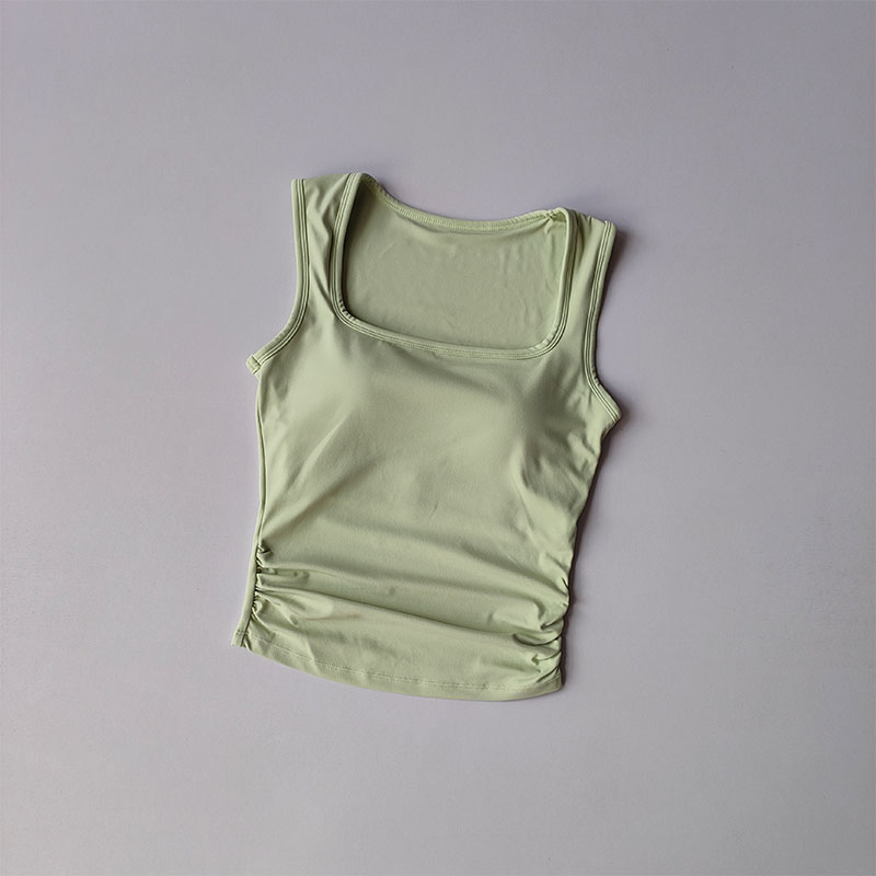 Square Collar Fixed One-piece Sports Vest for Women Running Breast Collection Cross Shaped Fitness Bra Pilates Yoga Suit Summer