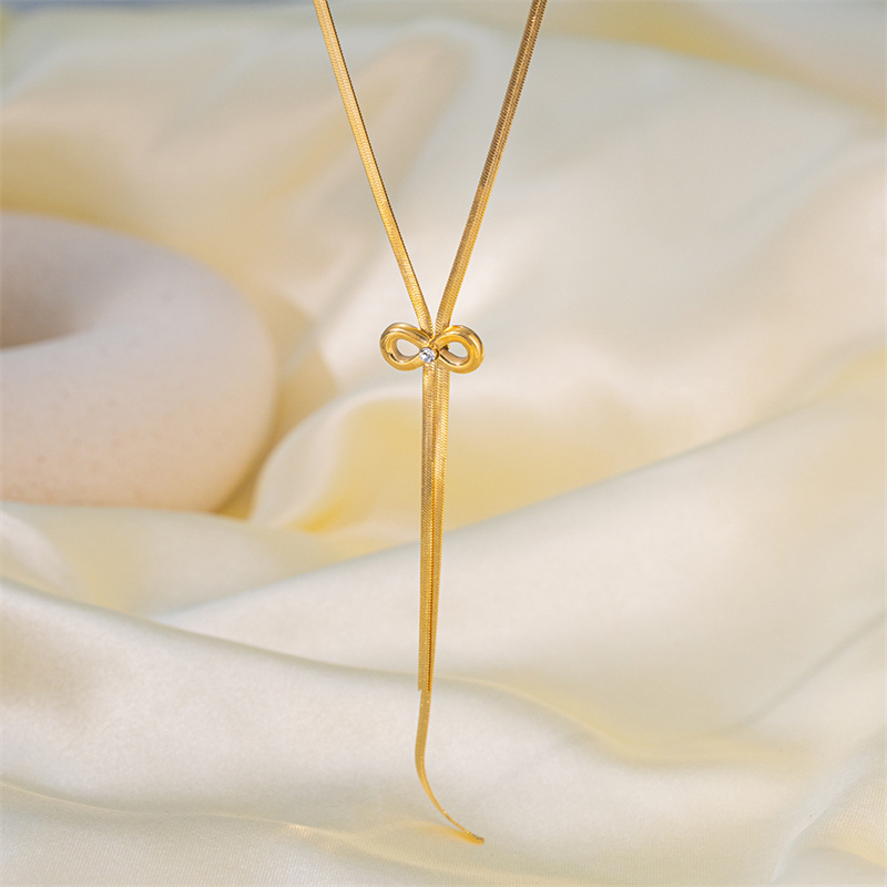 Stainless Steel Bow Knot Necklace For Women Delicate Gold Color Bow Tassel Collar Chain Choker Daily Match Party Jewelry Gifts
