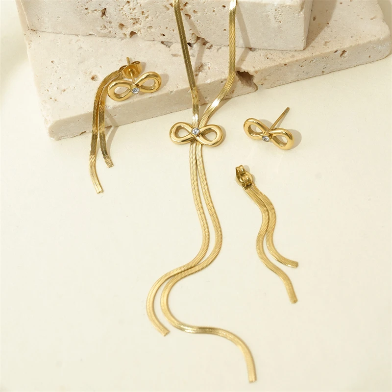 Stainless Steel Bow Knot Necklace For Women Delicate Gold Color Bow Tassel Collar Chain Choker Daily Match Party Jewelry Gifts