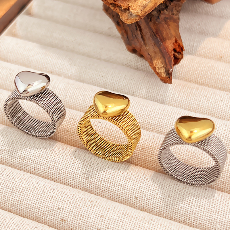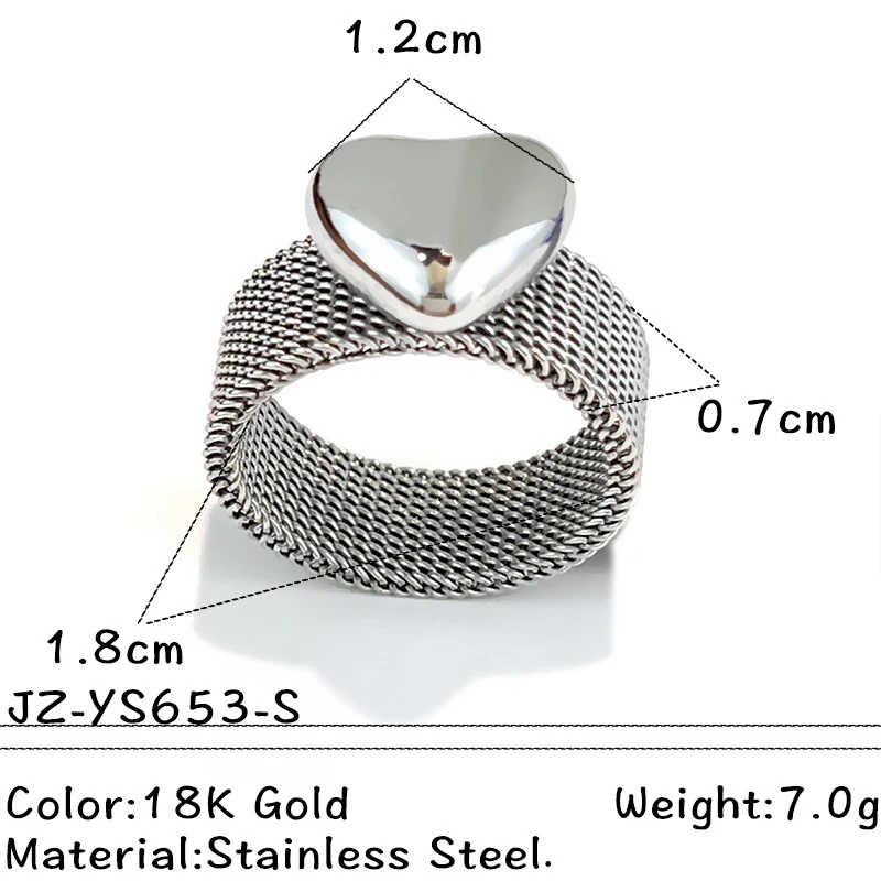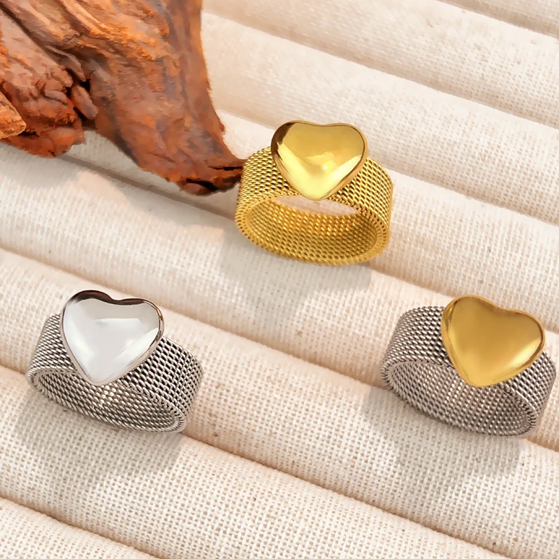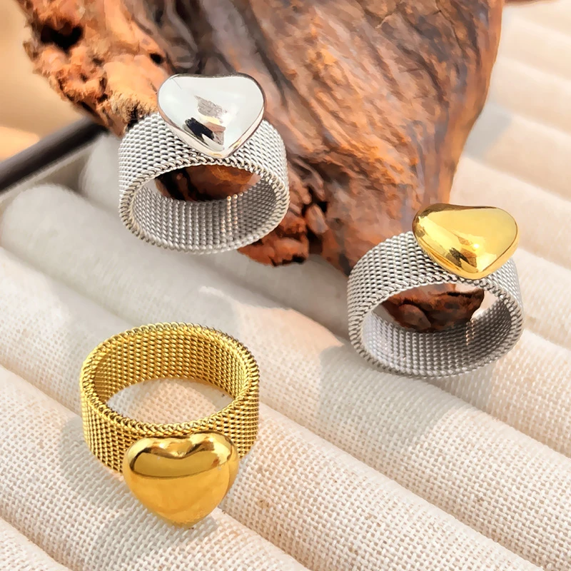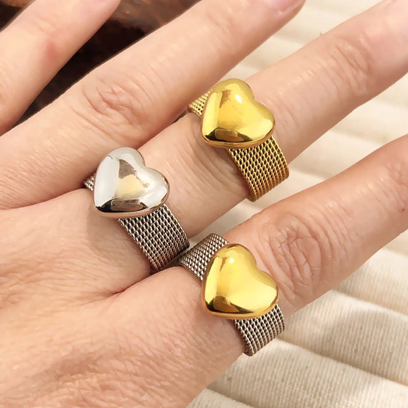 Stainless Steel Heart-Shaped Non Fading Rings for Women Niche Metal Mesh Chain Index Finger Ring Personality Jewelry Gifts