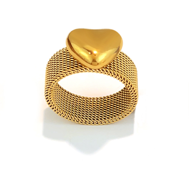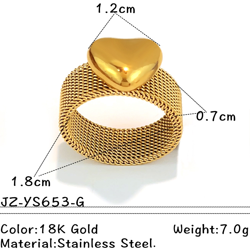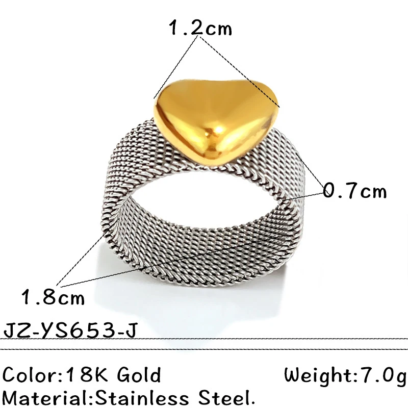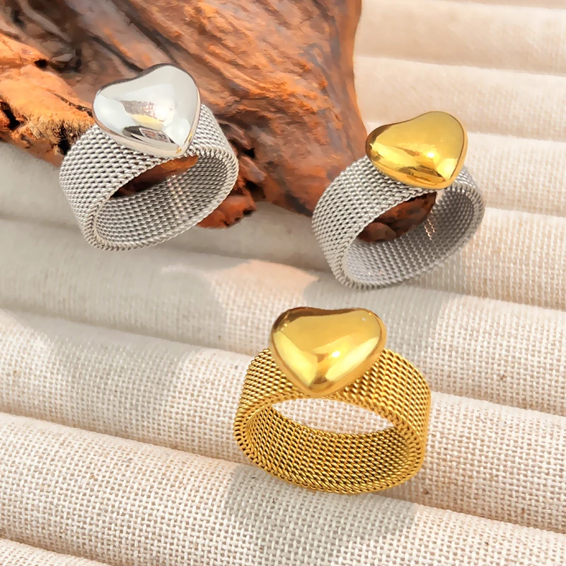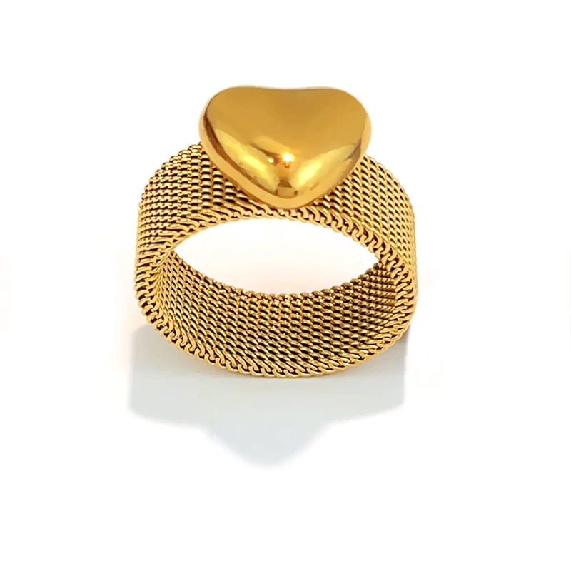 Stainless Steel Heart-Shaped Non Fading Rings for Women Niche Metal Mesh Chain Index Finger Ring Personality Jewelry Gifts