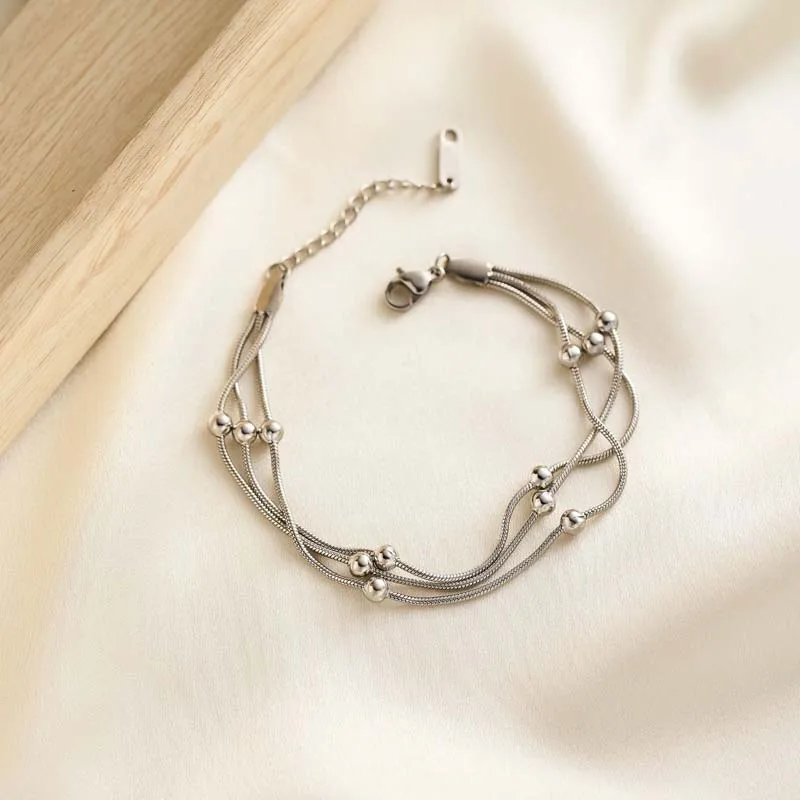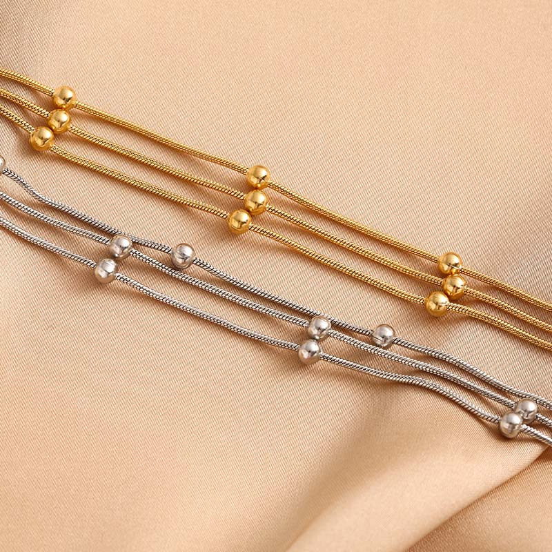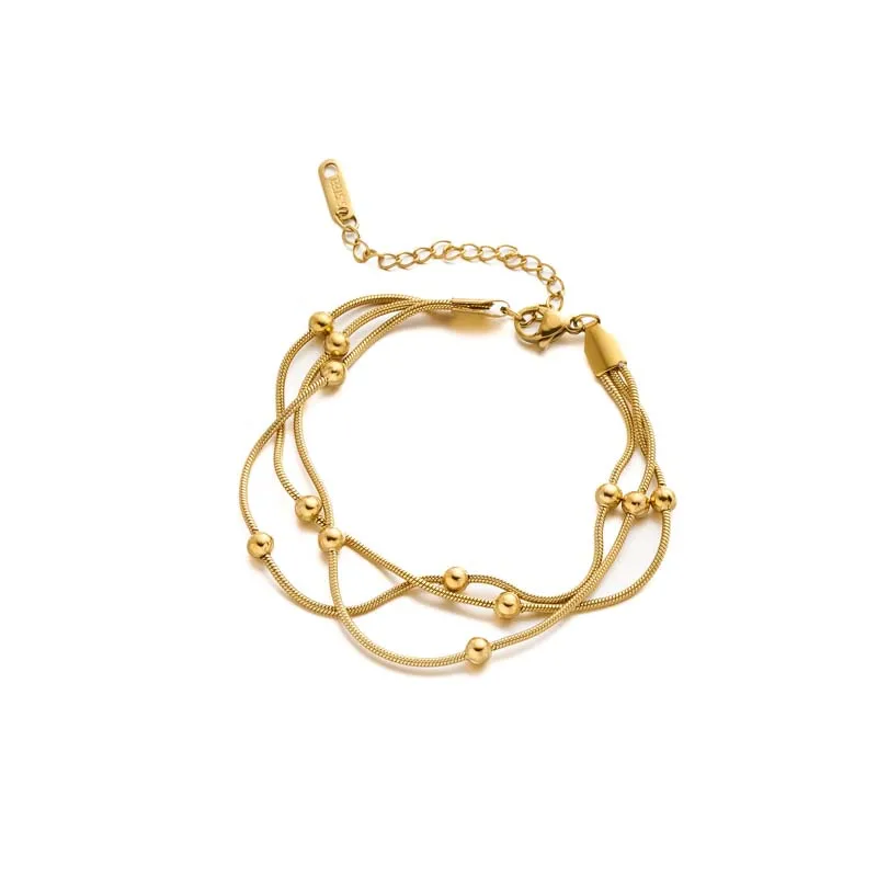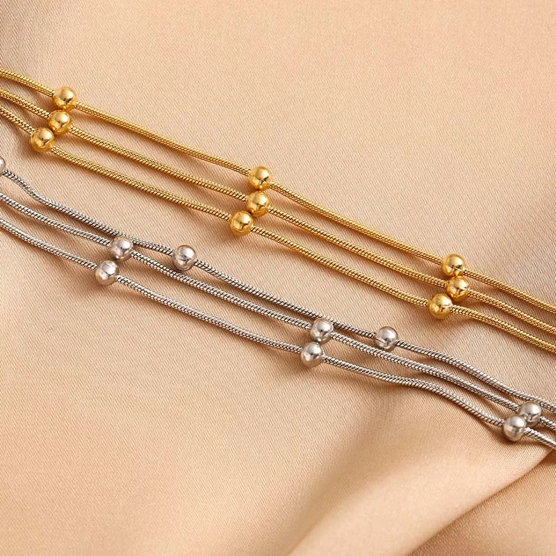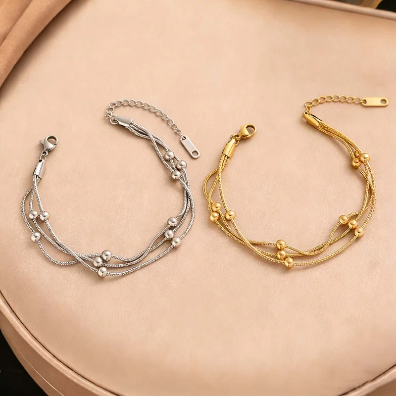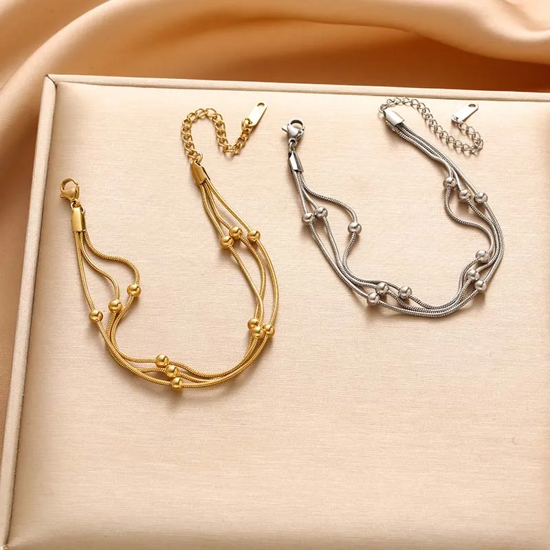 Stainless Steel Metal Round Beaded Bracelets For Women Fashion Gold Color Multilayer Layered Chain Bracelet Wedding Jewelry Gift