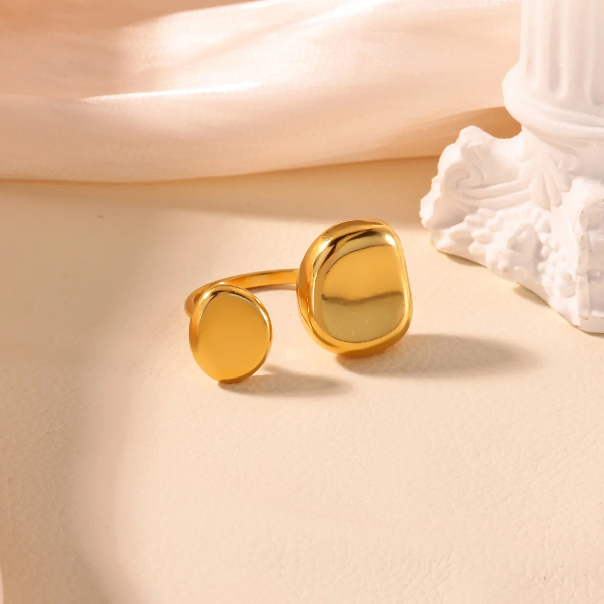 Stainless Steel Open Double Rings For Women 18K Gold Plated Geometric Ring Party Christmas Jewelry Gift