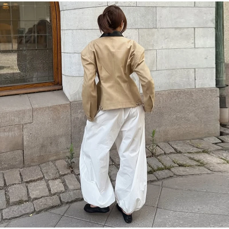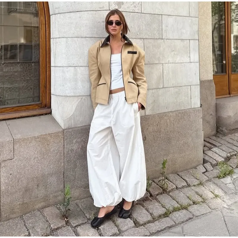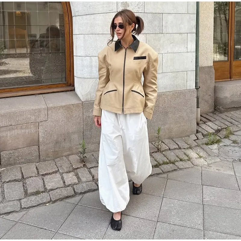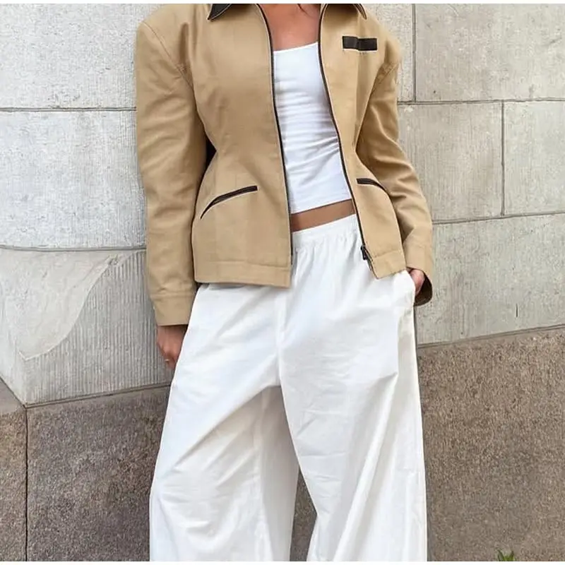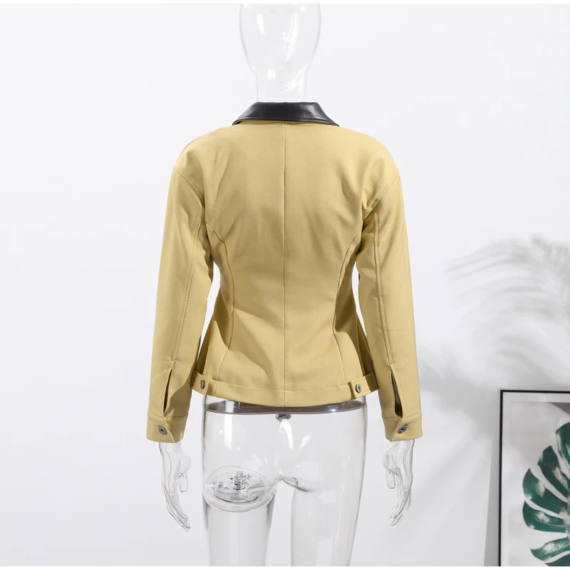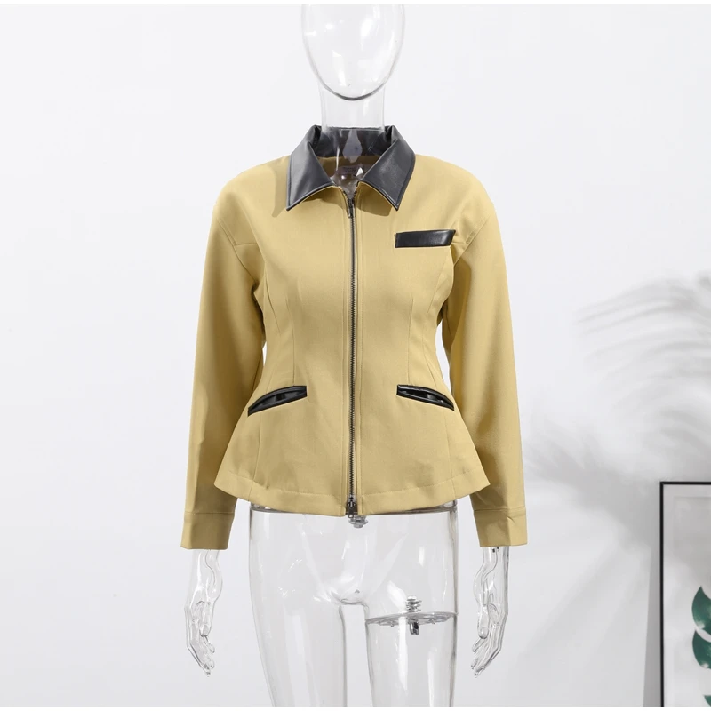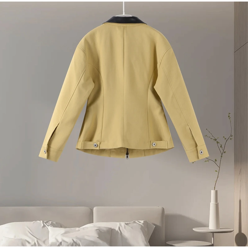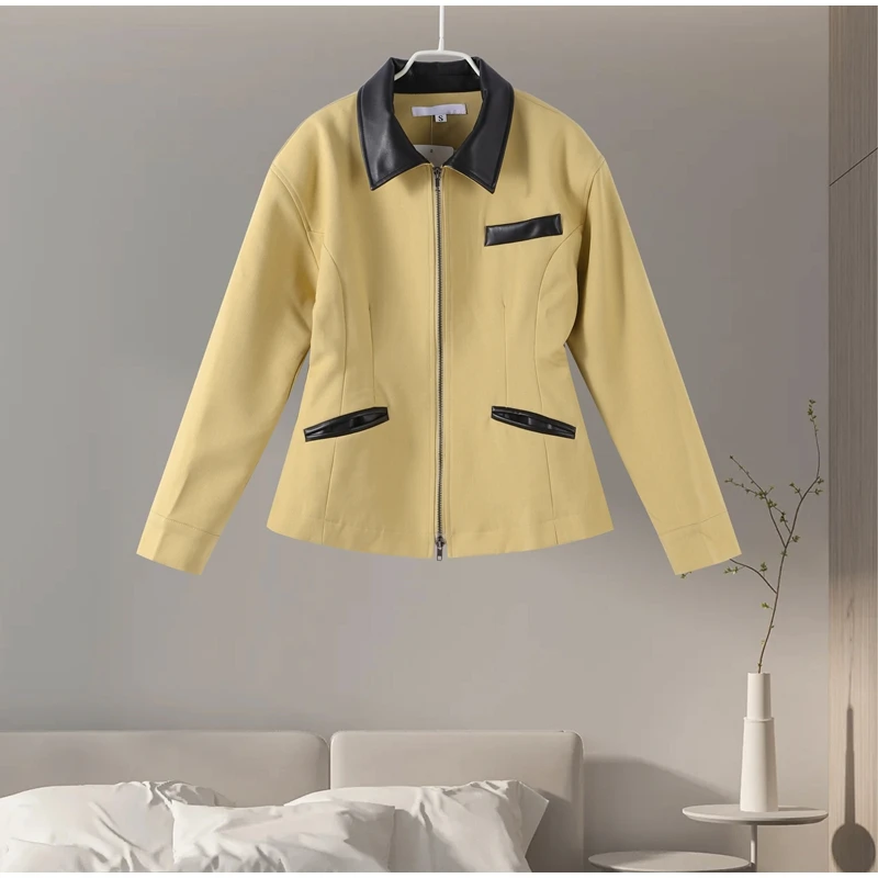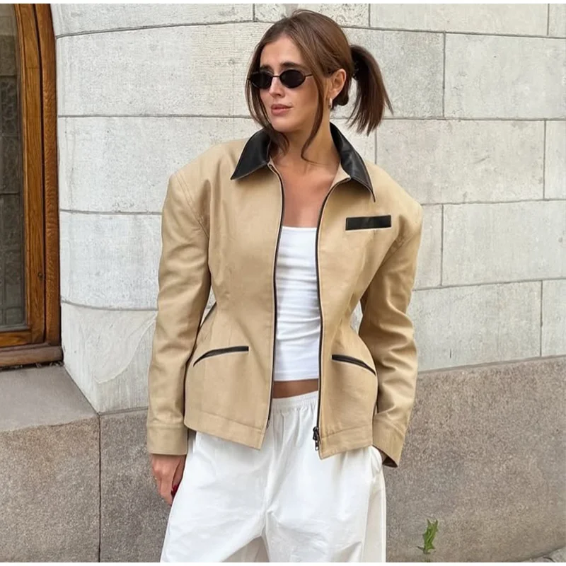 Street Fashion Contrast Double-headed Zipper Jackets Women Slim Waist Lapel Long Sleeve Coats Female 2025 Autumn Lady Outwears