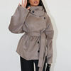 Stylish Woolen Belt Coat Women Stand Collar Buttons Pocket Full Sleeve Jacket Female 2025 Autumn Winter Fashion Lady Outwear New