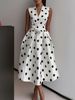 Summer Dresses for Women Sleeveless Retro Hepburn Polka Dot V-Neck Black White Pin Up Party Rope Big Swing Vestidos