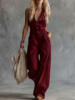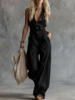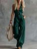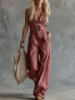 Summer Elegant V-neck Party Jumpsuit Women Casual Sleeveless Pocket Solid Color Party Romper Fashion Button Linen Playsuits
