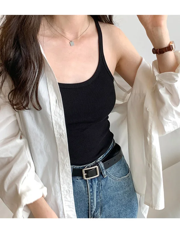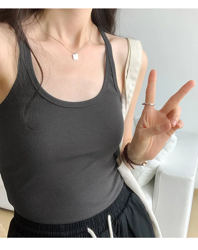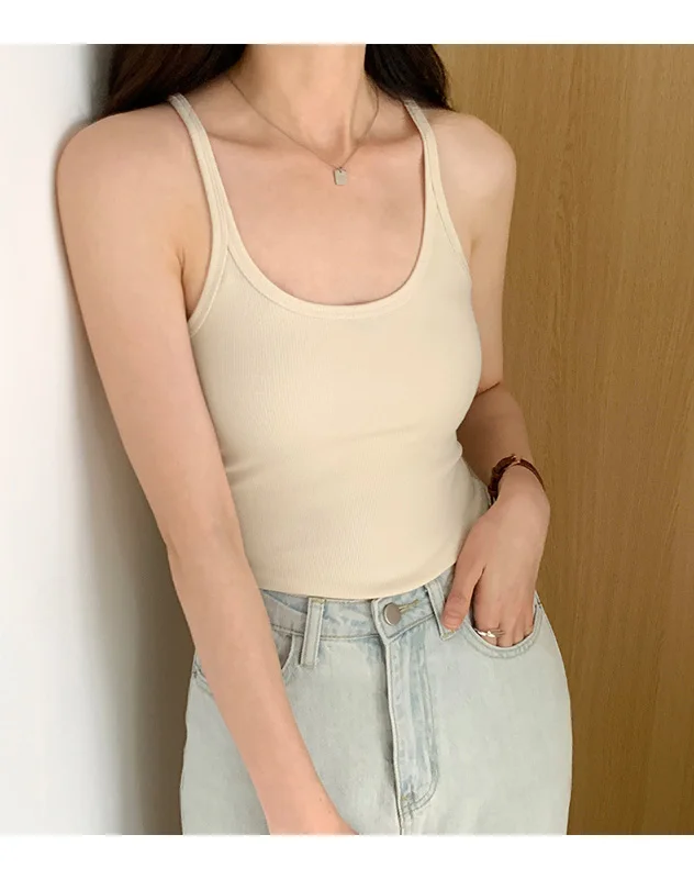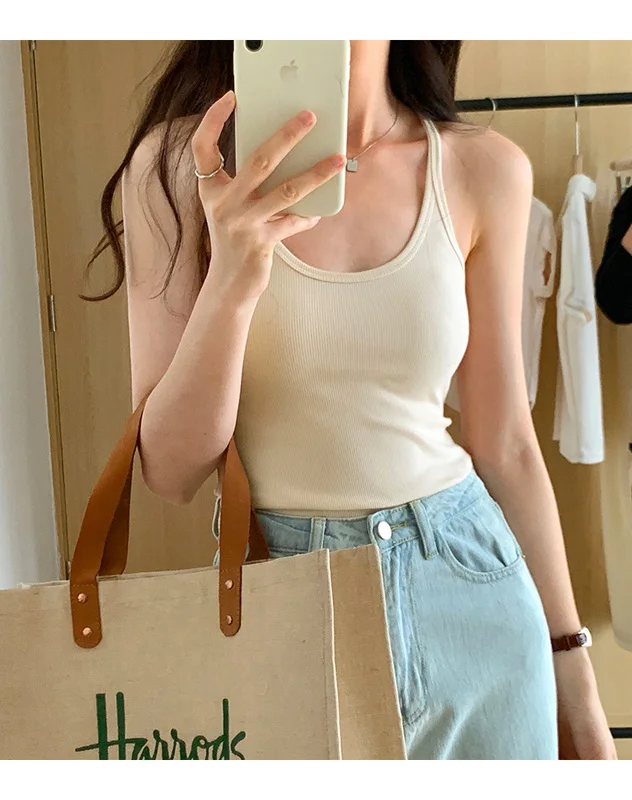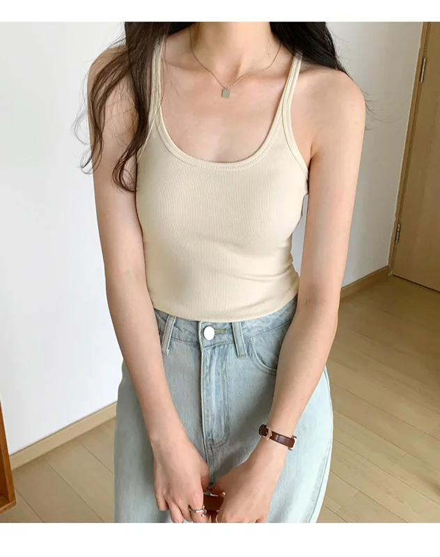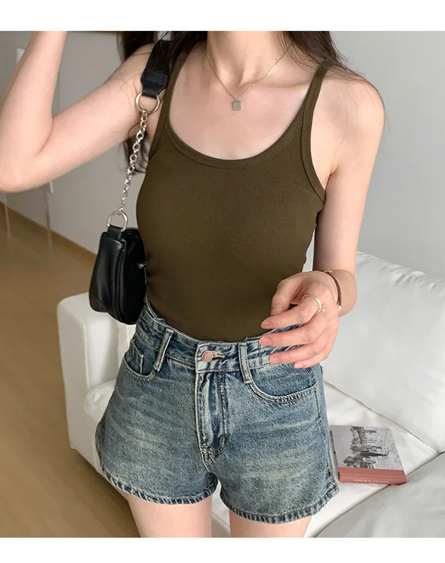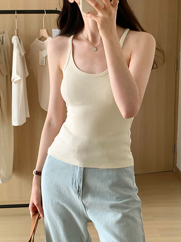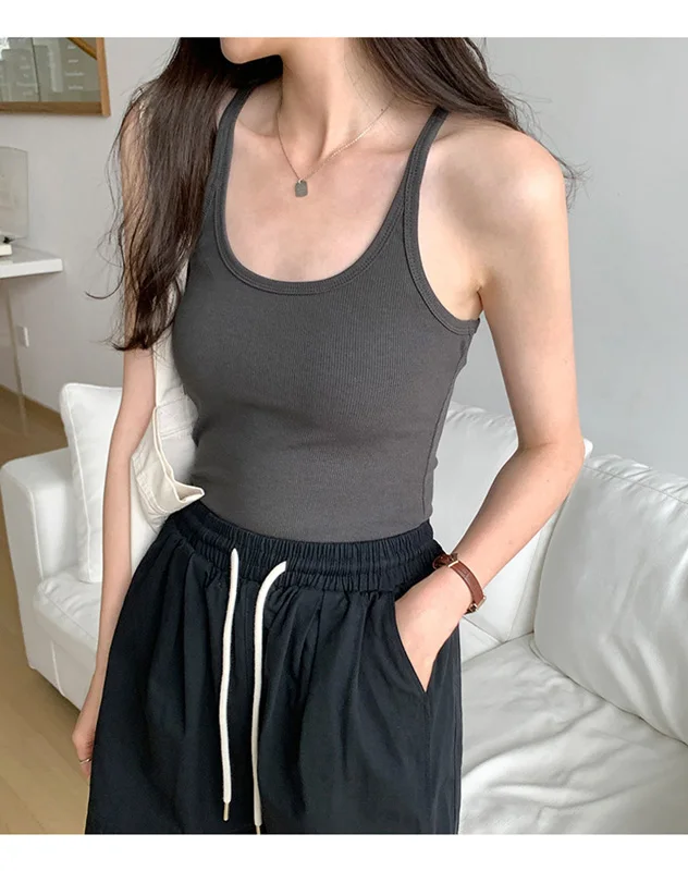 Summer New Solid Color Simple Women’s Tanks Slim Casual Fashion Female Top Apricot Dark Grey Dark Coffee Black Tanks
