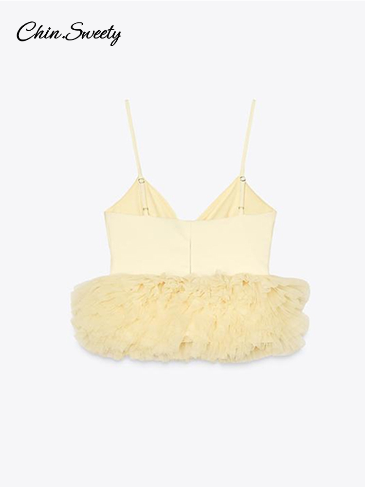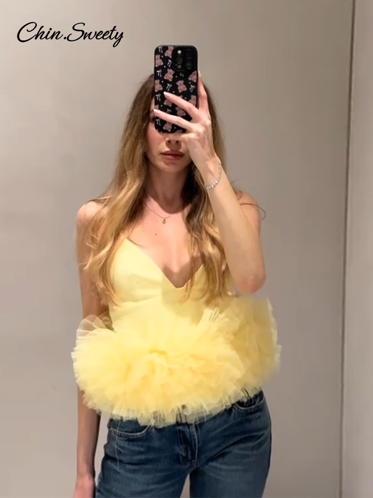 Summer Women’s Yellow Vest Tops Mesh Sleeveless Backless Zipper Crop Tanks Female 2025 Sexy Lady Party Club Y2K Camisole New