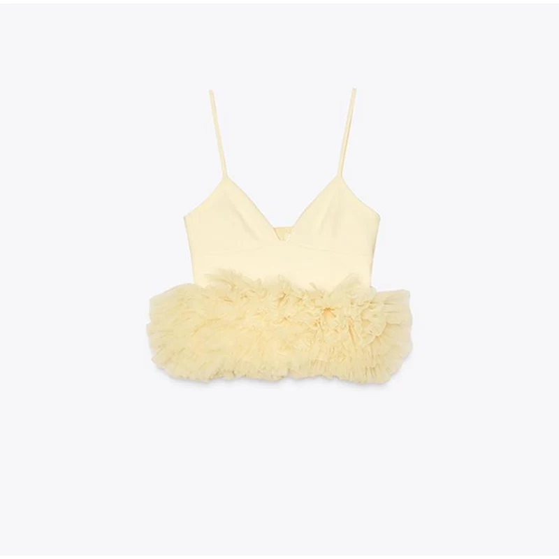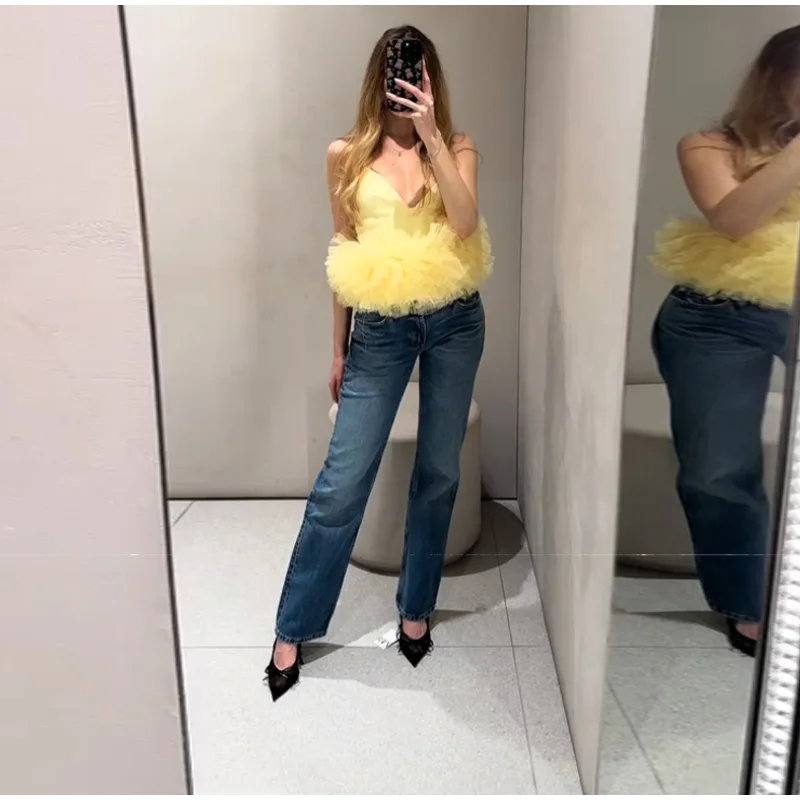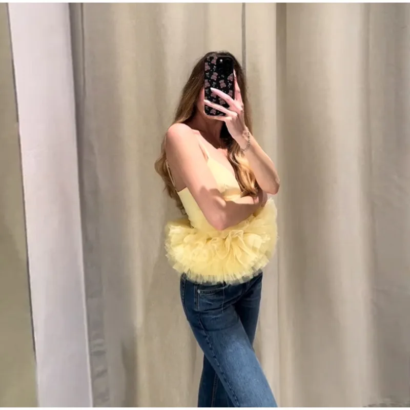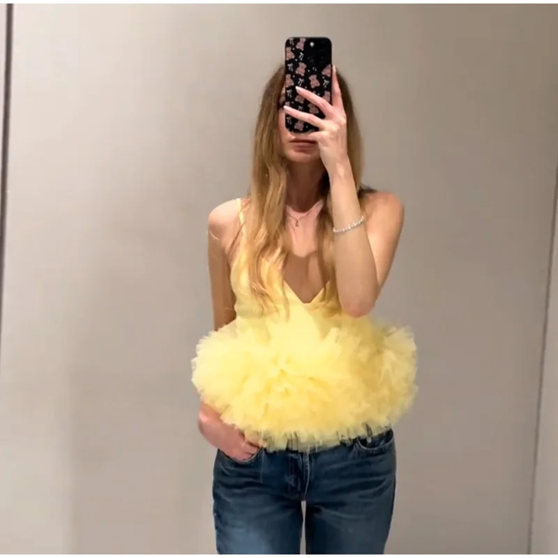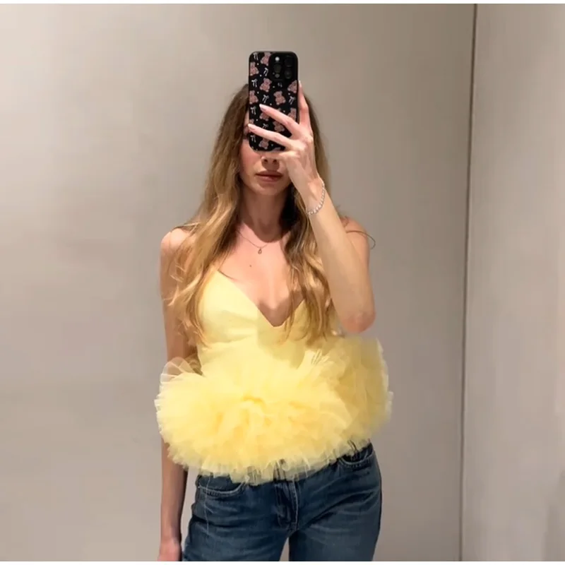 Summer Women’s Yellow Vest Tops Mesh Sleeveless Backless Zipper Crop Tanks Female 2025 Sexy Lady Party Club Y2K Camisole New