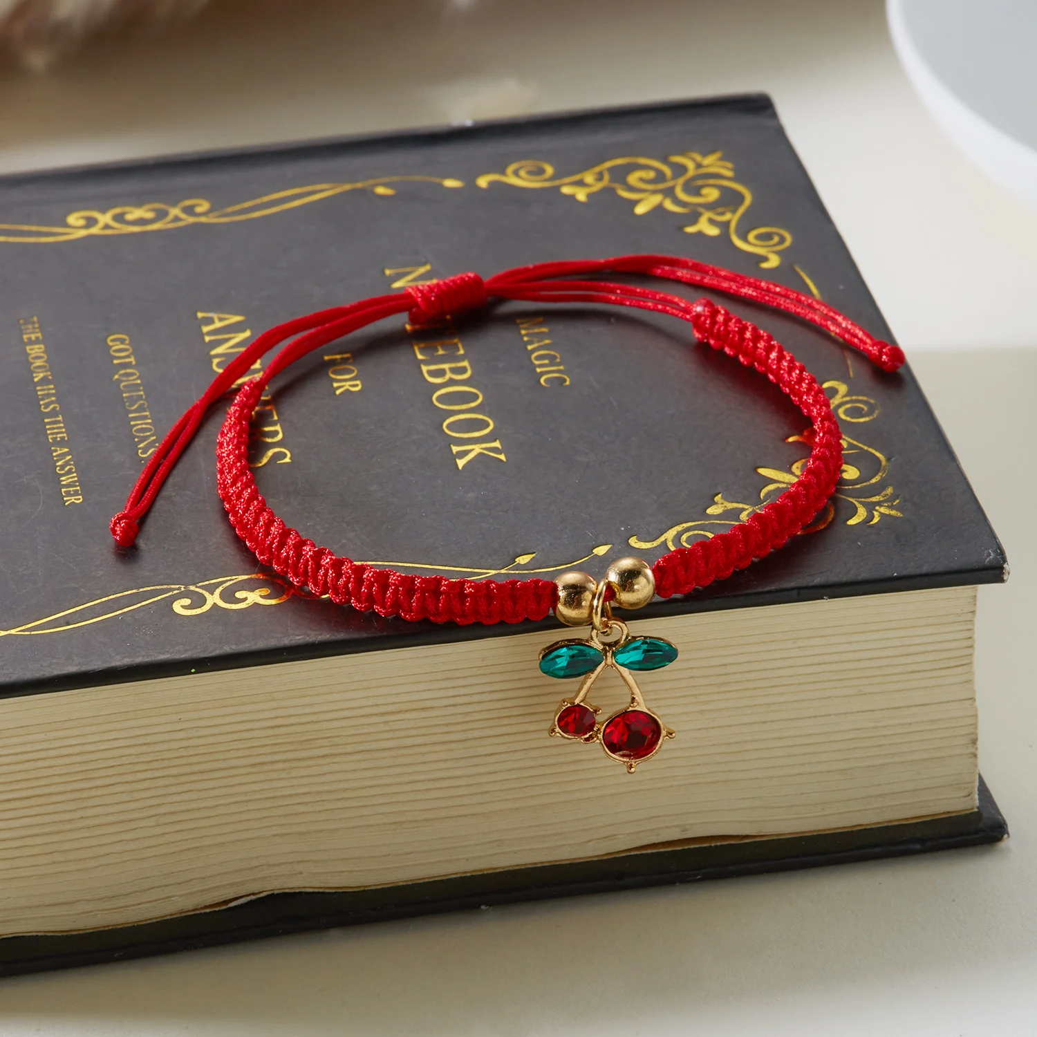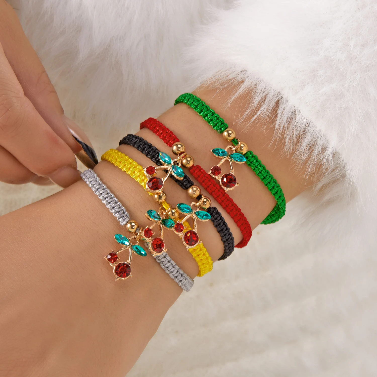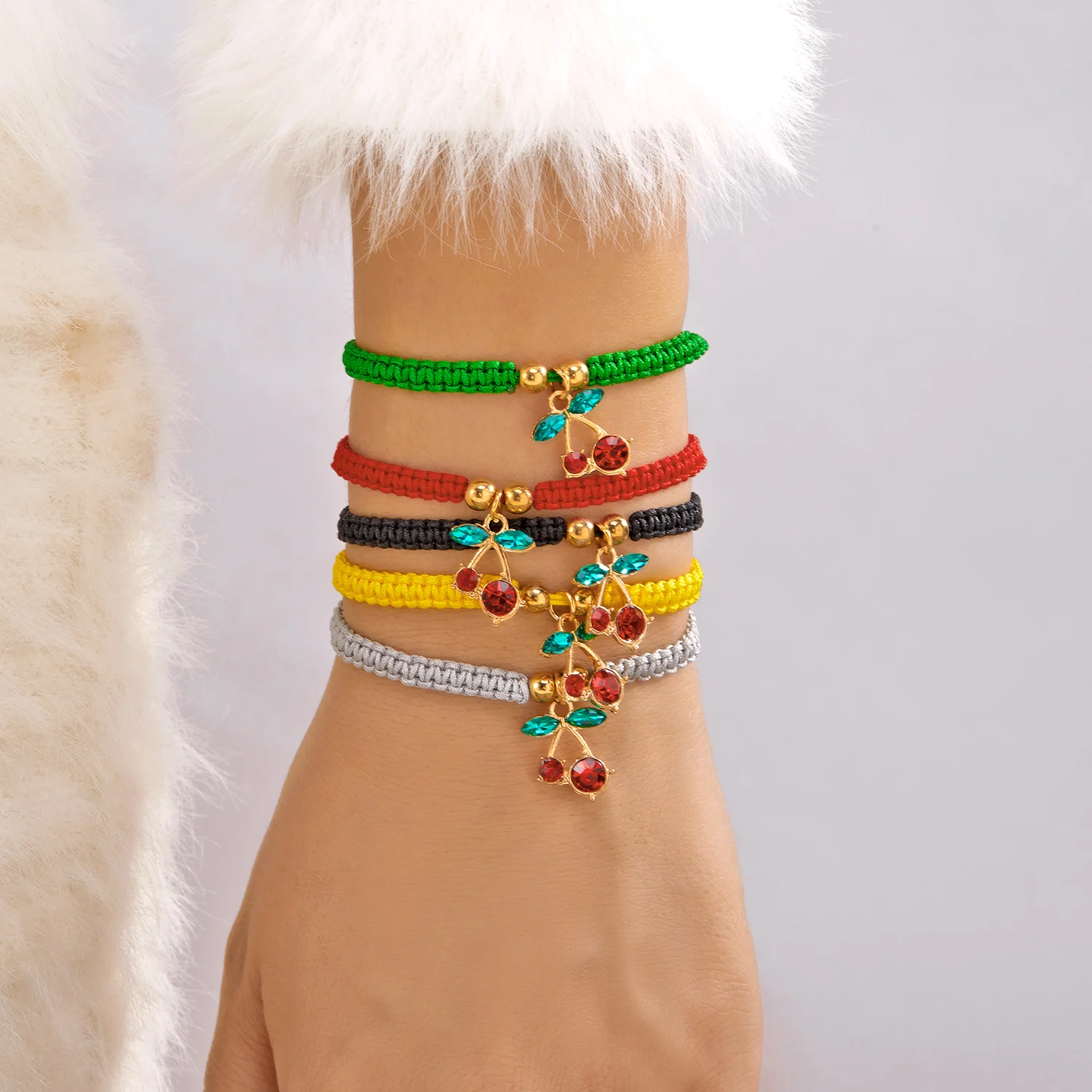 Sweet Cute Red Cherry Charm Woven Bracelet For Women Y2K Crystal Zircon Fruit Handmade Bangles Girls Party Festival Jewelry Gift
