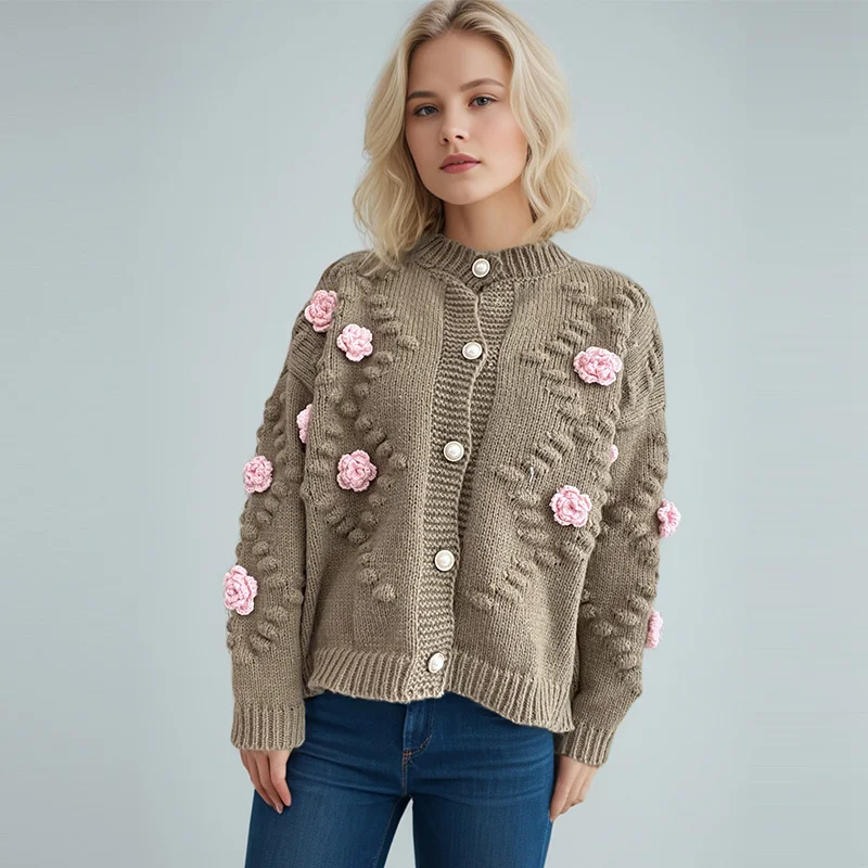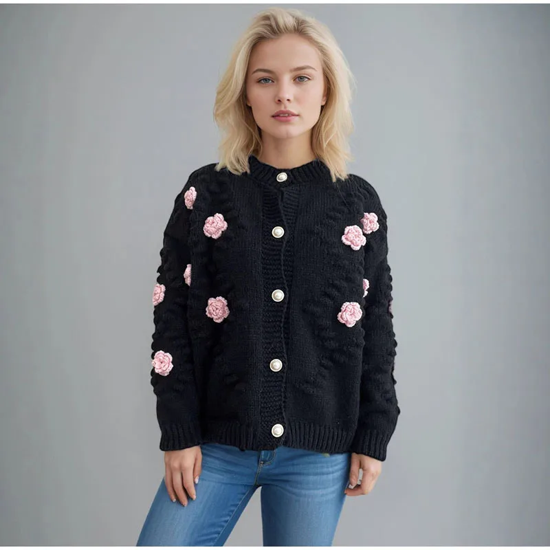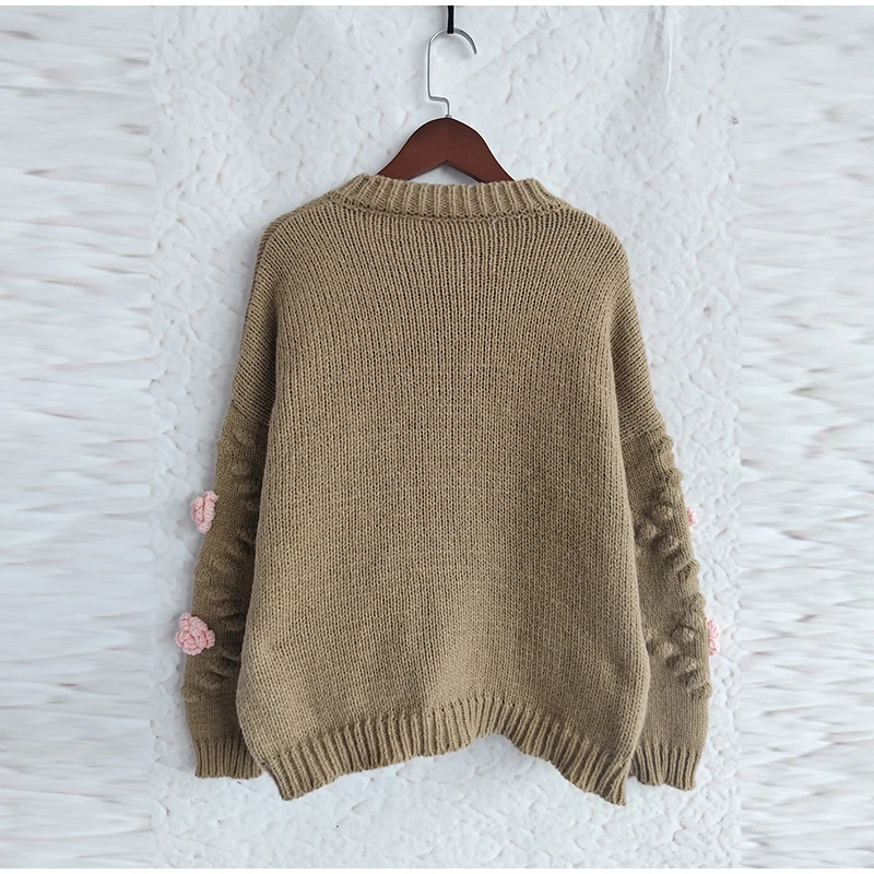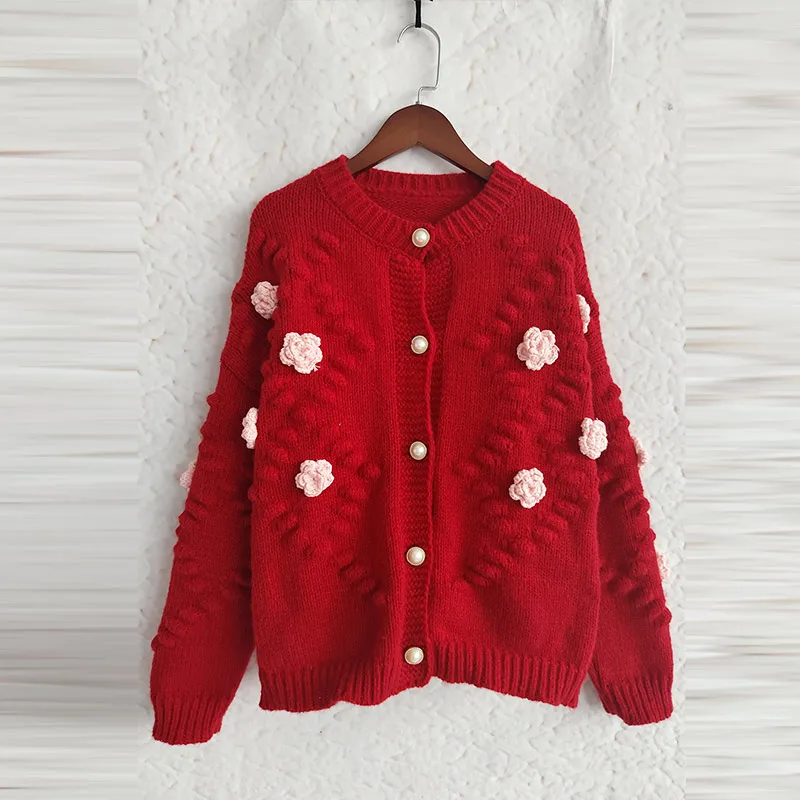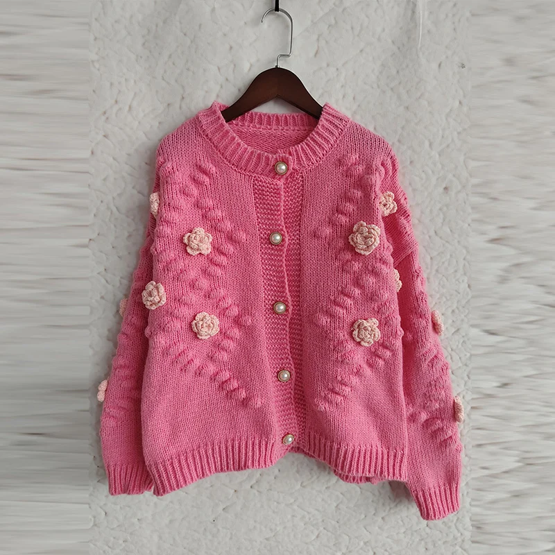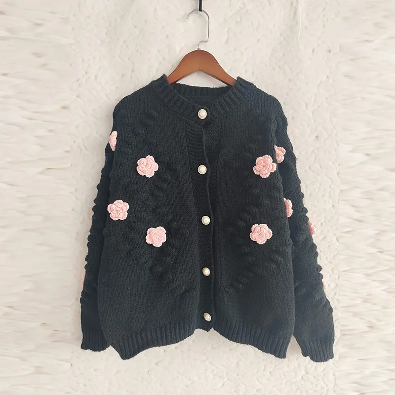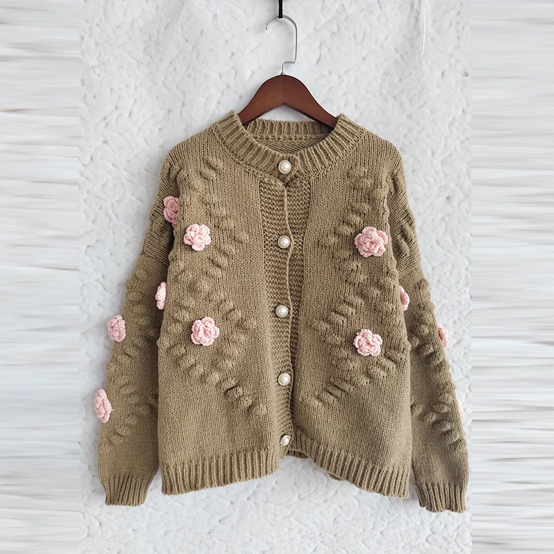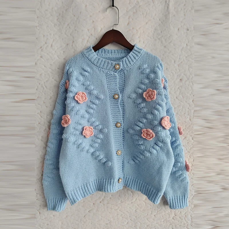 Sweet Knitted 3D Flower Sweater Women Casual O-neck Single Breasted Long Sleeves Cardigan Female Autumn Fashion Lady Sweaters
