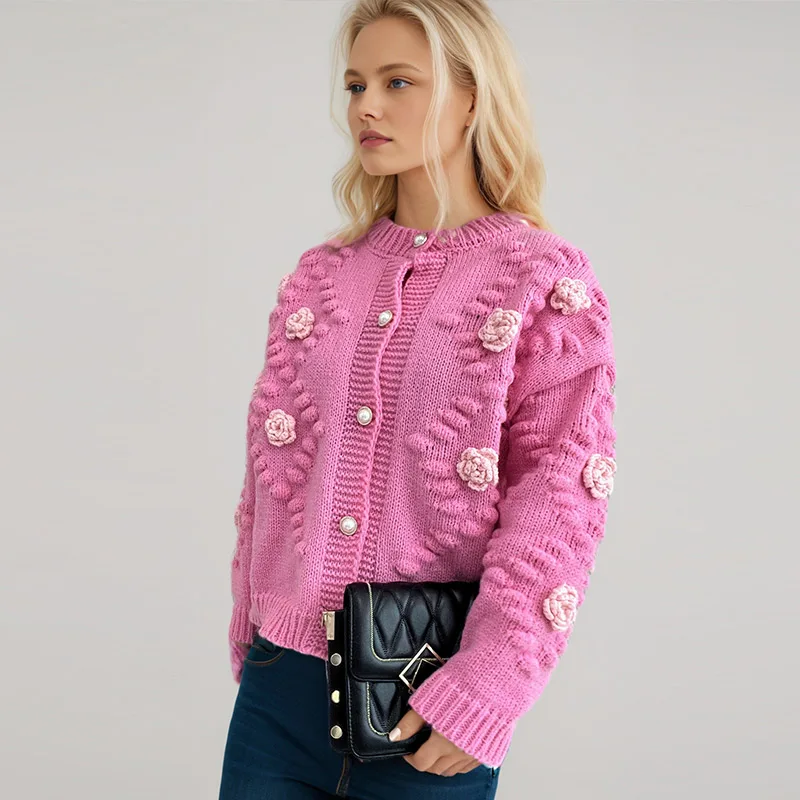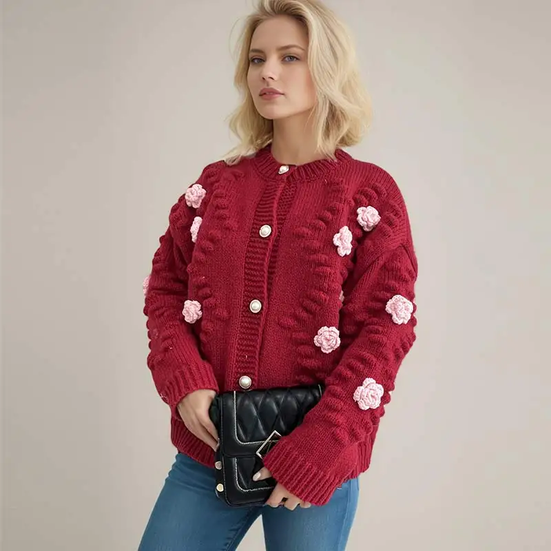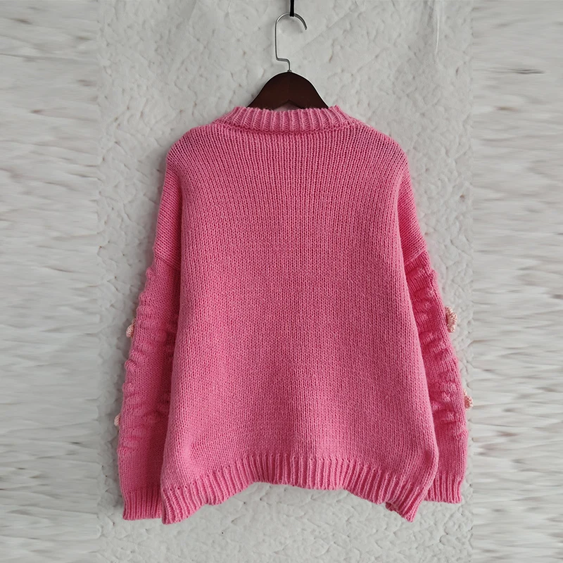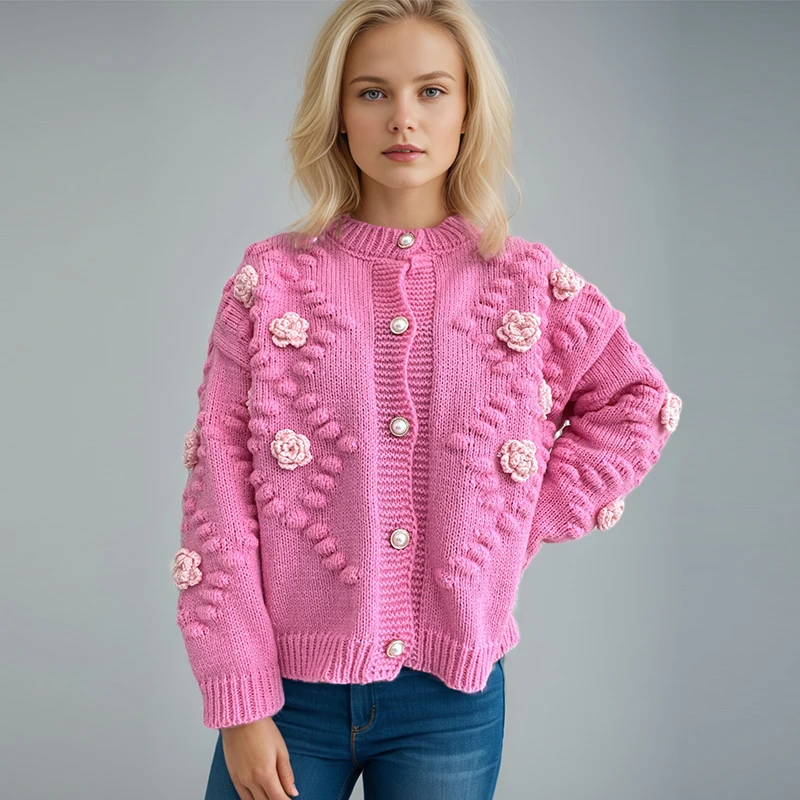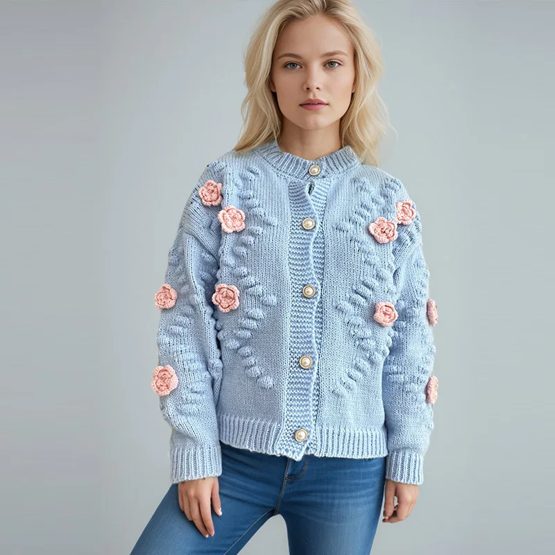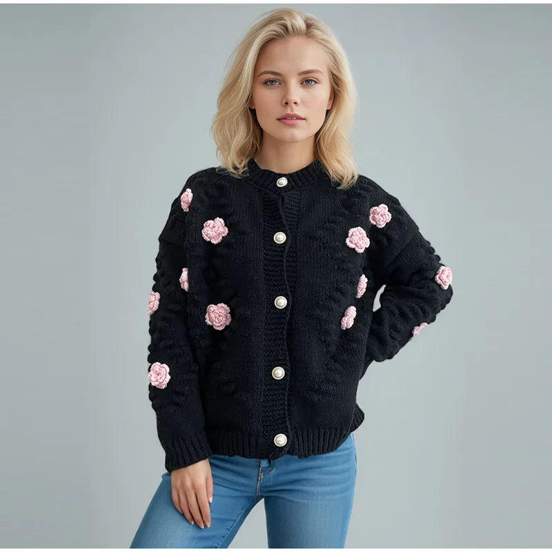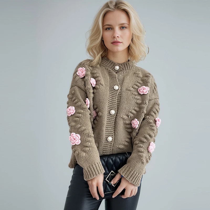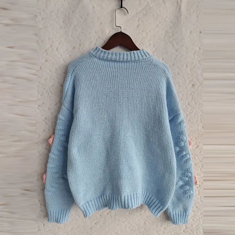 Sweet Knitted 3D Flower Sweater Women Casual O-neck Single Breasted Long Sleeves Cardigan Female Autumn Fashion Lady Sweaters