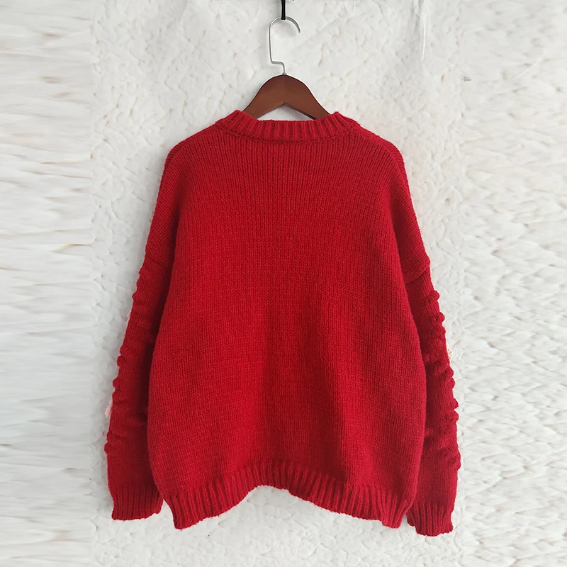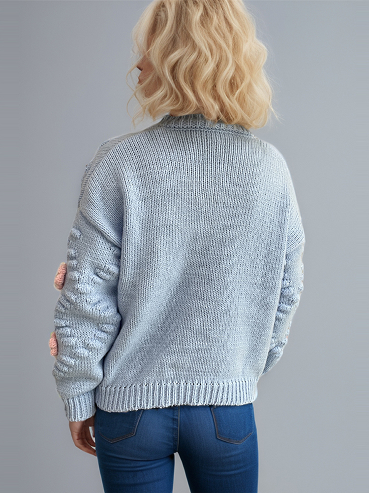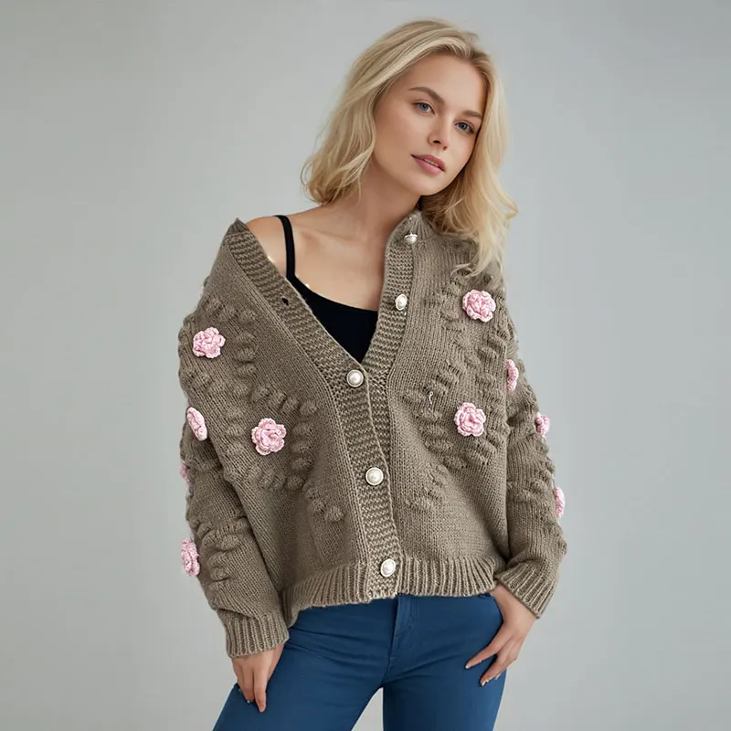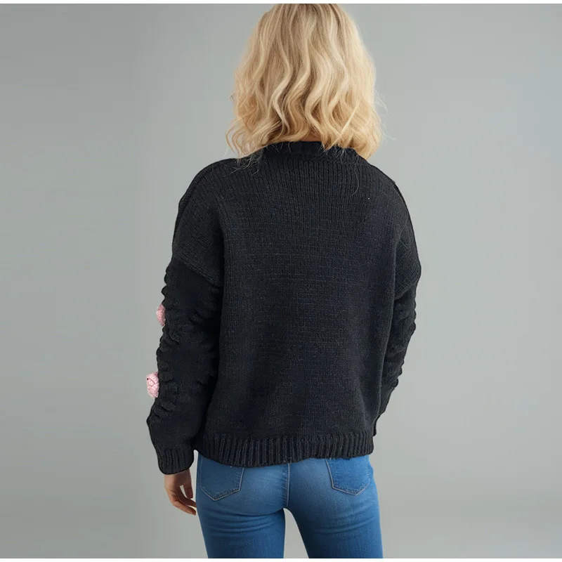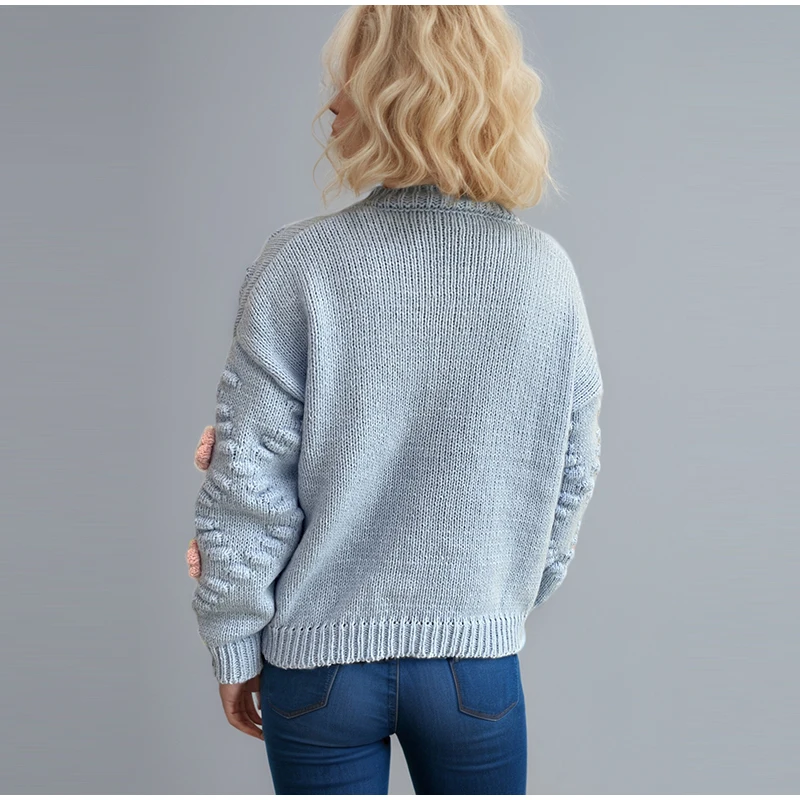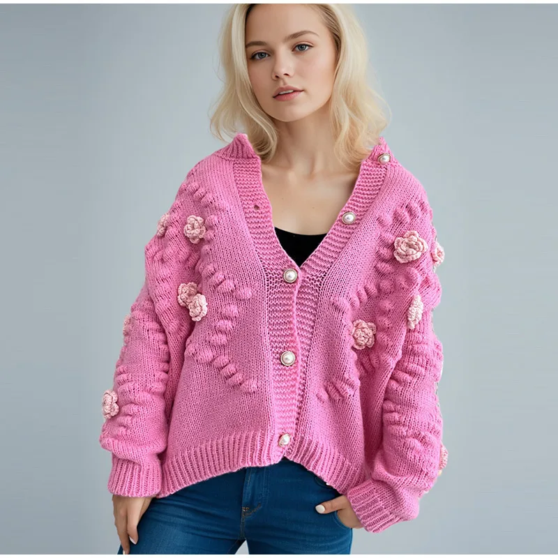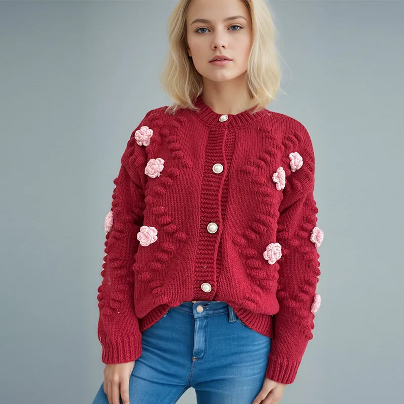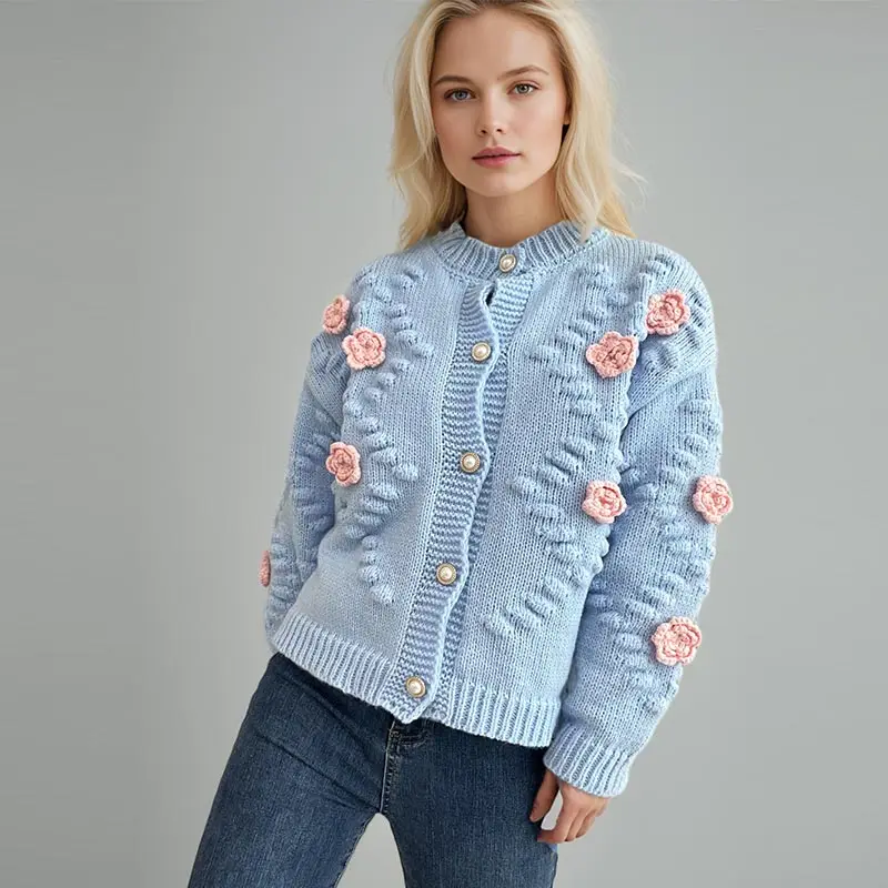 Sweet Knitted 3D Flower Sweater Women Casual O-neck Single Breasted Long Sleeves Cardigan Female Autumn Fashion Lady Sweaters