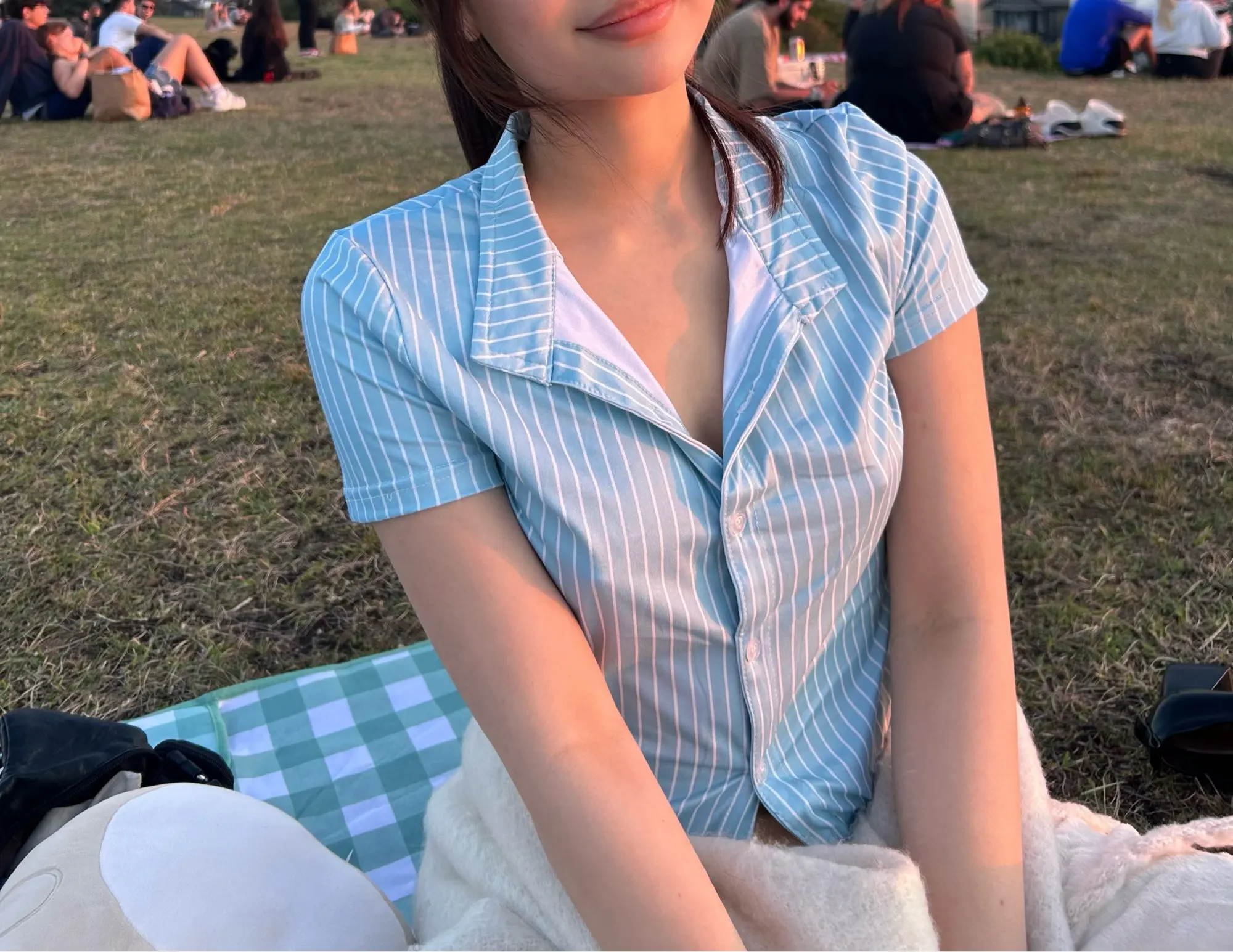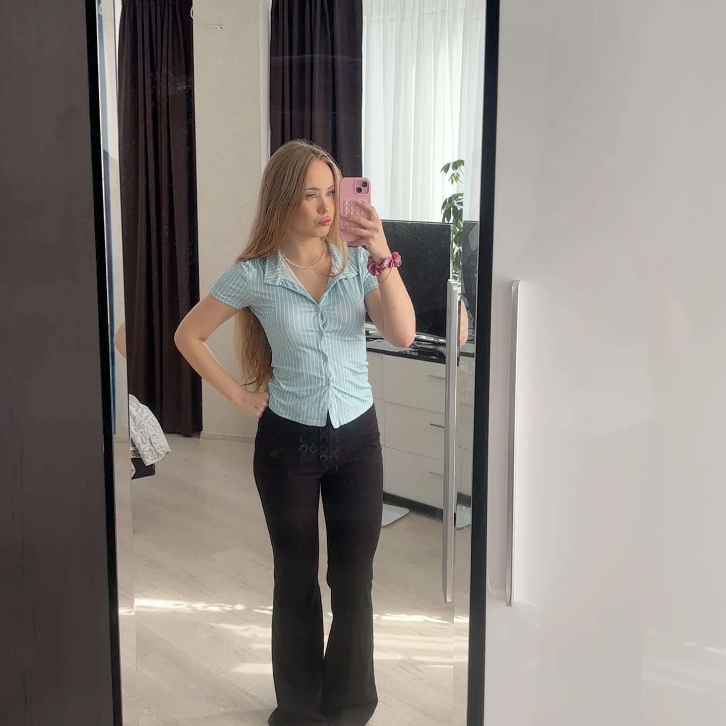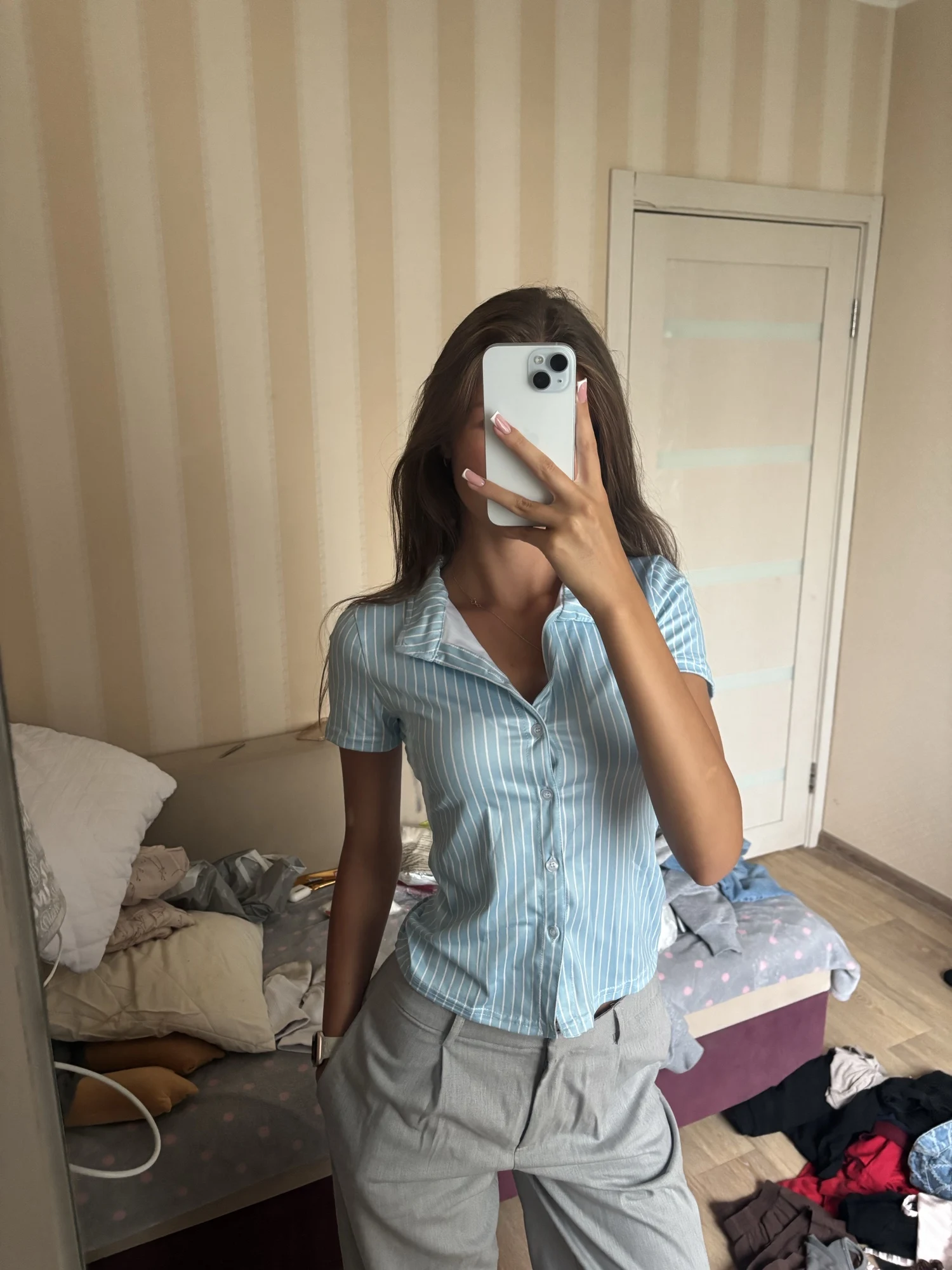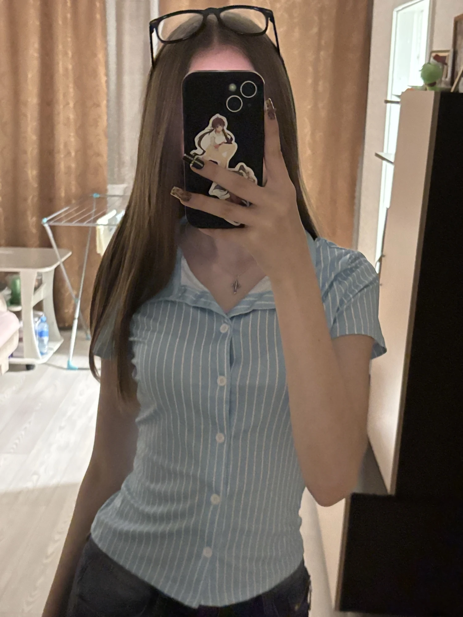 The shirt is good, comfortable to wear, but it runs a bit small. I usually wear XS, but here size S is a bit small both in the chest and waist (my measurements: waist 75, hips 60, hips 90, height 162). and the color of the shirt is also slightly different, in real life the color is brighter, not like in the photo, in the photo it is lighter and more cute, but overall, I'm satisfied and I like it :) ☘️ if you are looking for a shirt that won't hug your figure and look like a blouse, then it's probably better to look for something else. 🍓 🤲🏻