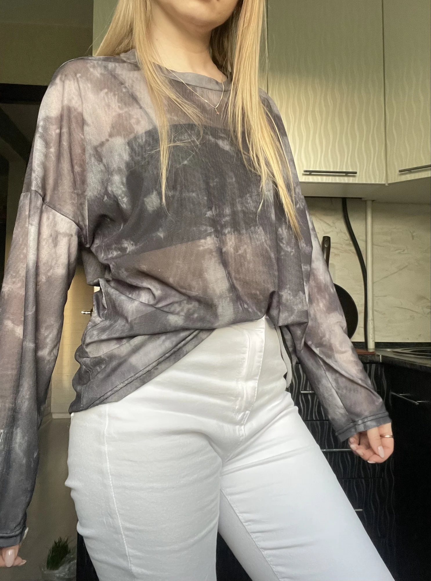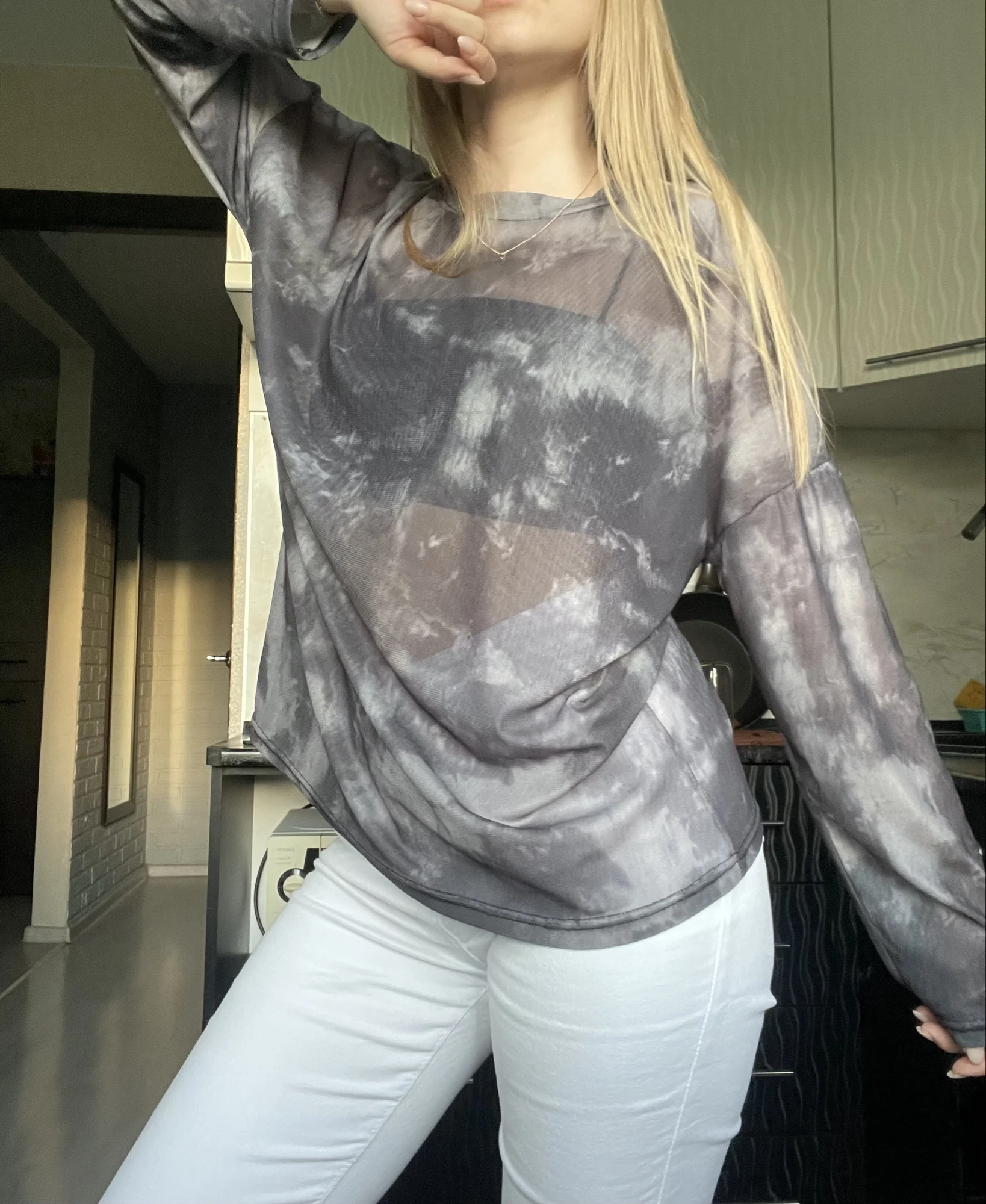 cool blouse!! but darker than in the photo. Looks cool, I'll definitely wear it in the summer. semi-transparent, but dark, so it barely shows through.