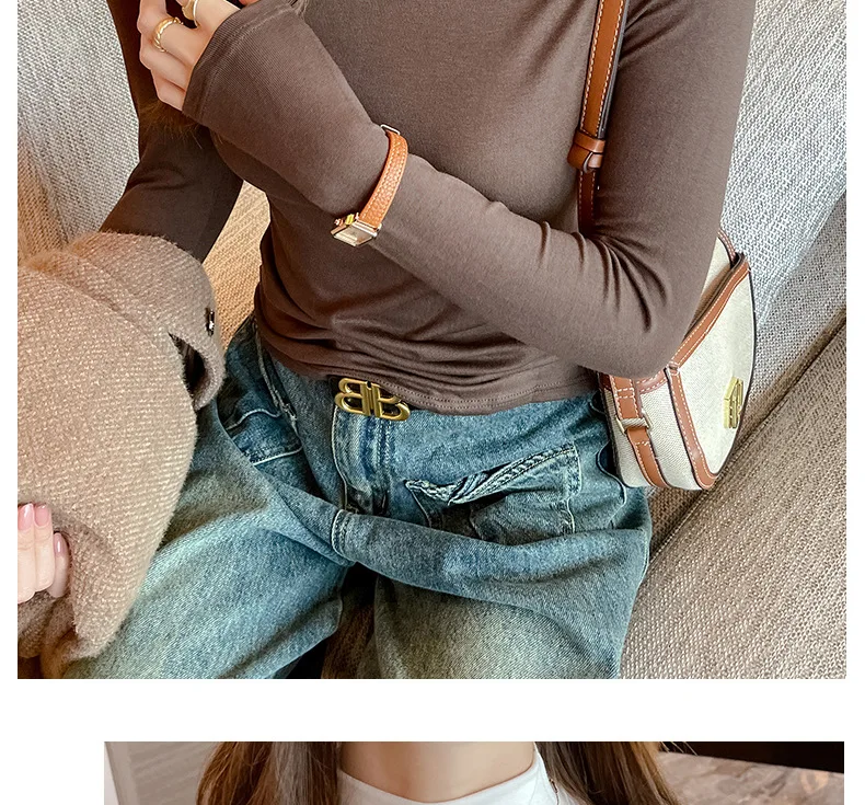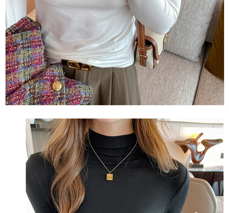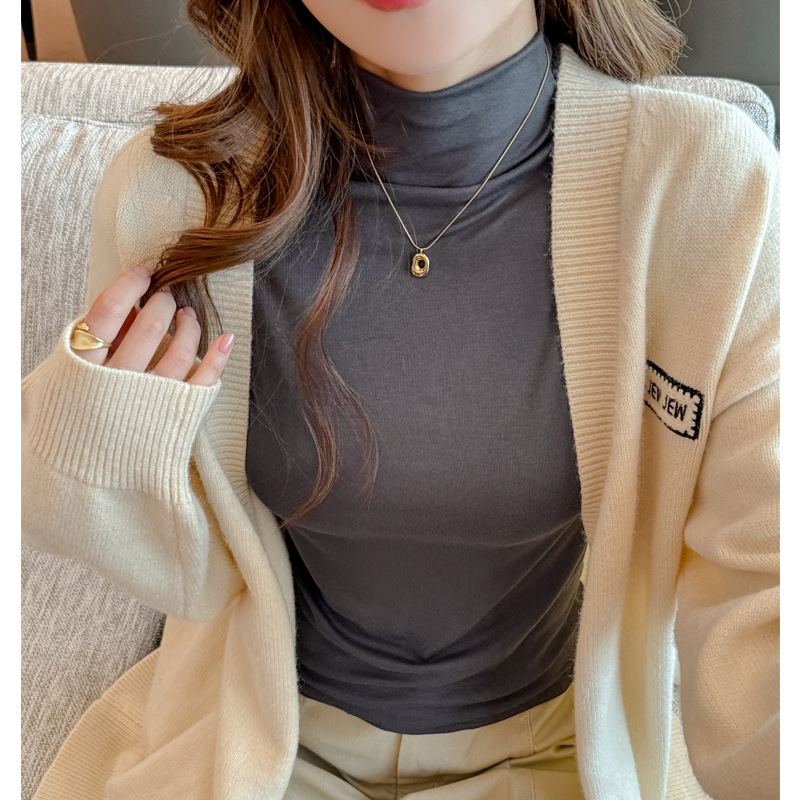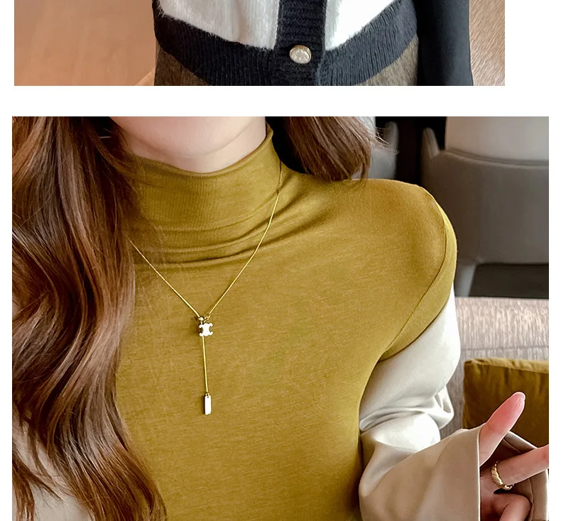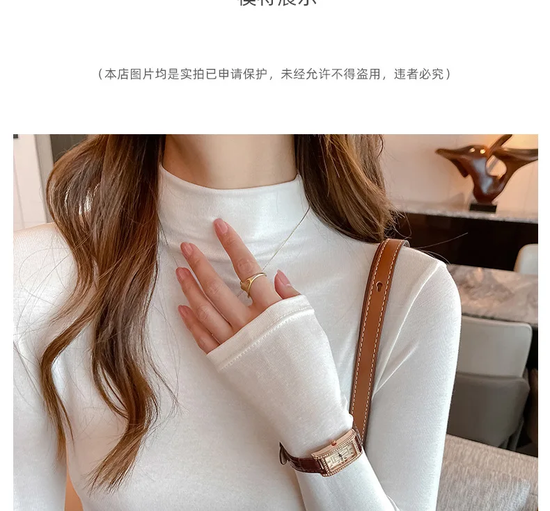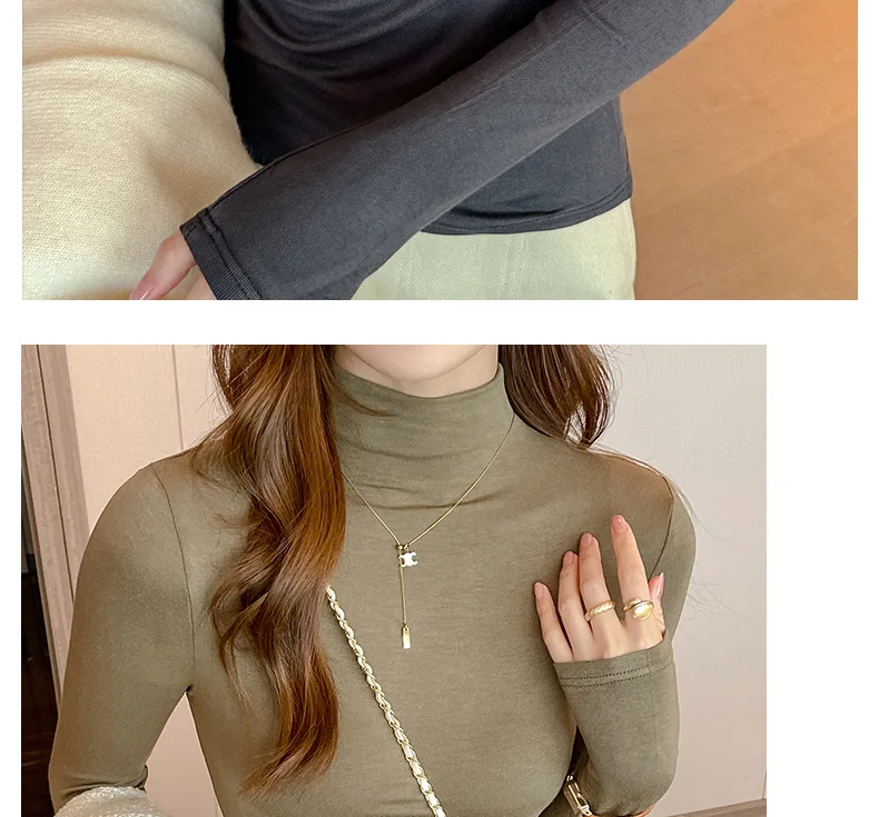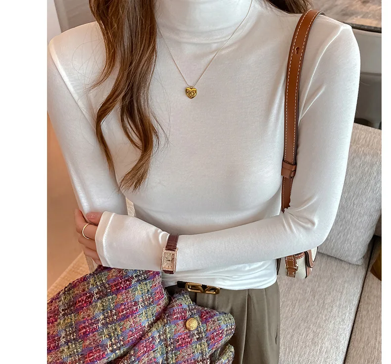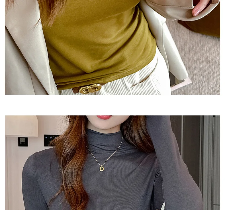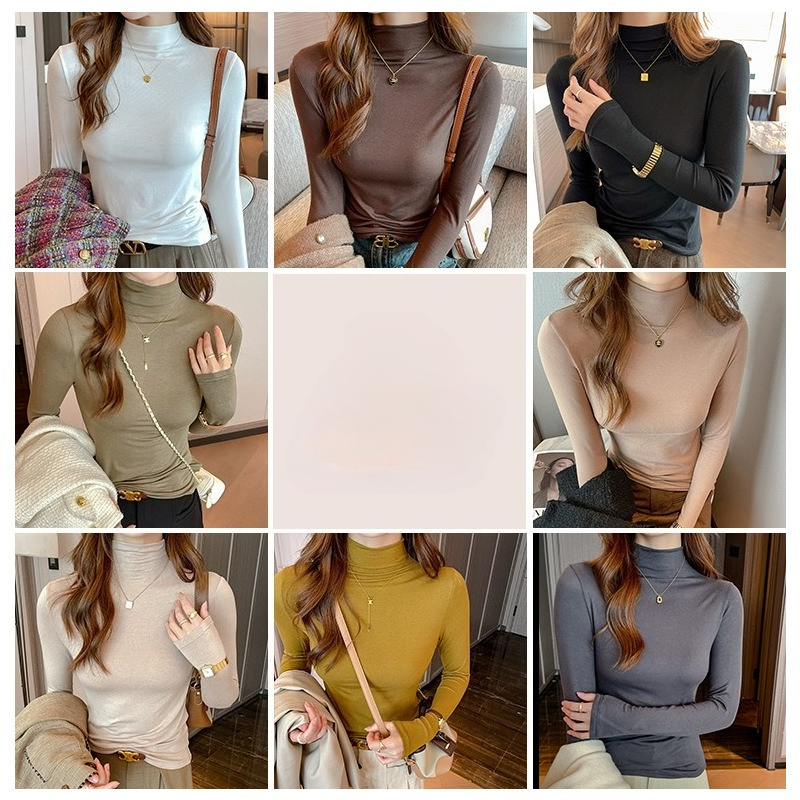 T-shirt Women Warm Long Sleeve High Strecth Slim Fit Bottoming Shirts Casual Turtleneck Autumn Winter Inner Basic Knitted Tops