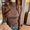 T-shirt Women Warm Long Sleeve High Strecth Slim Fit Bottoming Shirts Casual Turtleneck Autumn Winter Inner Basic Knitted Tops
