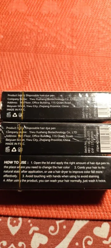 A good pencil for dyeing gray hair, black color. Colors hair well. How long will it last is a question. An interesting idea for camouflaging gray hair. The product arrived in its original packaging. Expiration date until 2028. The delivery of the goods took a long time, over a month. I liked the product, I recommend purchasing it.