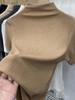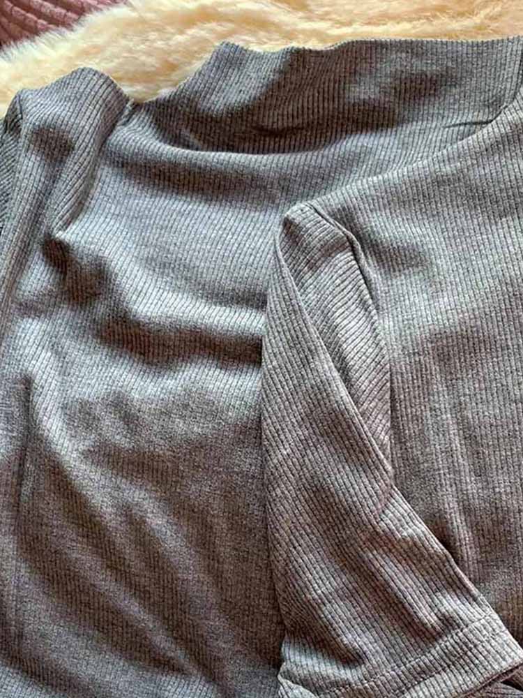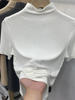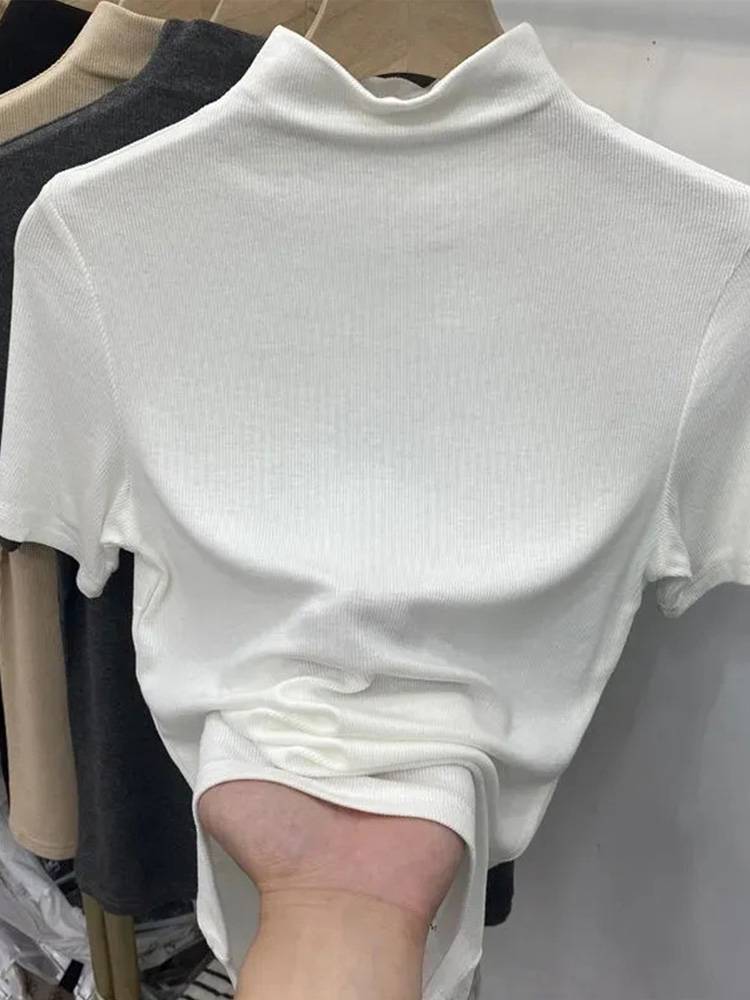 Threaded Short Sleeves Women T-shirts Summer New 2023 Turtleneck Solid Slim Elastic Long-sleeved Female Buttoming Pulls Top Tees