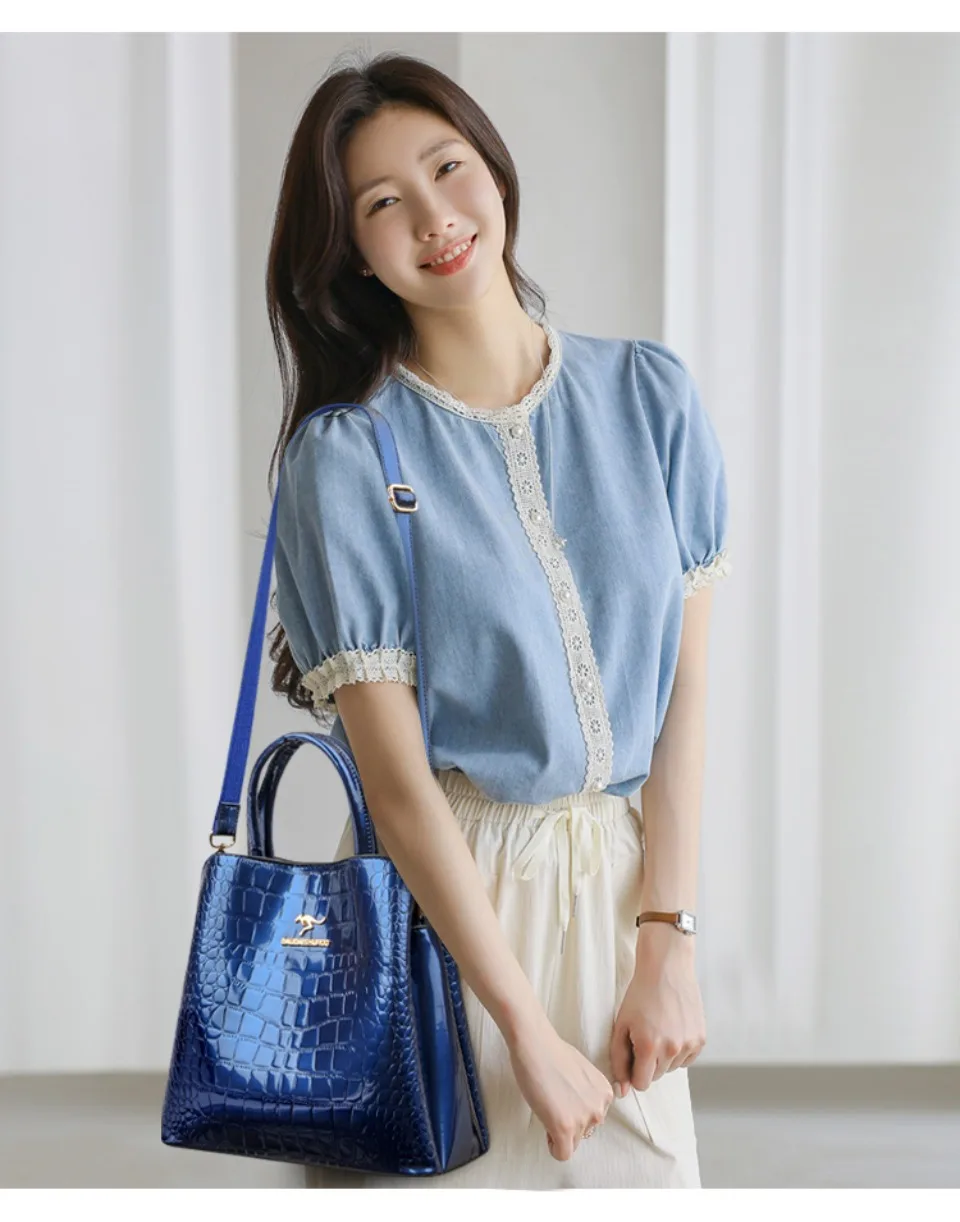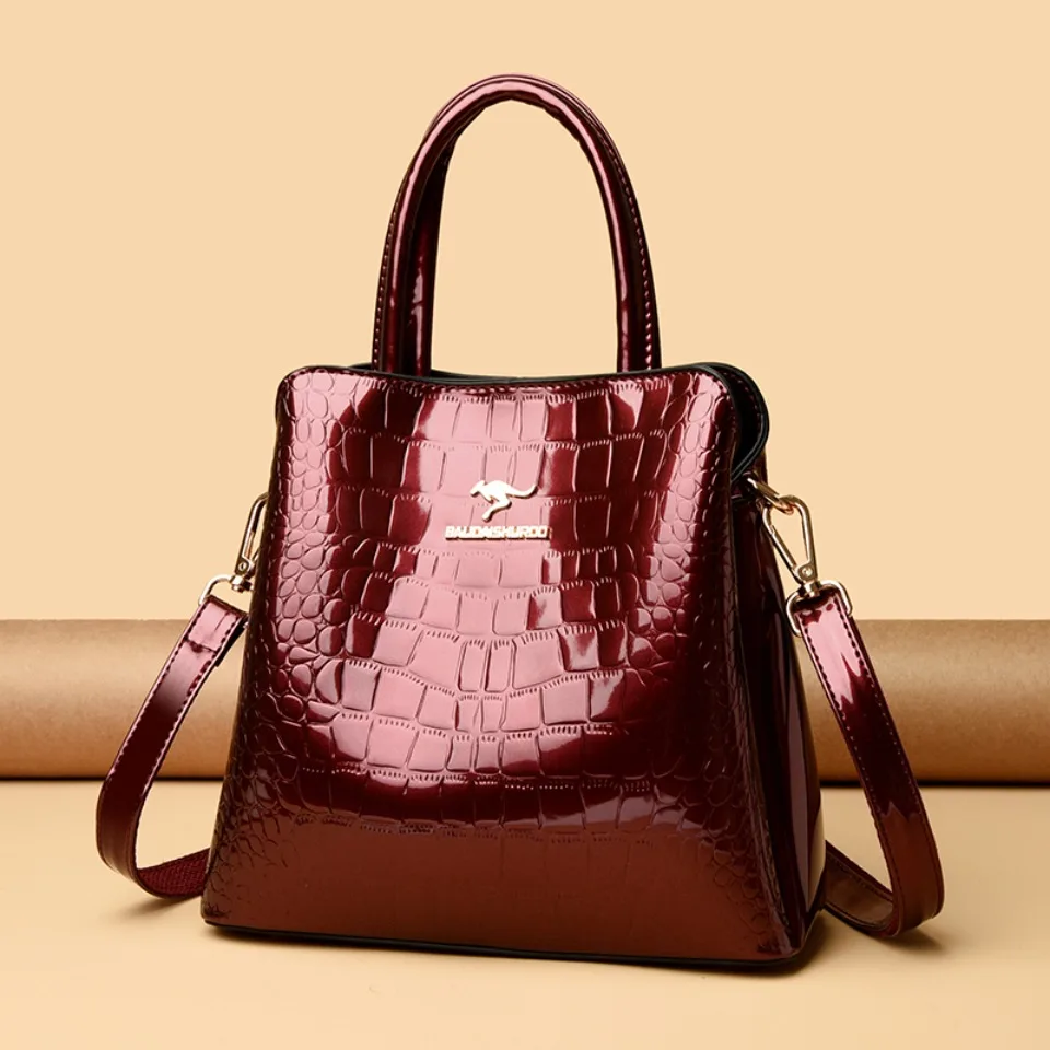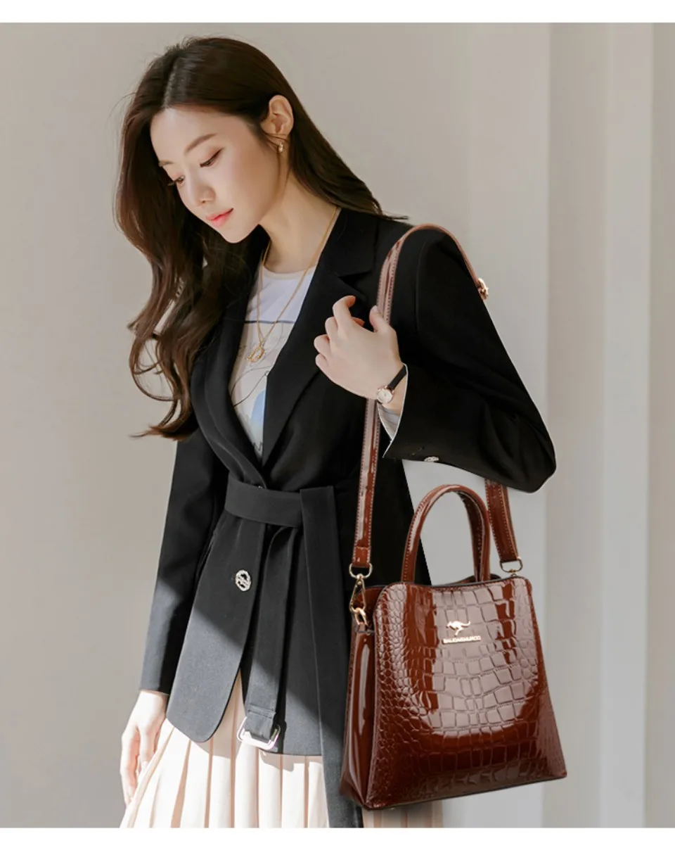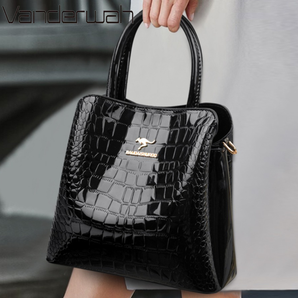 Three Layers Crossbody Shoudler Bags for Women High Quality Crocodile Pattern Patent Leather Handbags Luxury Designer Hand Sac