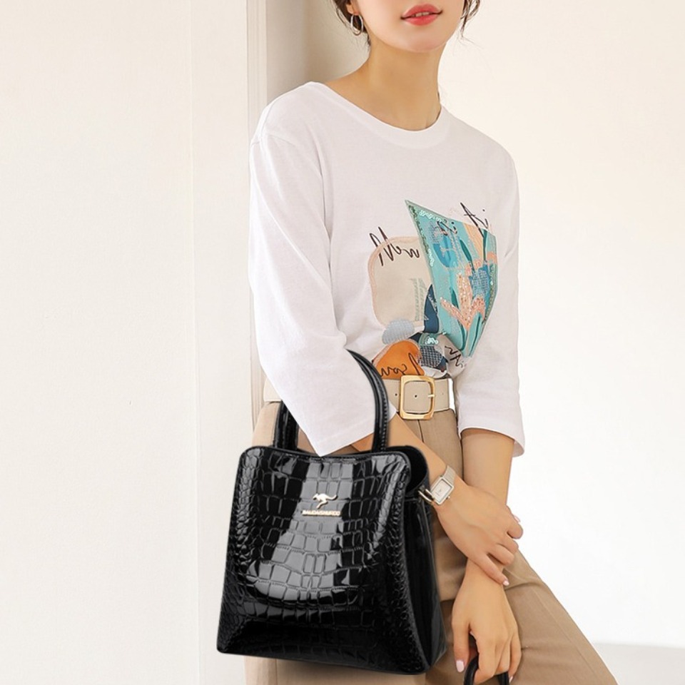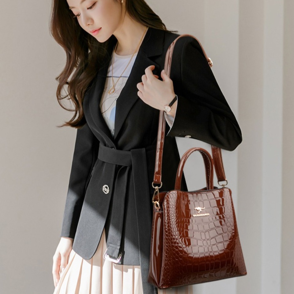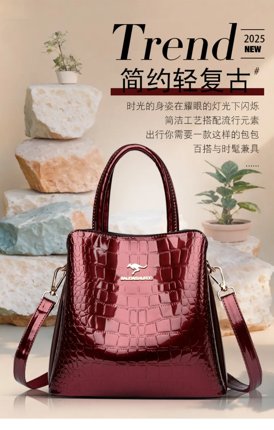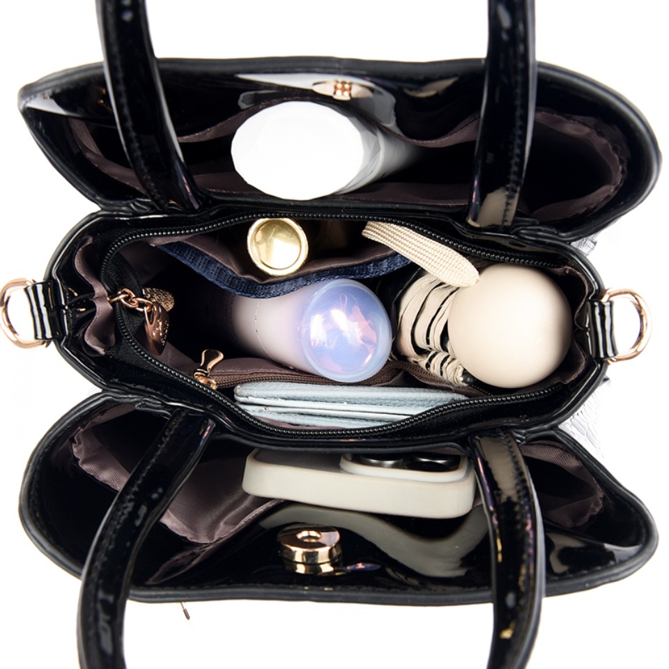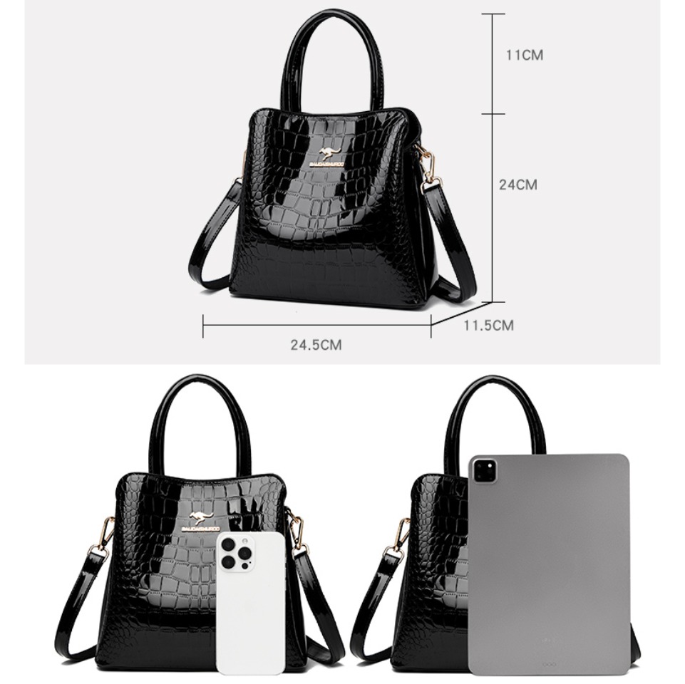 Three Layers Crossbody Shoudler Bags for Women High Quality Crocodile Pattern Patent Leather Handbags Luxury Designer Hand Sac