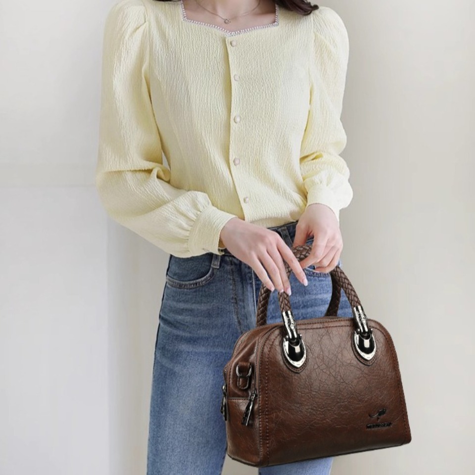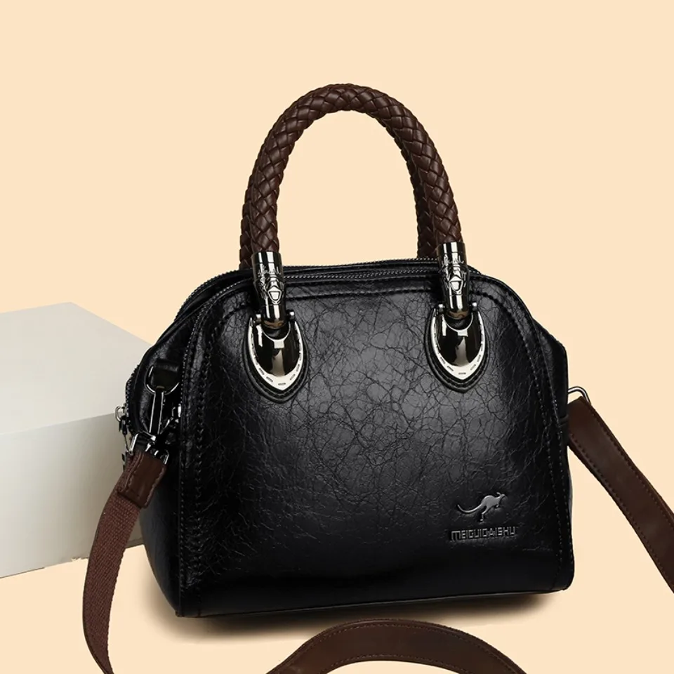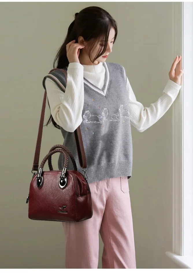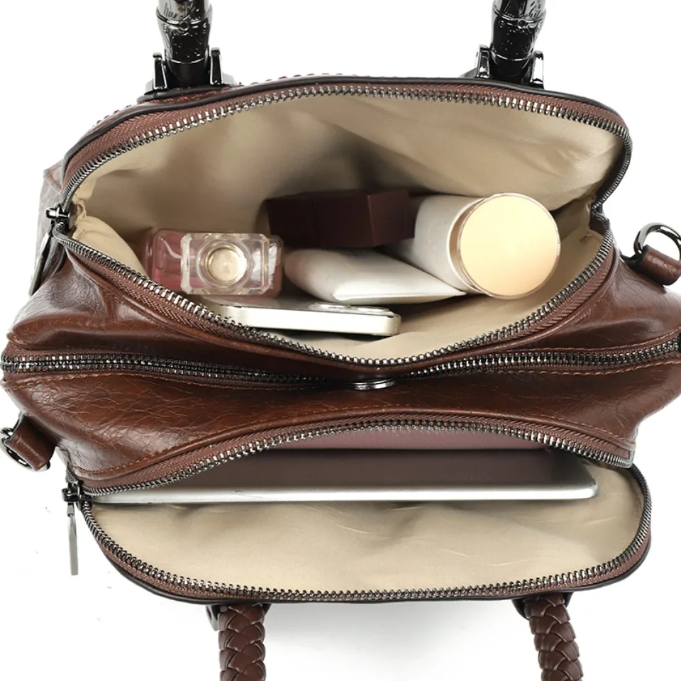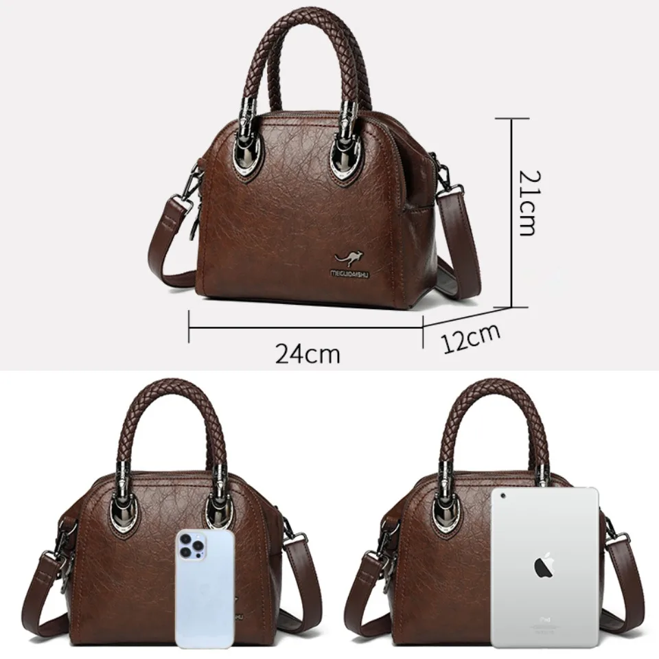 Three Layers Retro Crossbody Bags for Women High Quality Leather Handbags Hand-woven Handle Luxury Designer Shoulder Shopper Sac