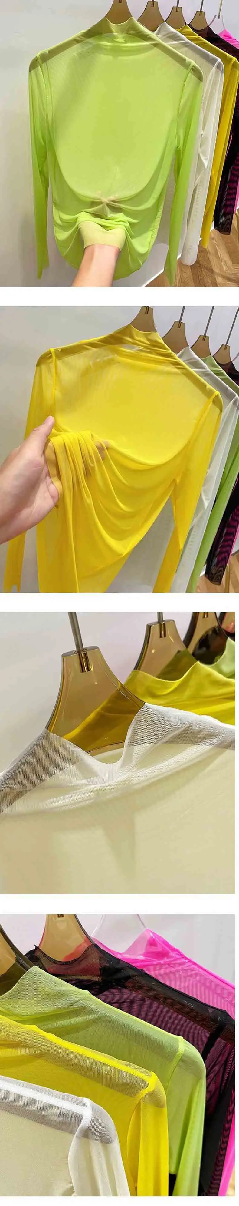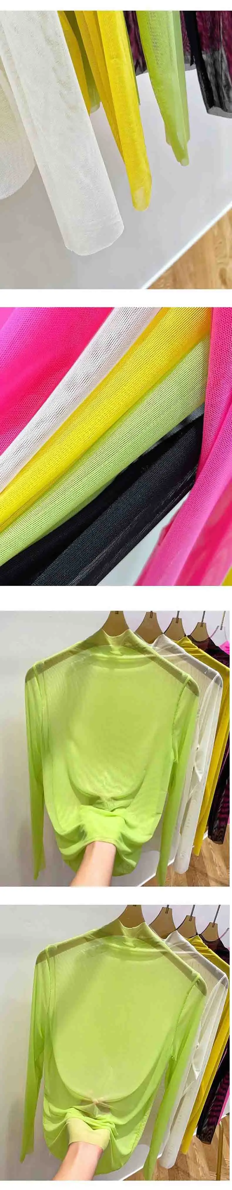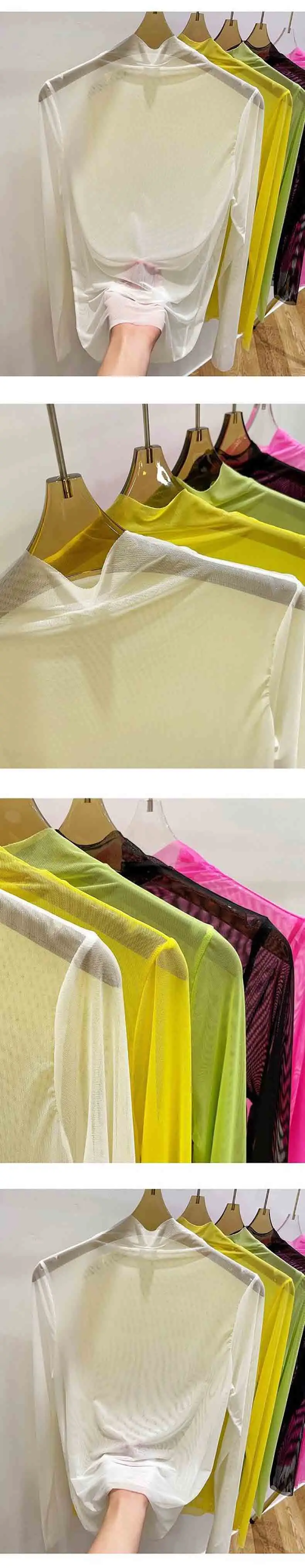 Transparent Gauze Bottoming T-shirt Women Clothing Summer Long Sleeved T-shirt with Gauze Shirt Half High Collar Sunscreen 2023