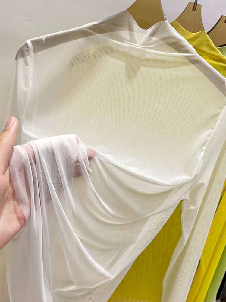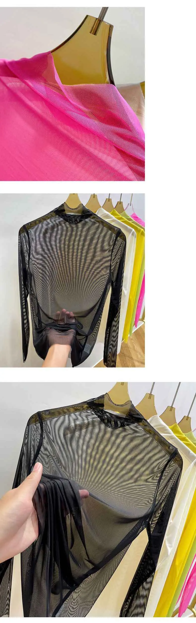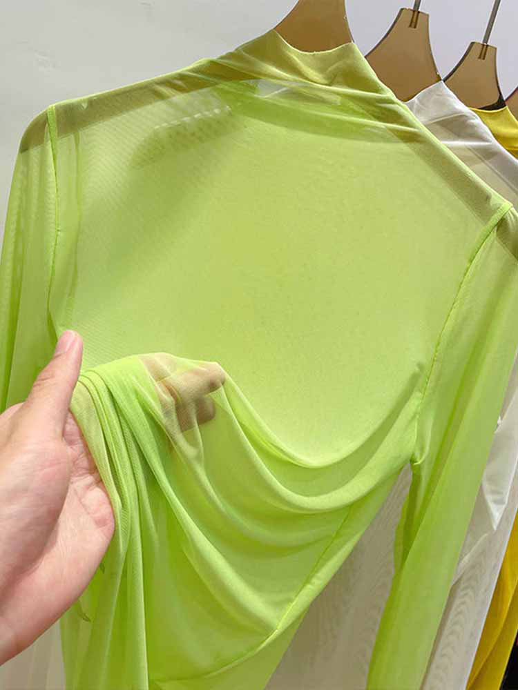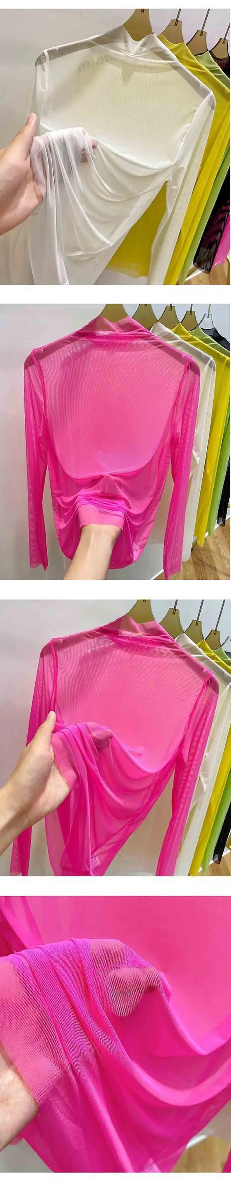Transparent Gauze Bottoming T-shirt Women Clothing Summer Long Sleeved T-shirt with Gauze Shirt Half High Collar Sunscreen 2023