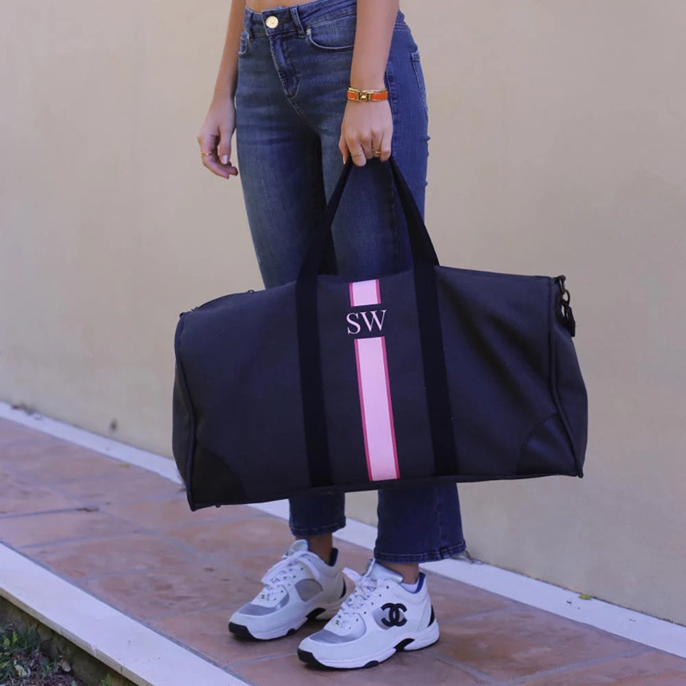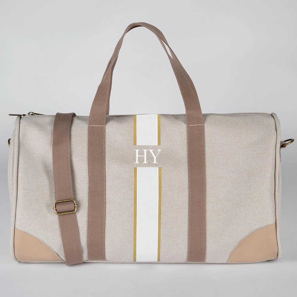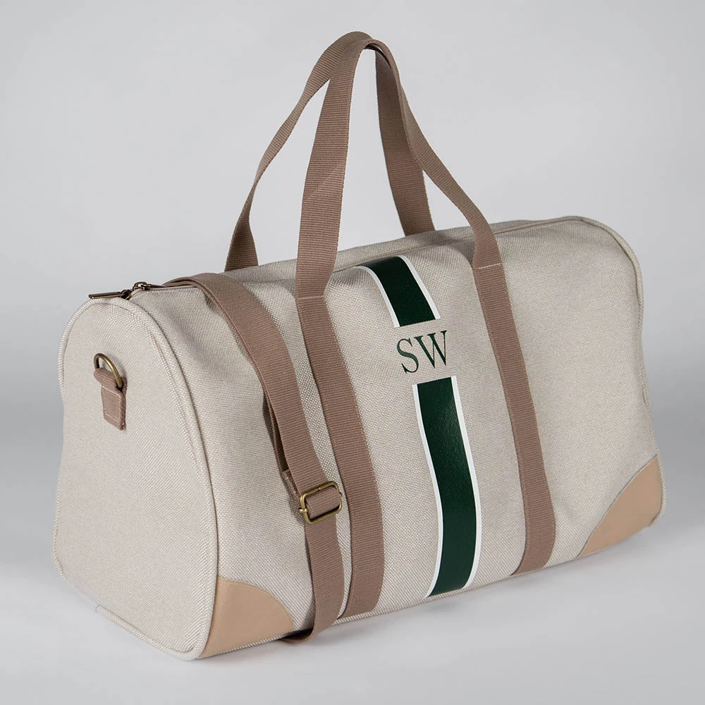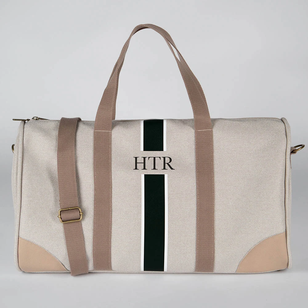 Trends Vertical Stripes Printing Women’s Travel handbag Customizable Letters linen Large capacity Beach travel bag Wholesale