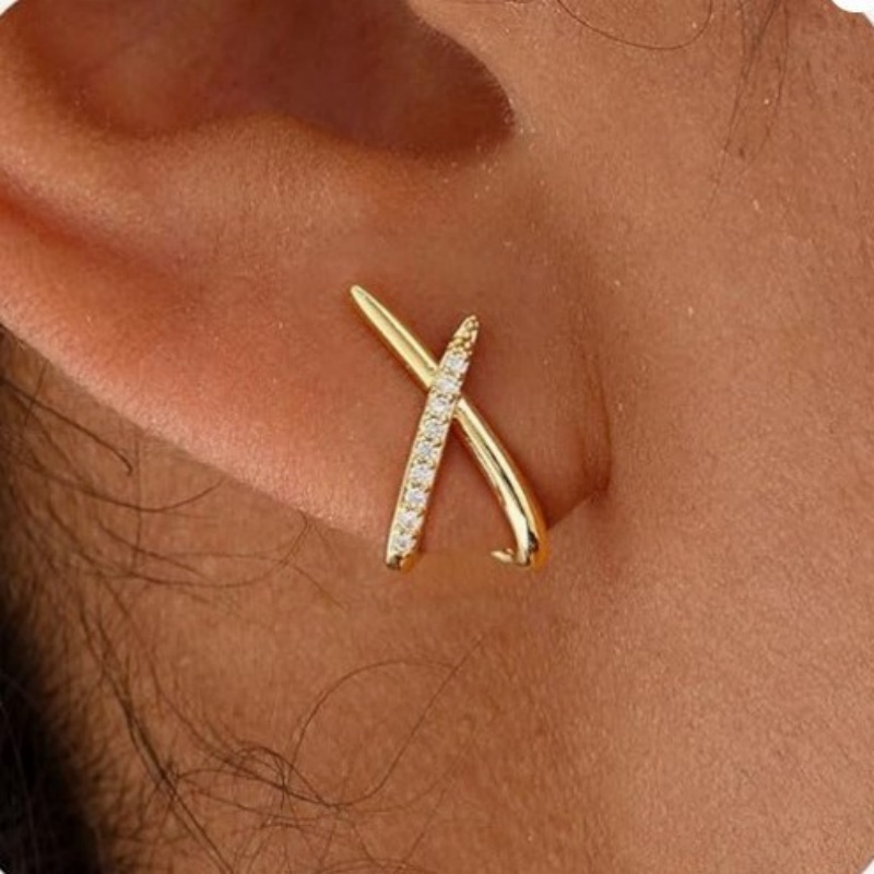 Trendy Gold Color Zircon Cross Stud Earrings for Women Girls Korean Minimalist Geometry Earring Fashion Jewelry Party Gifts