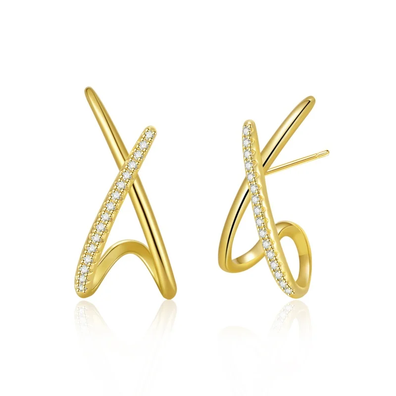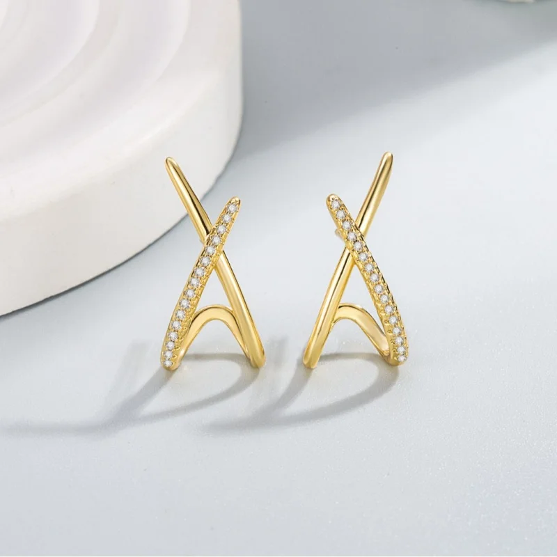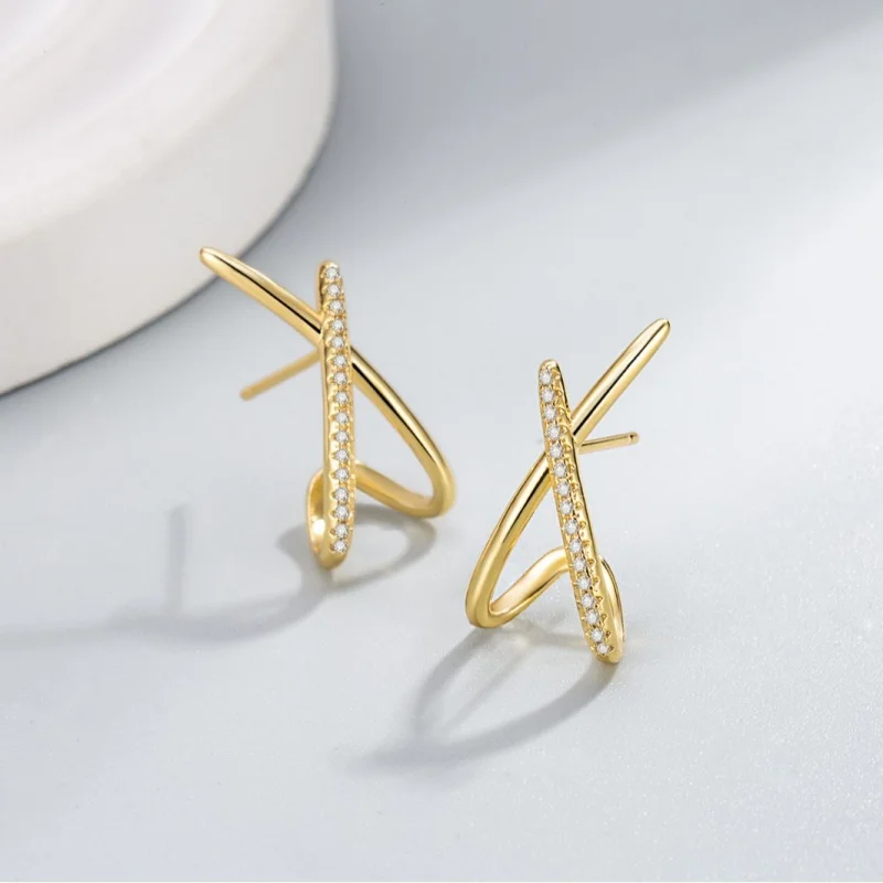 Trendy Gold Color Zircon Cross Stud Earrings for Women Girls Korean Minimalist Geometry Earring Fashion Jewelry Party Gifts