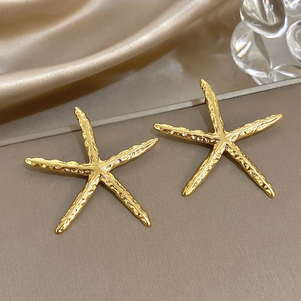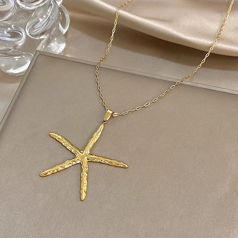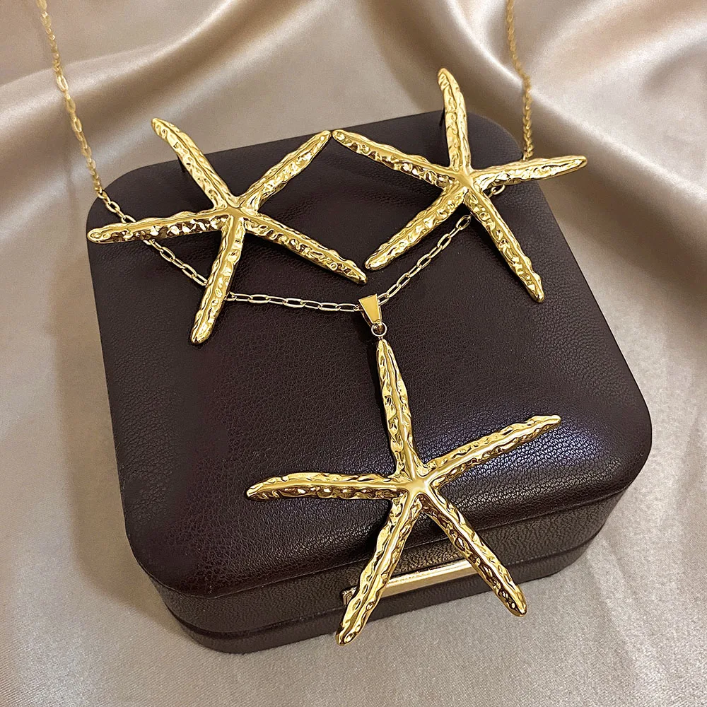 Trendy Hammered Gold Color Stainless Steel Necklace for Women Unique Design Starfish Earrings Necklaces Beach Jewelry Gifts