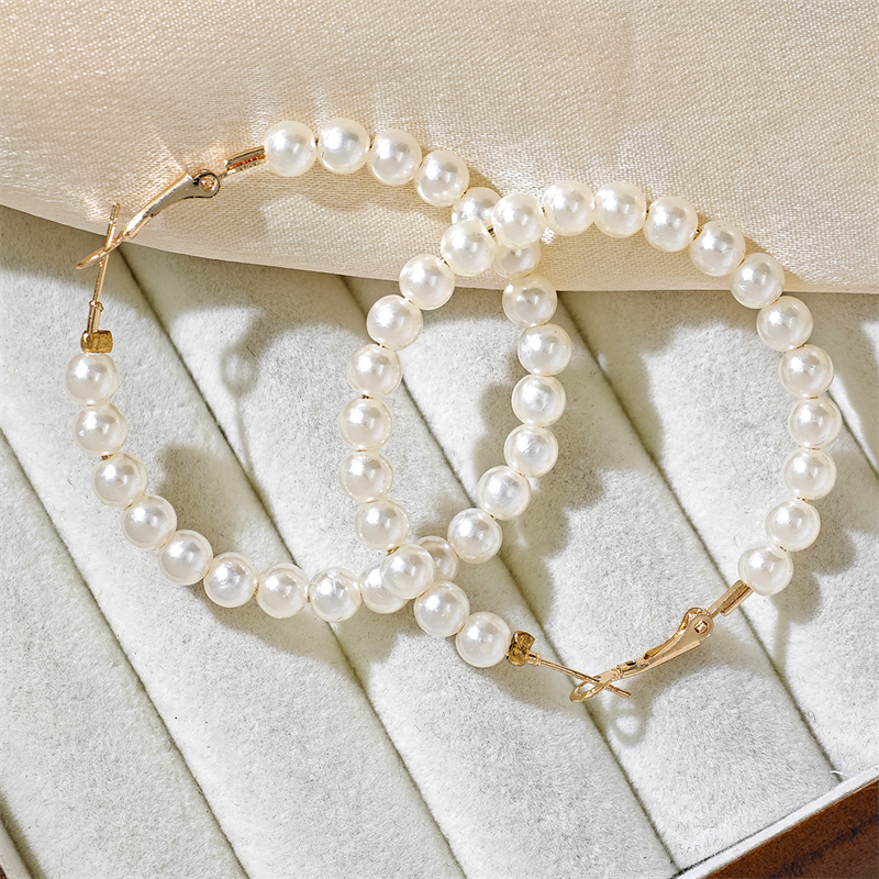 Trendy Imitation Pearl Large Hoop Earrings Luxury Pearl Exaggerated Round Circle Earring For Women Party Wedding Jewelry Gifts