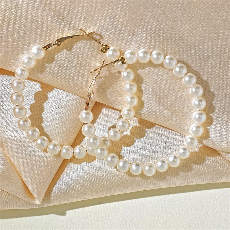 Trendy Imitation Pearl Large Hoop Earrings Luxury Pearl Exaggerated Round Circle Earring For Women Party Wedding Jewelry Gifts