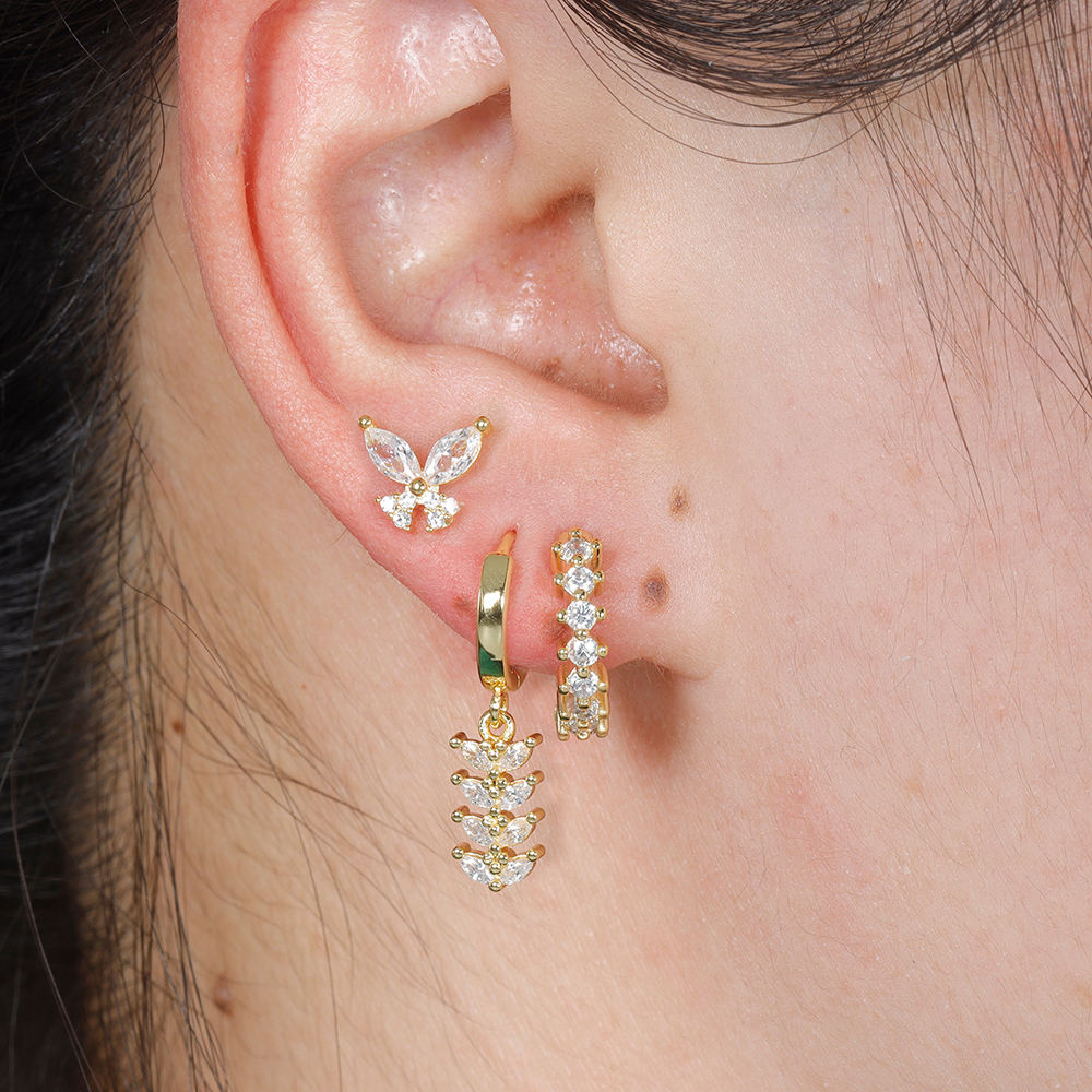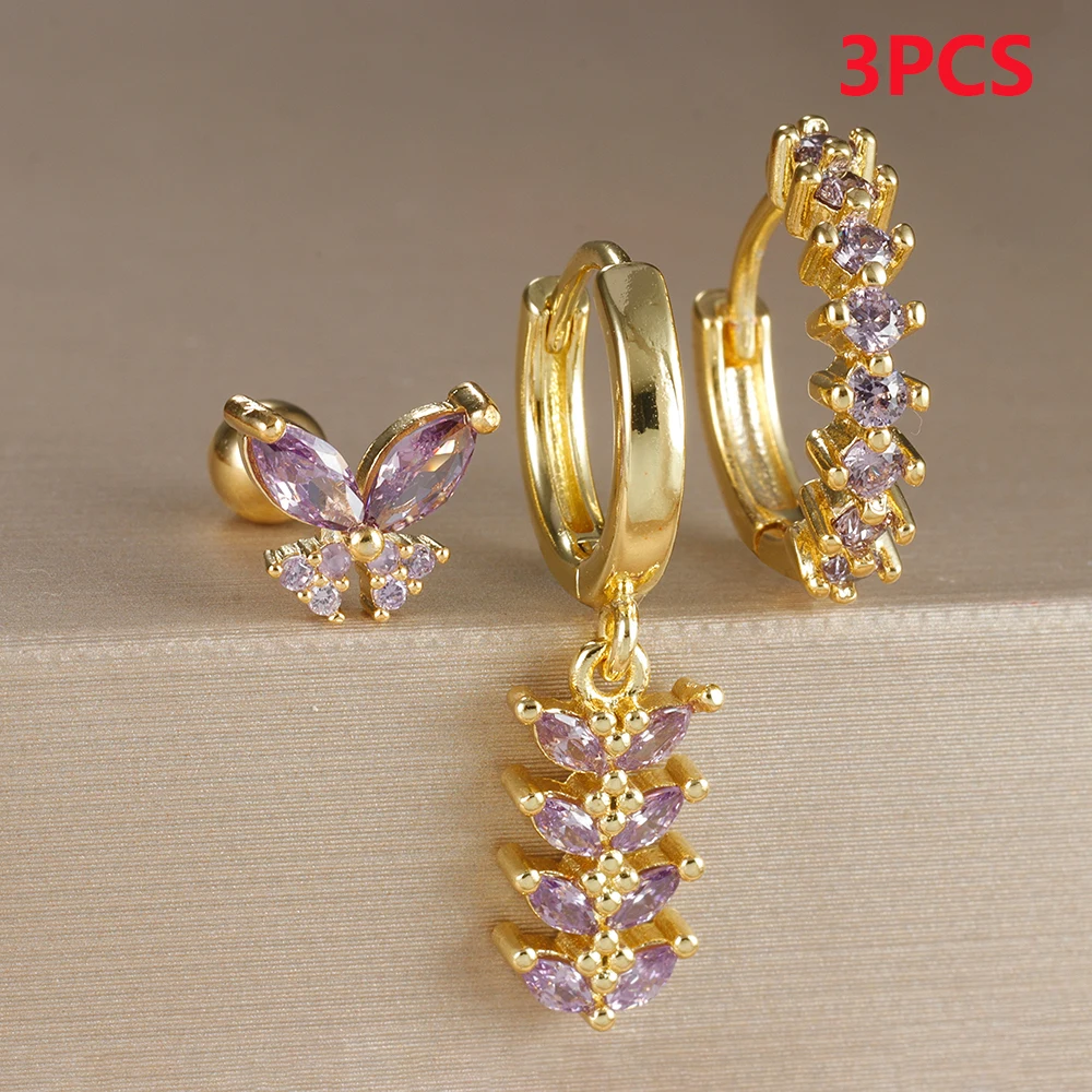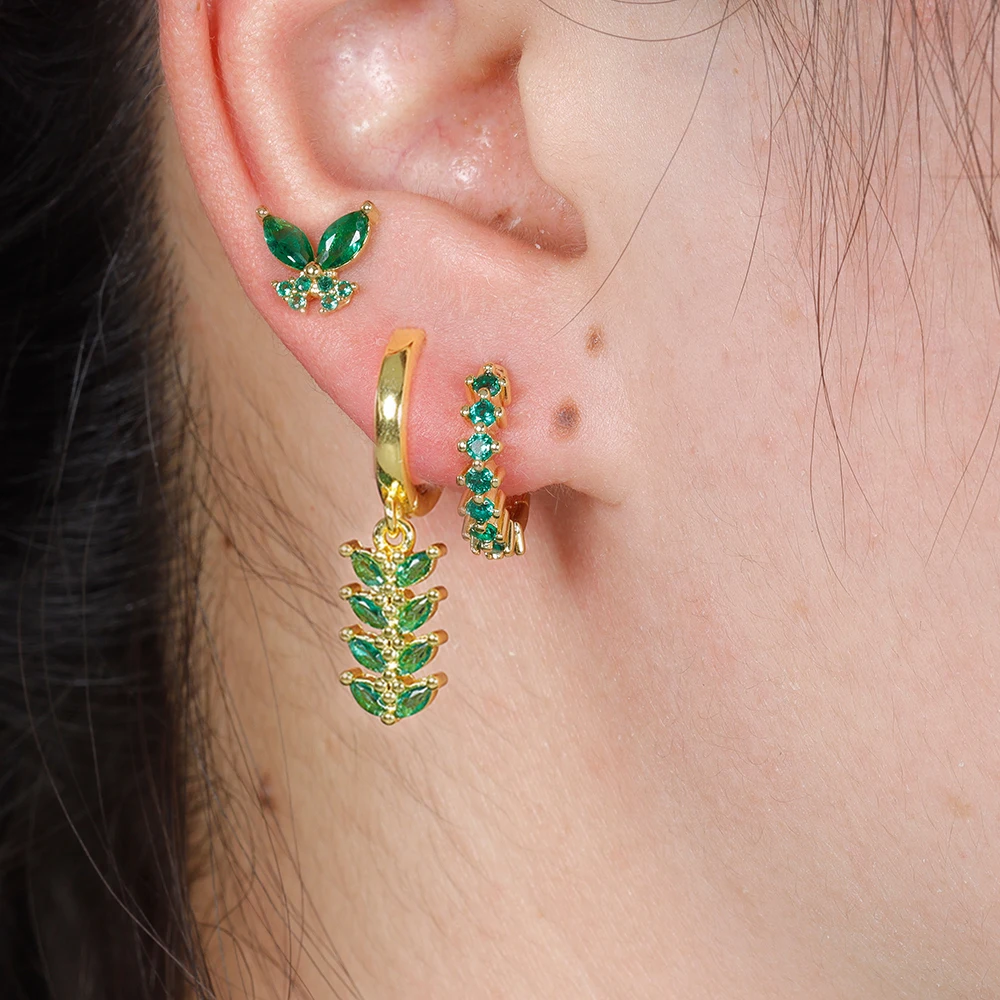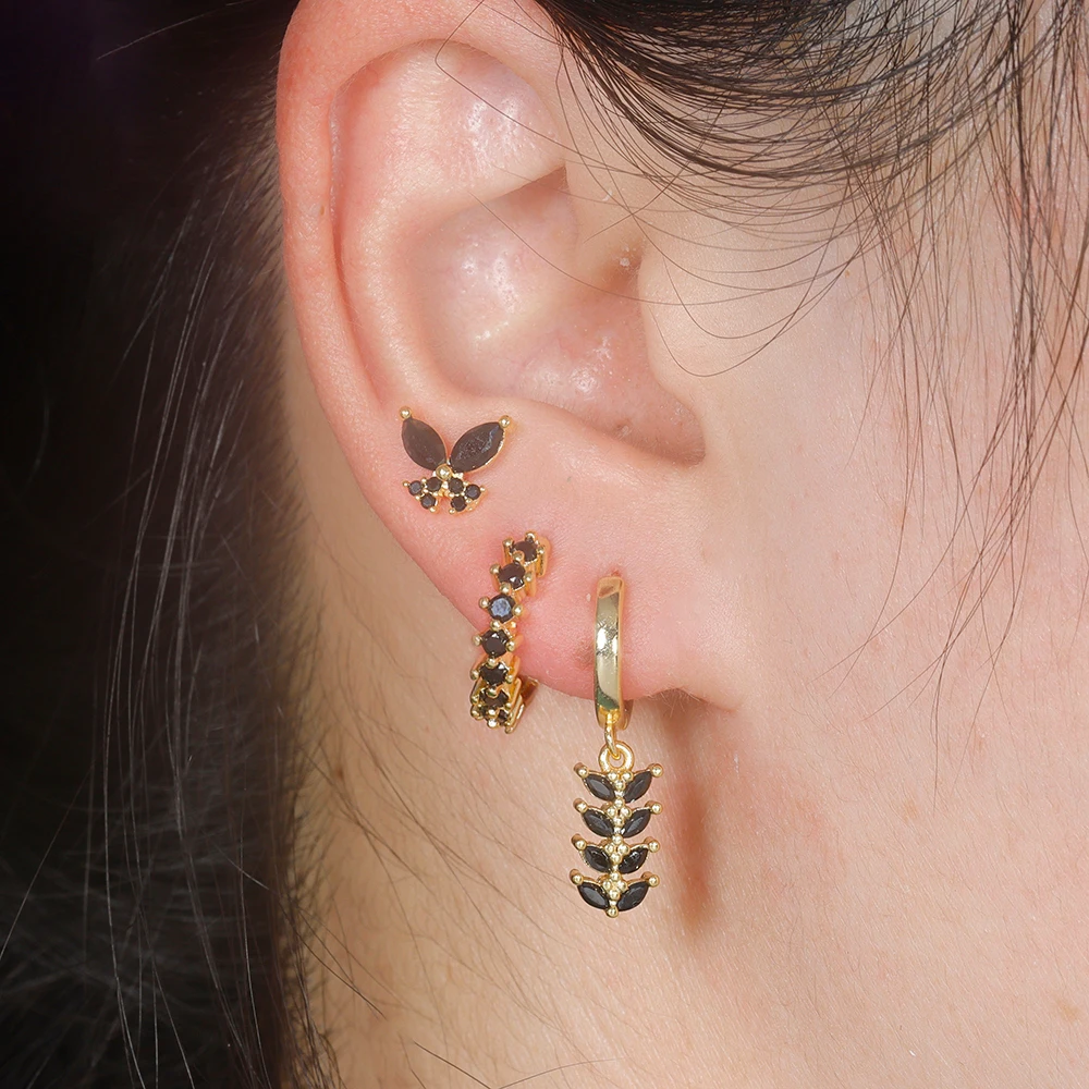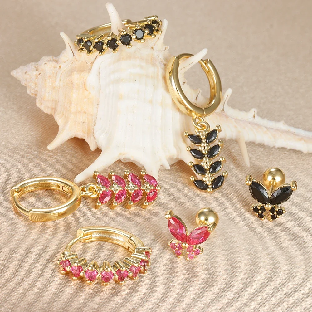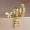 Trendy Stainless Steel Leaves Butterfly Hoop Earrings Set for Women Cubic Zirconia Huggie Circle Punk Earrings Piercing Jewelry