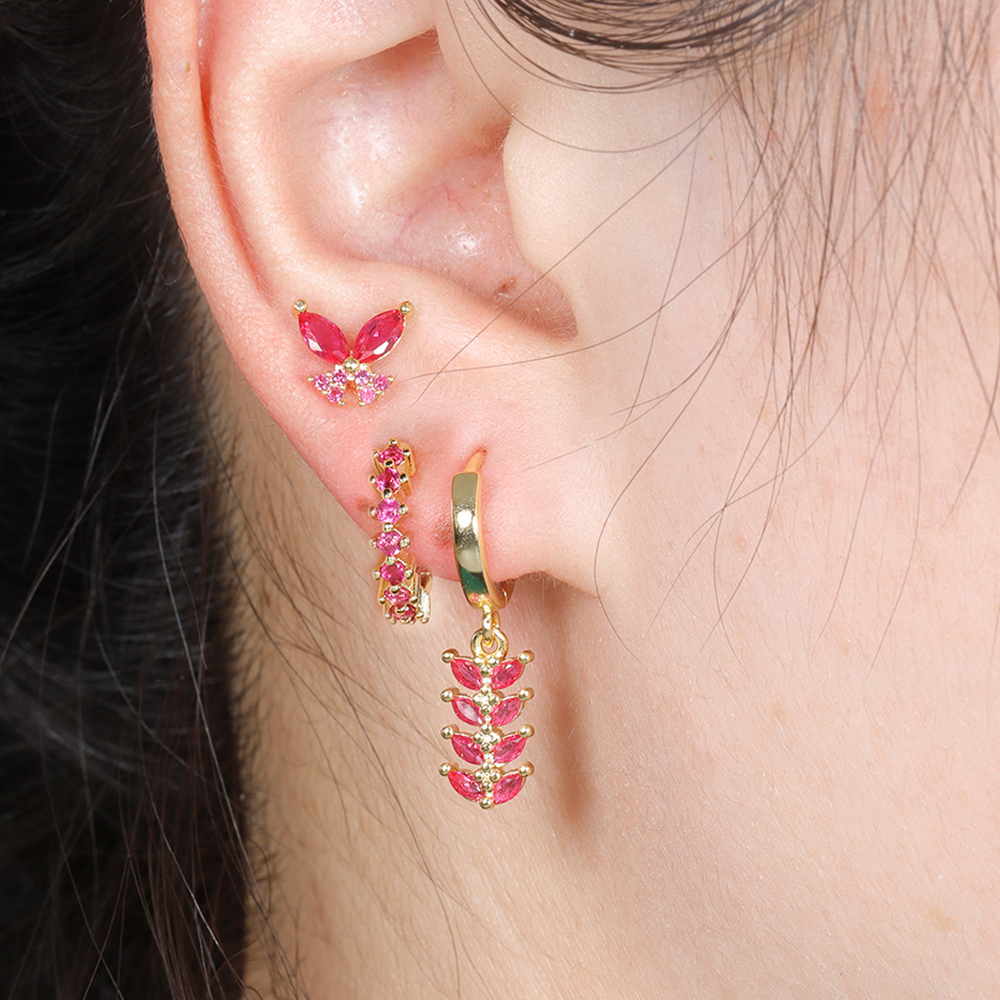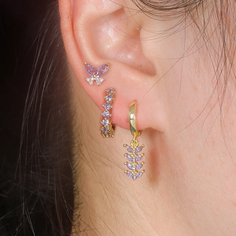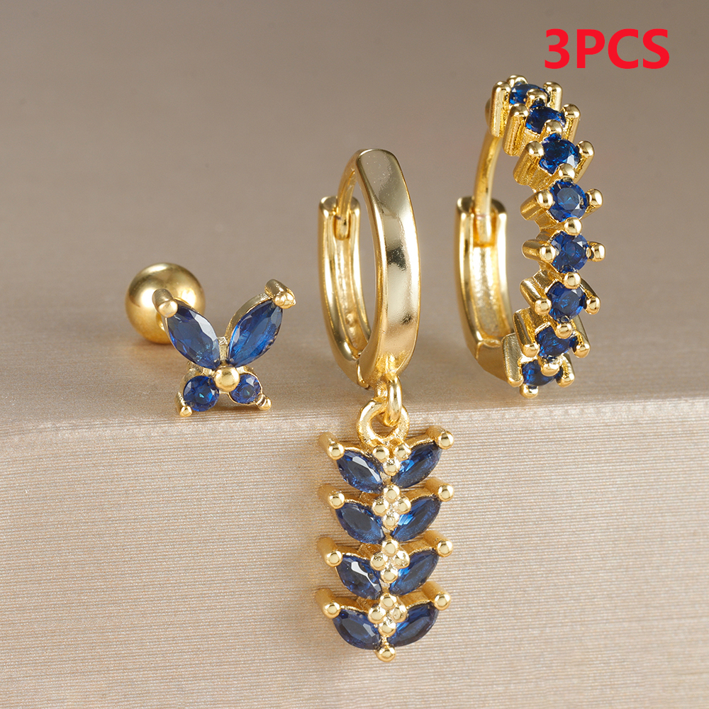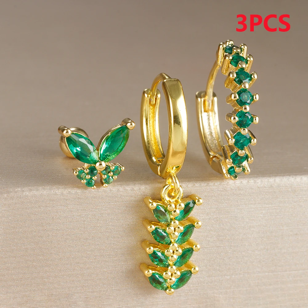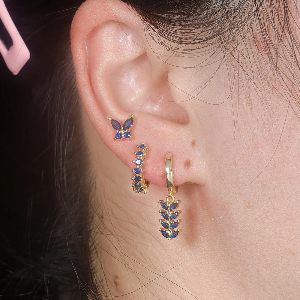 Trendy Stainless Steel Leaves Butterfly Hoop Earrings Set for Women Cubic Zirconia Huggie Circle Punk Earrings Piercing Jewelry