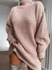 Turtleneck Long Sleeve Sweater Dress Women Autumn Winter Loose Tunic Knitted Casual Pink Gray Clothes Solid Dresses