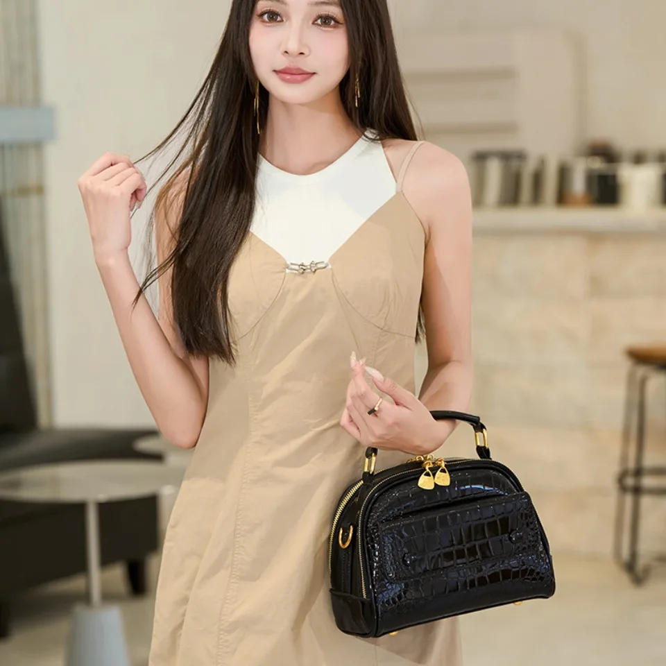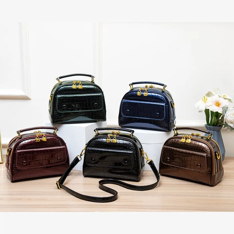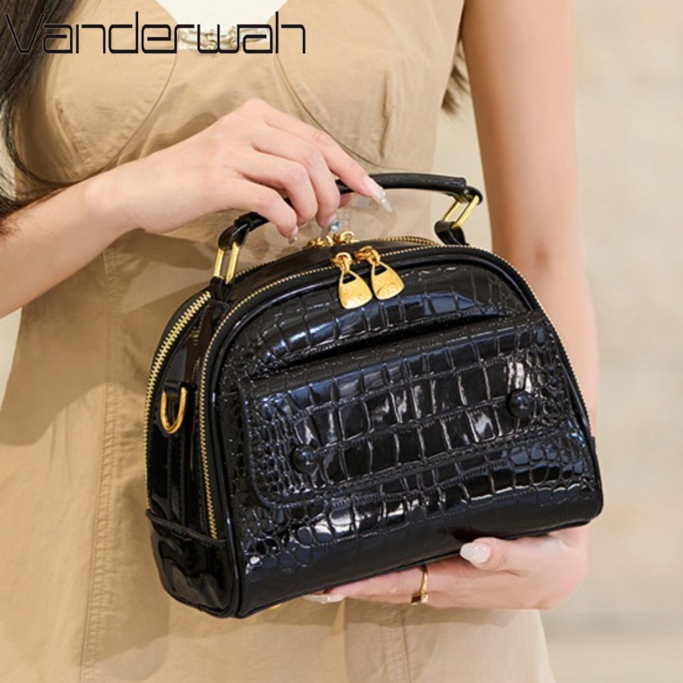 Two Layers Tote Bags for Women Alligator Patent Leather Handbags and Purses Luxury Designer Shoulder Crossbody Hand Bag Sac New