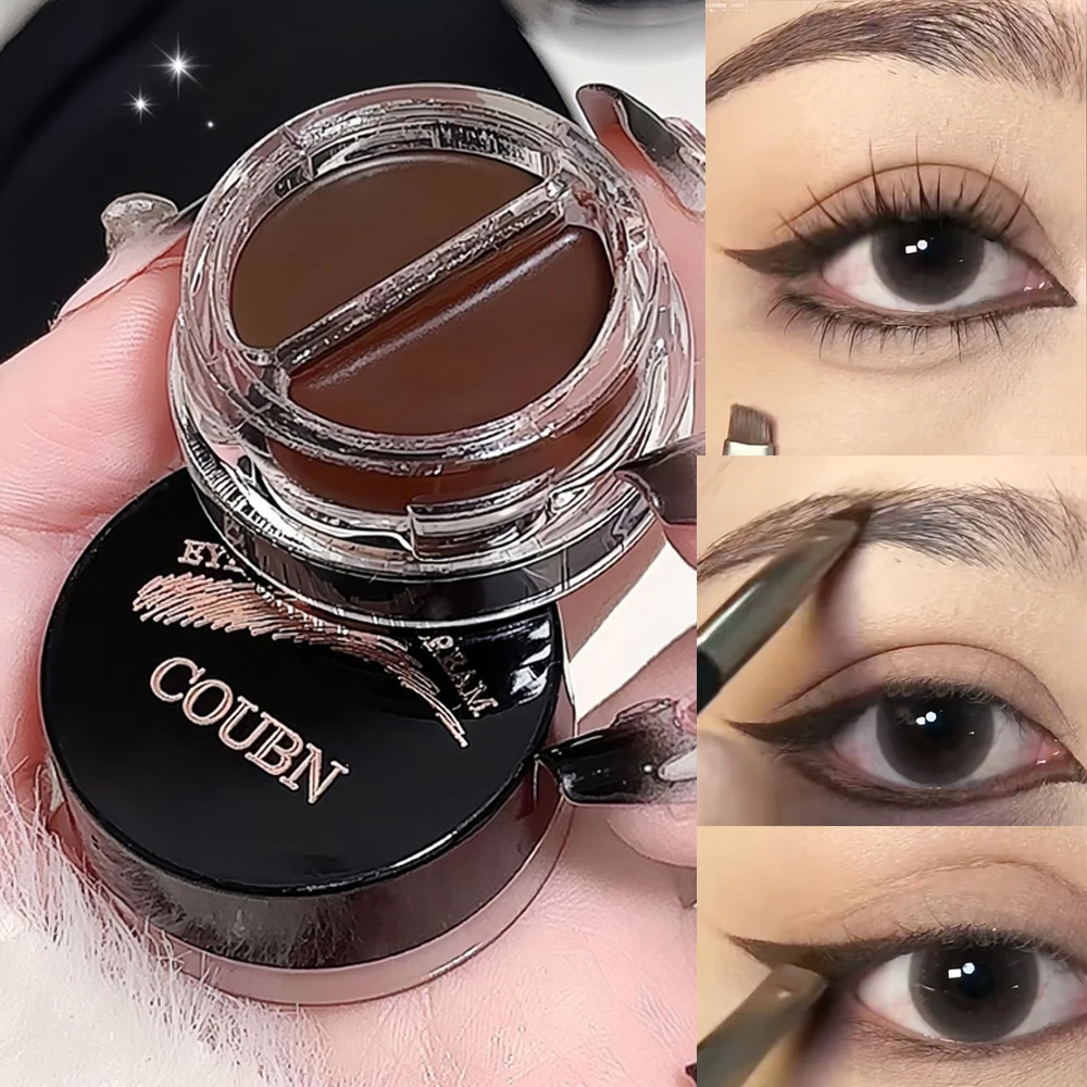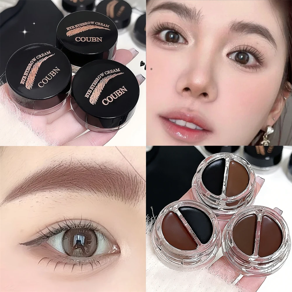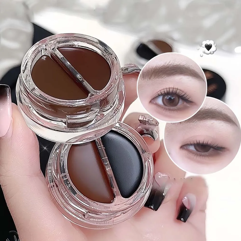 Two-Tone Matte Eyebrow Cream With Brush for Eyeliner & Eye Brow Waterproof Sweat Proof Wild Eyebrow Gel 3D Natural Tint Makeup