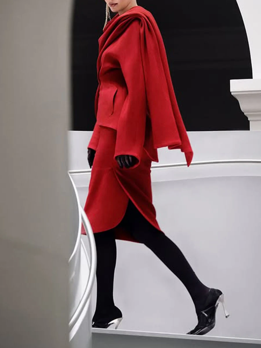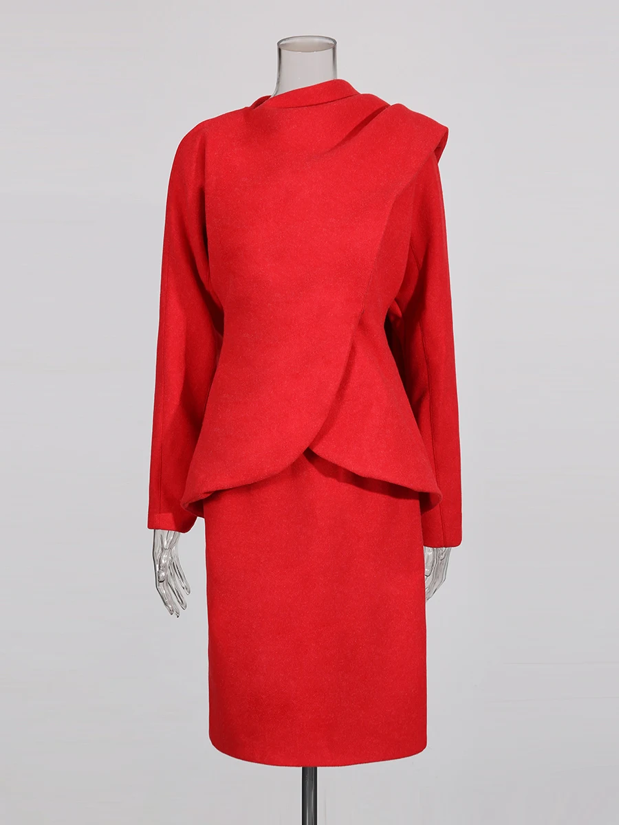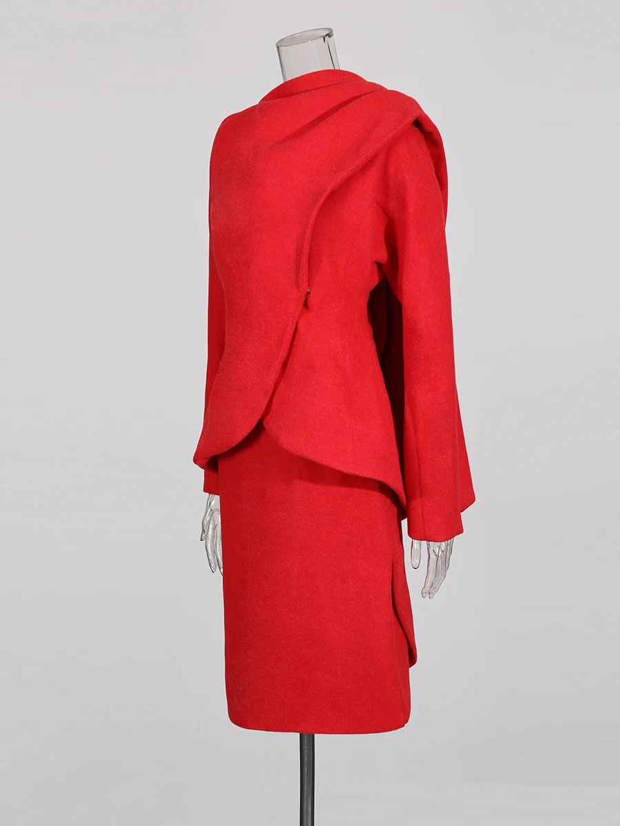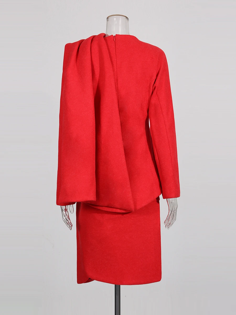 TWOTWINSTYL Slimming Two Piece Sets for Women Round Neck Long Sleeves Spliced Ribbon Blazer High Waist Skirt Elegant Set Female
