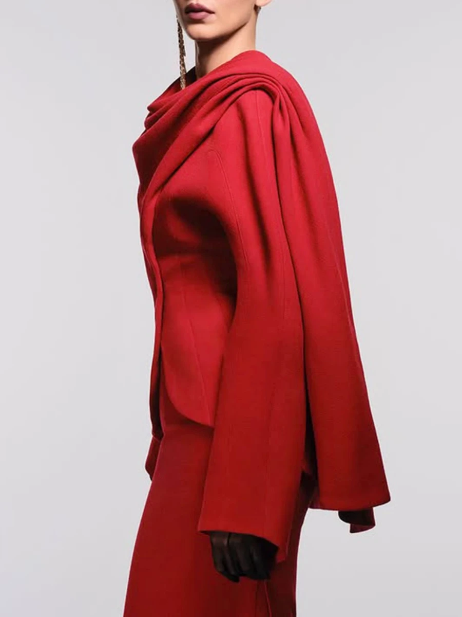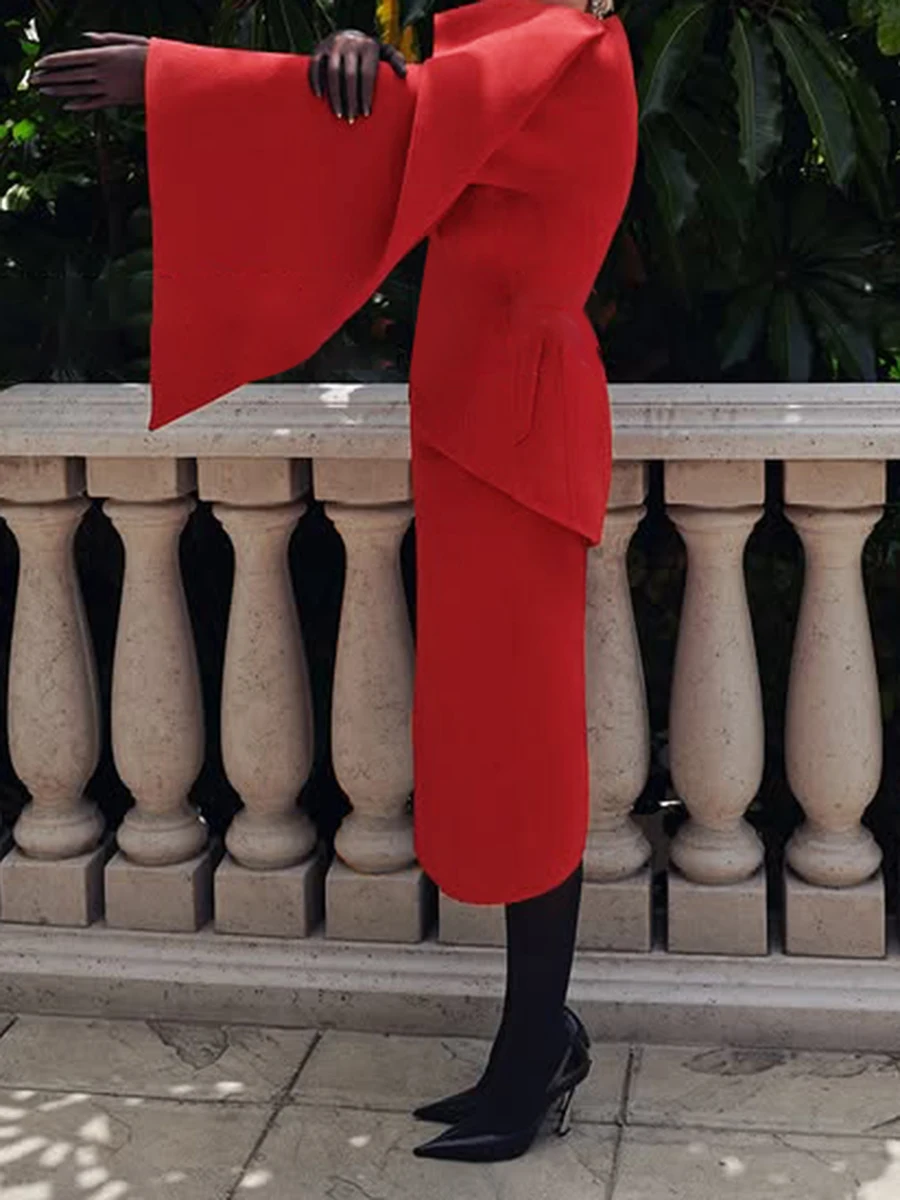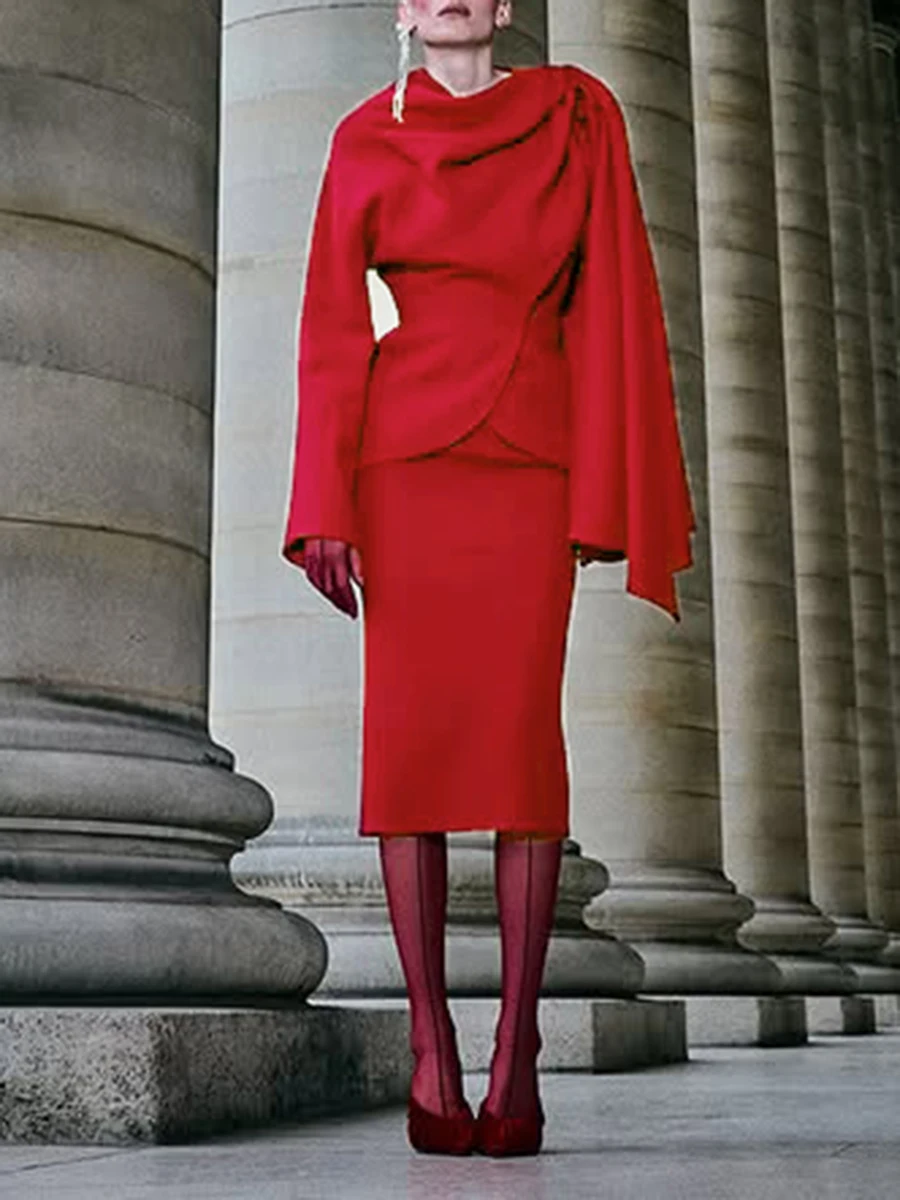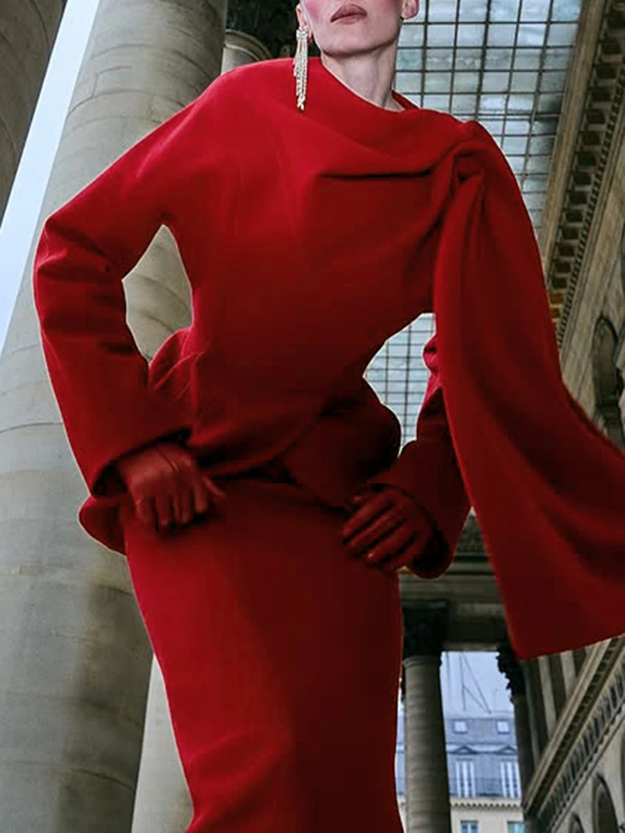 TWOTWINSTYL Slimming Two Piece Sets for Women Round Neck Long Sleeves Spliced Ribbon Blazer High Waist Skirt Elegant Set Female