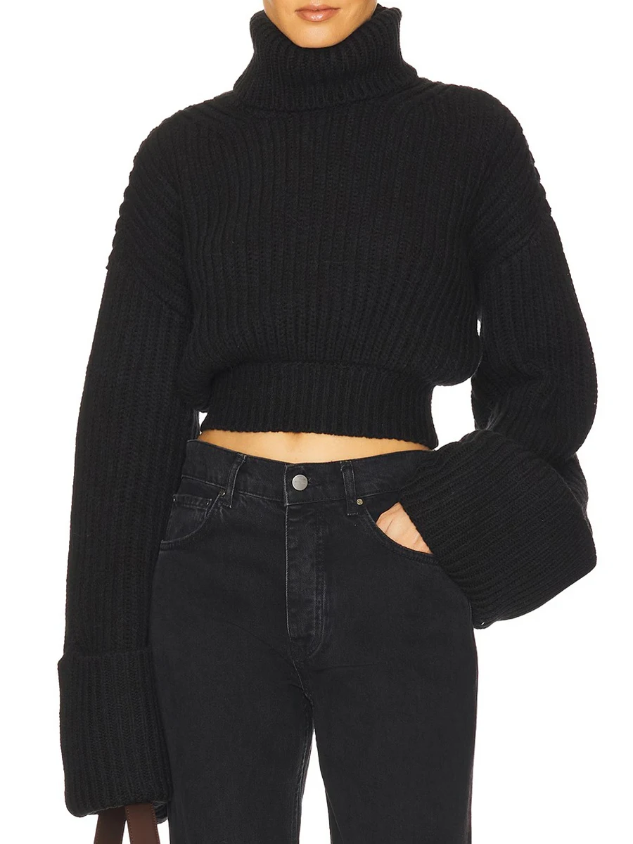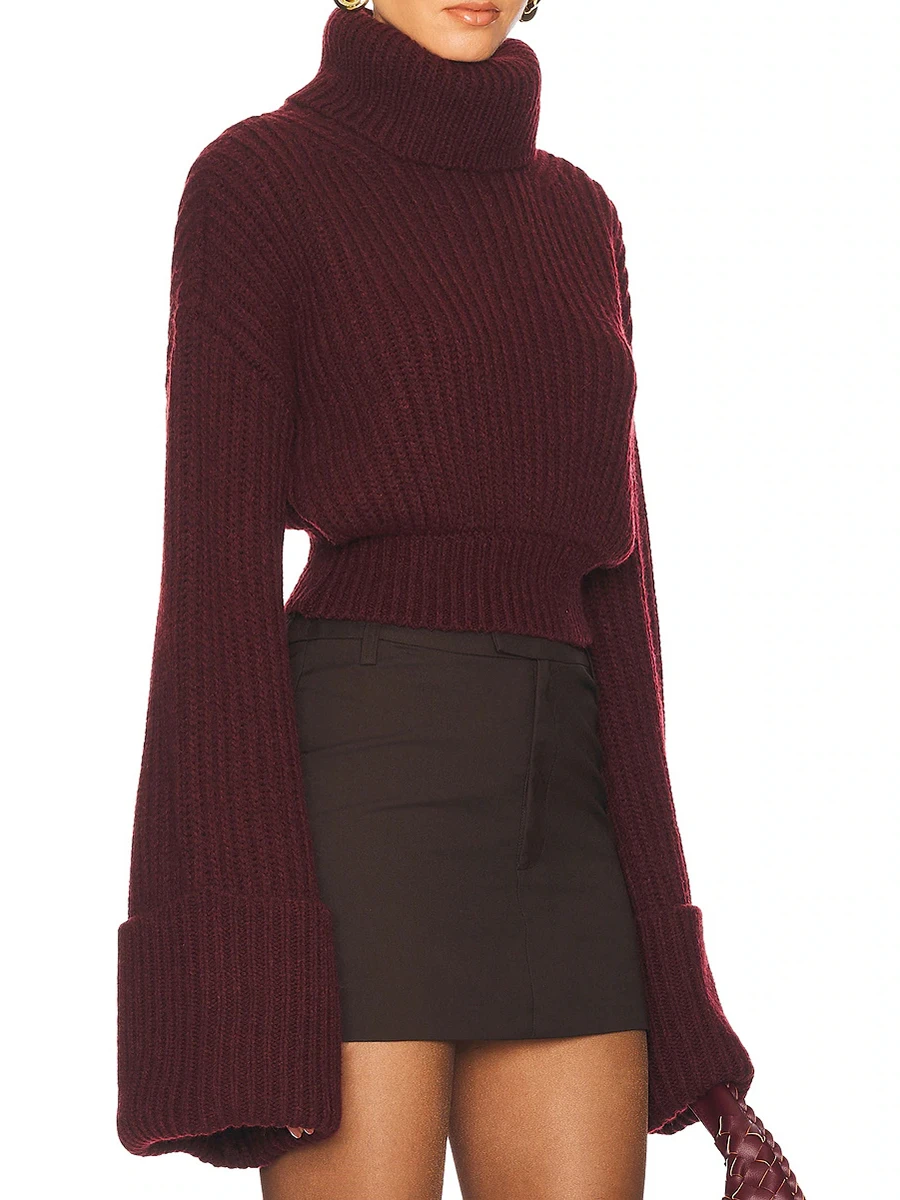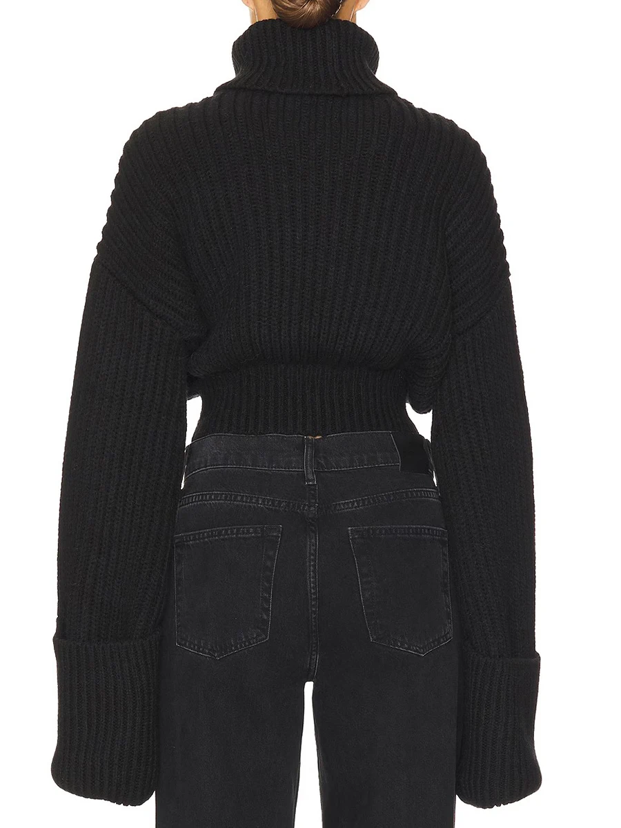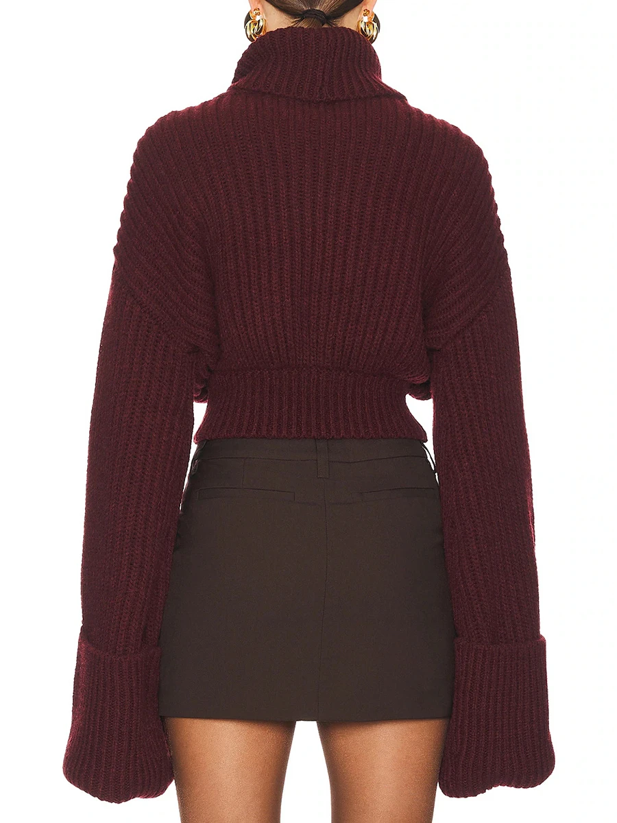TWOTWINSTYL Solid Loose Fashion Short Sweaters for Women High Neck Long Sleeves Tunic Minimalist Sweater Female Fashion Clothing