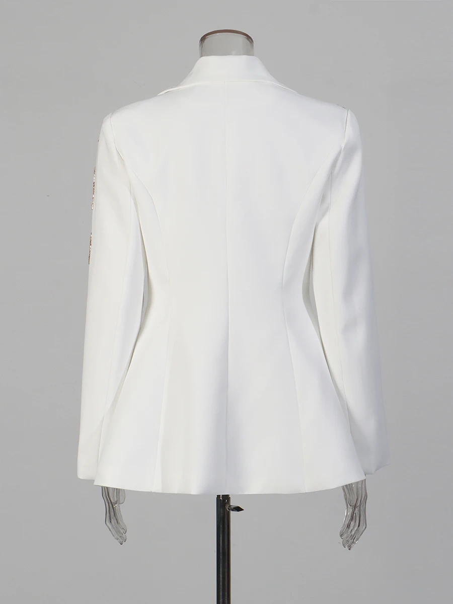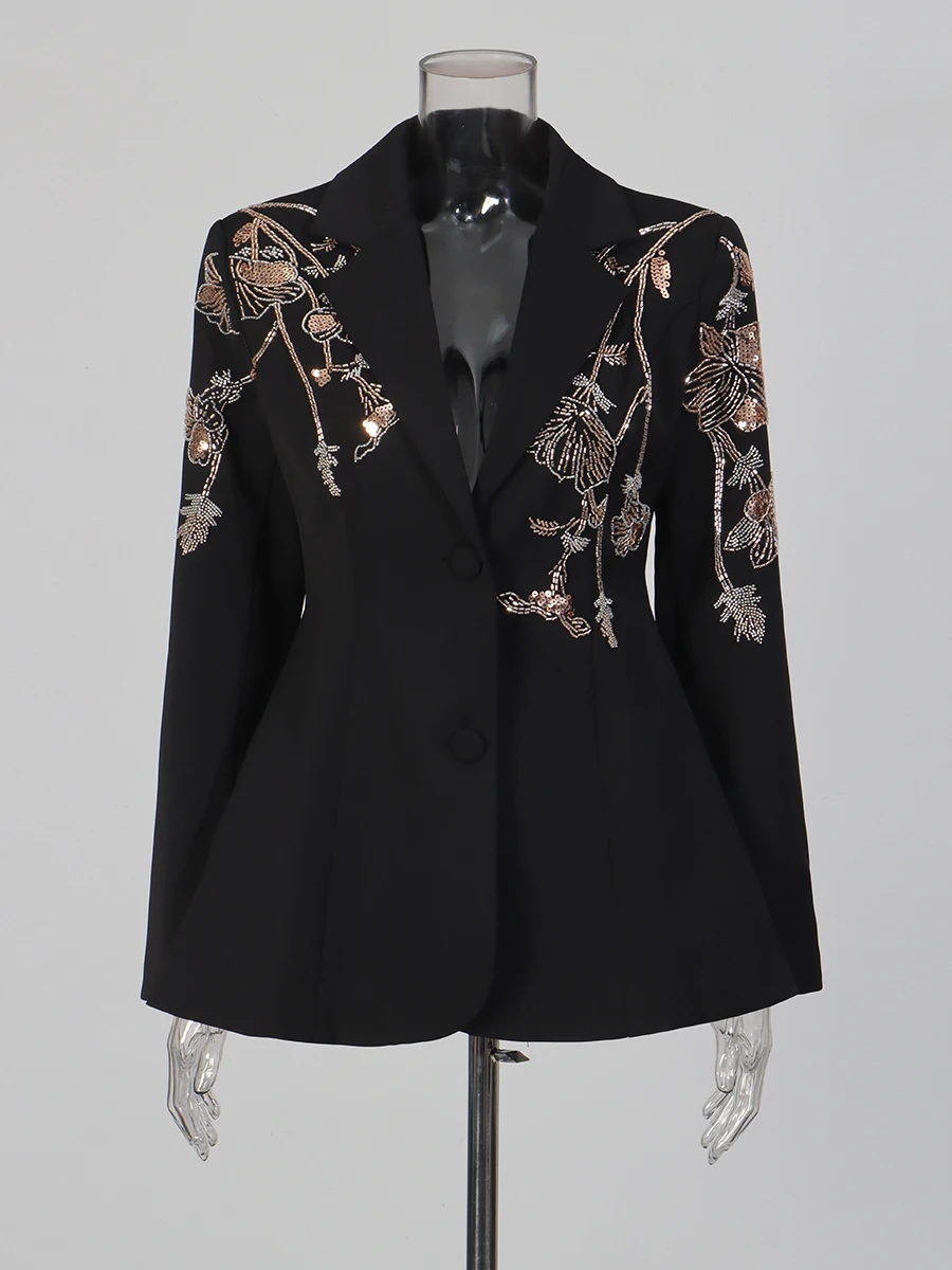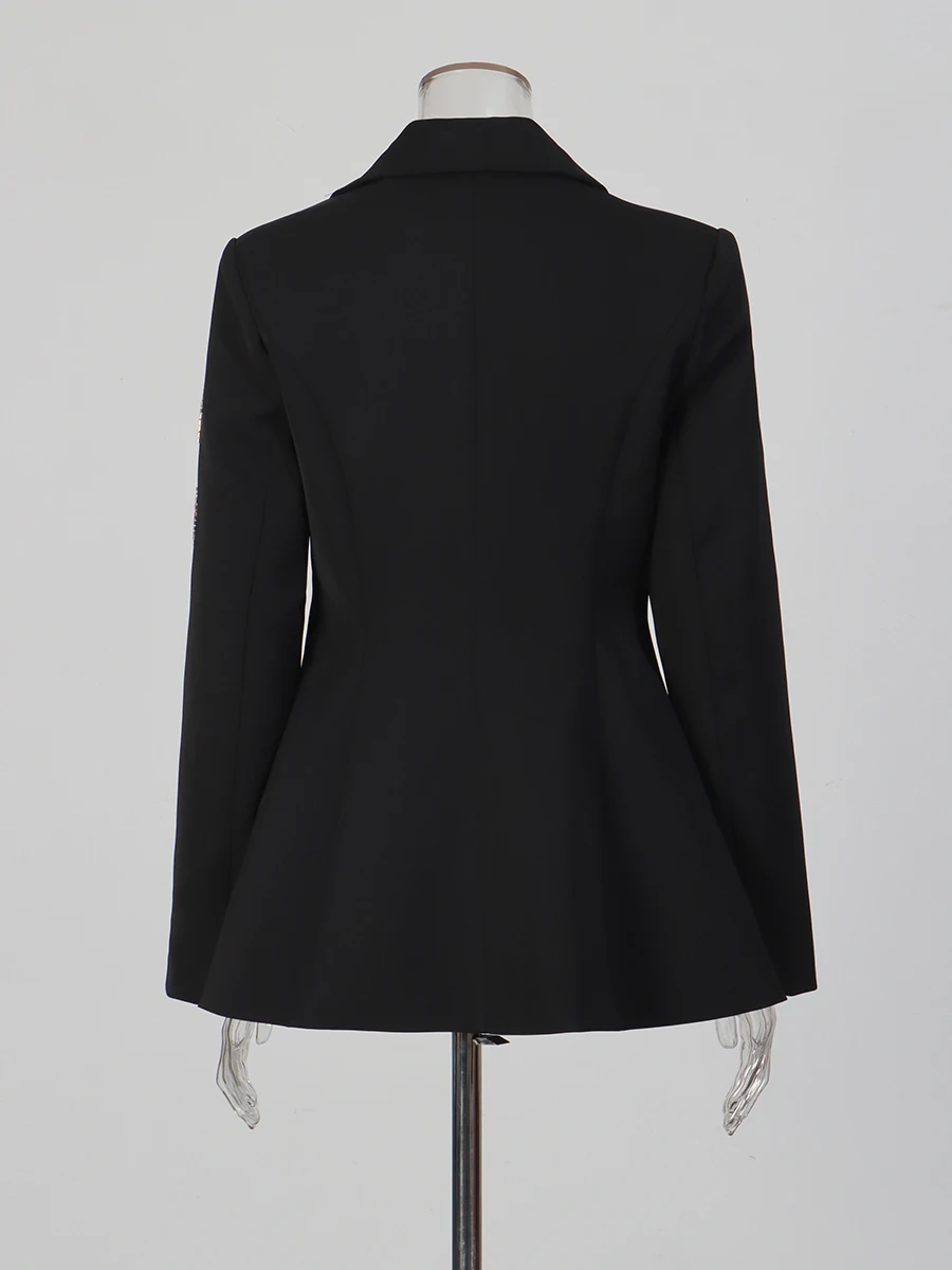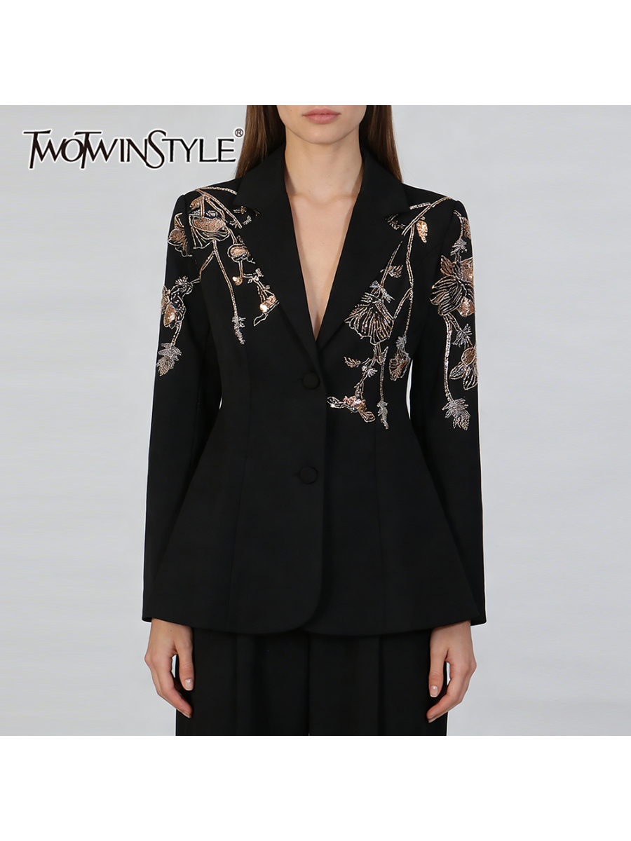 TWOTWINSTYLE Black Spliced Beading Slimming Blazer for Women Lapel Long Sleeves High Waist Patchwork Ruffles Blazers Female New