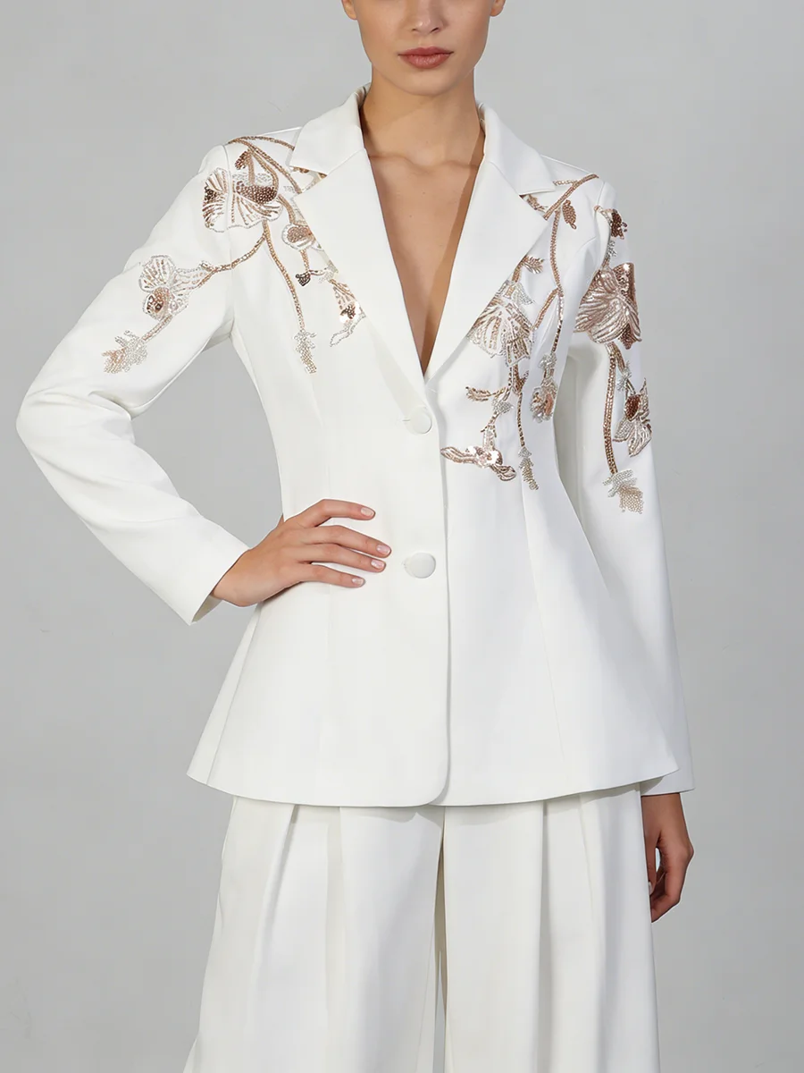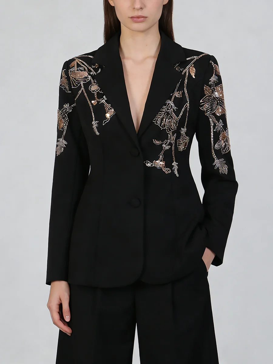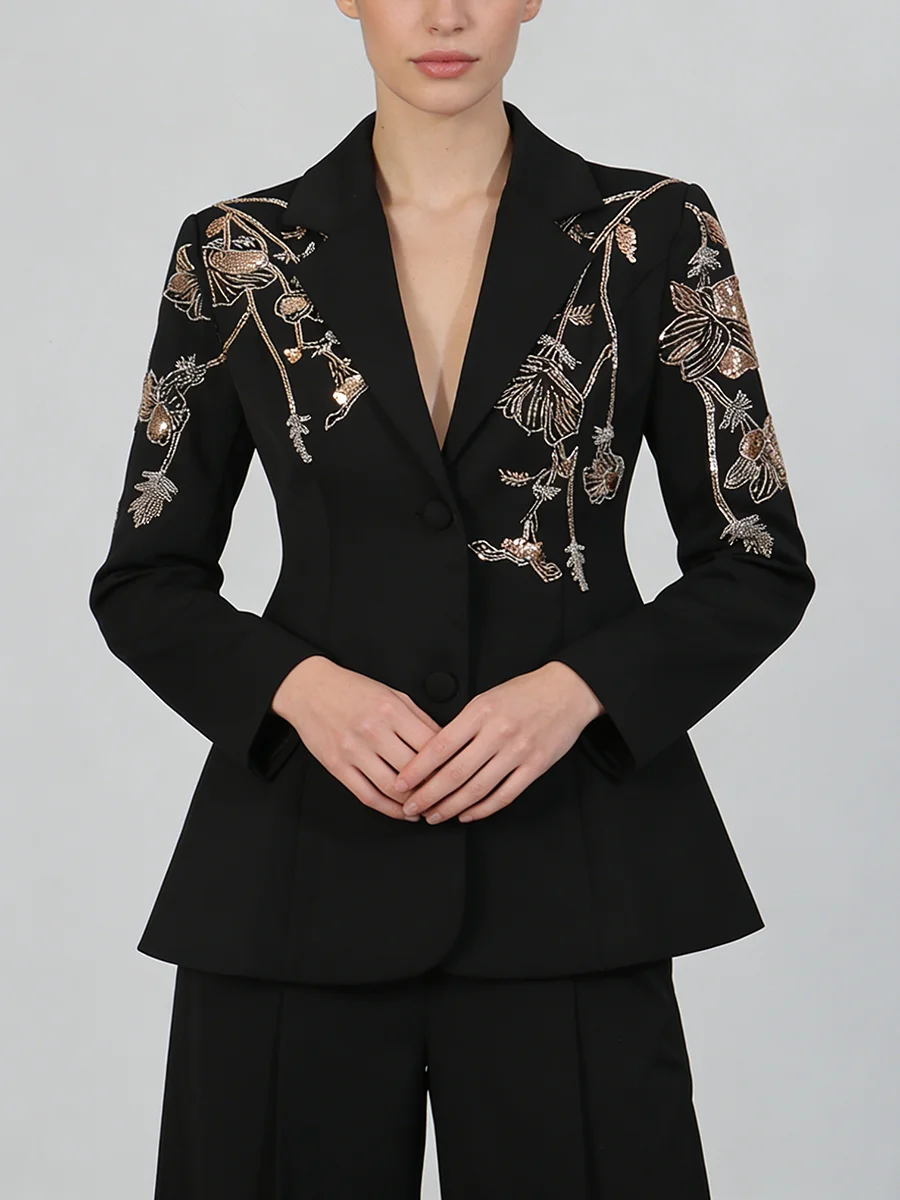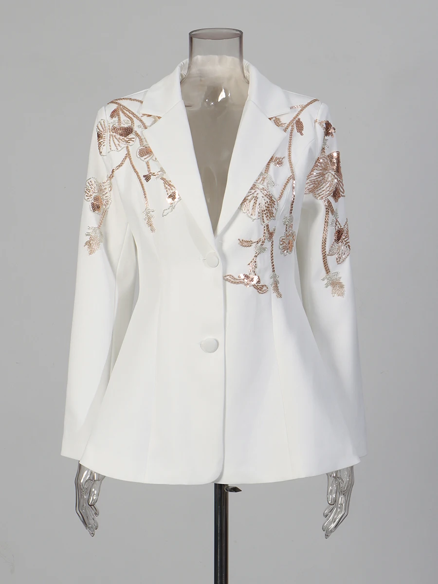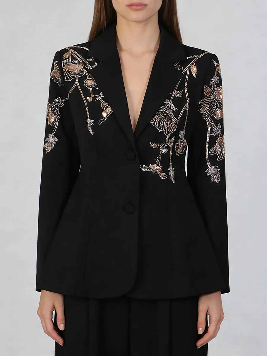 TWOTWINSTYLE Black Spliced Beading Slimming Blazer for Women Lapel Long Sleeves High Waist Patchwork Ruffles Blazers Female New
