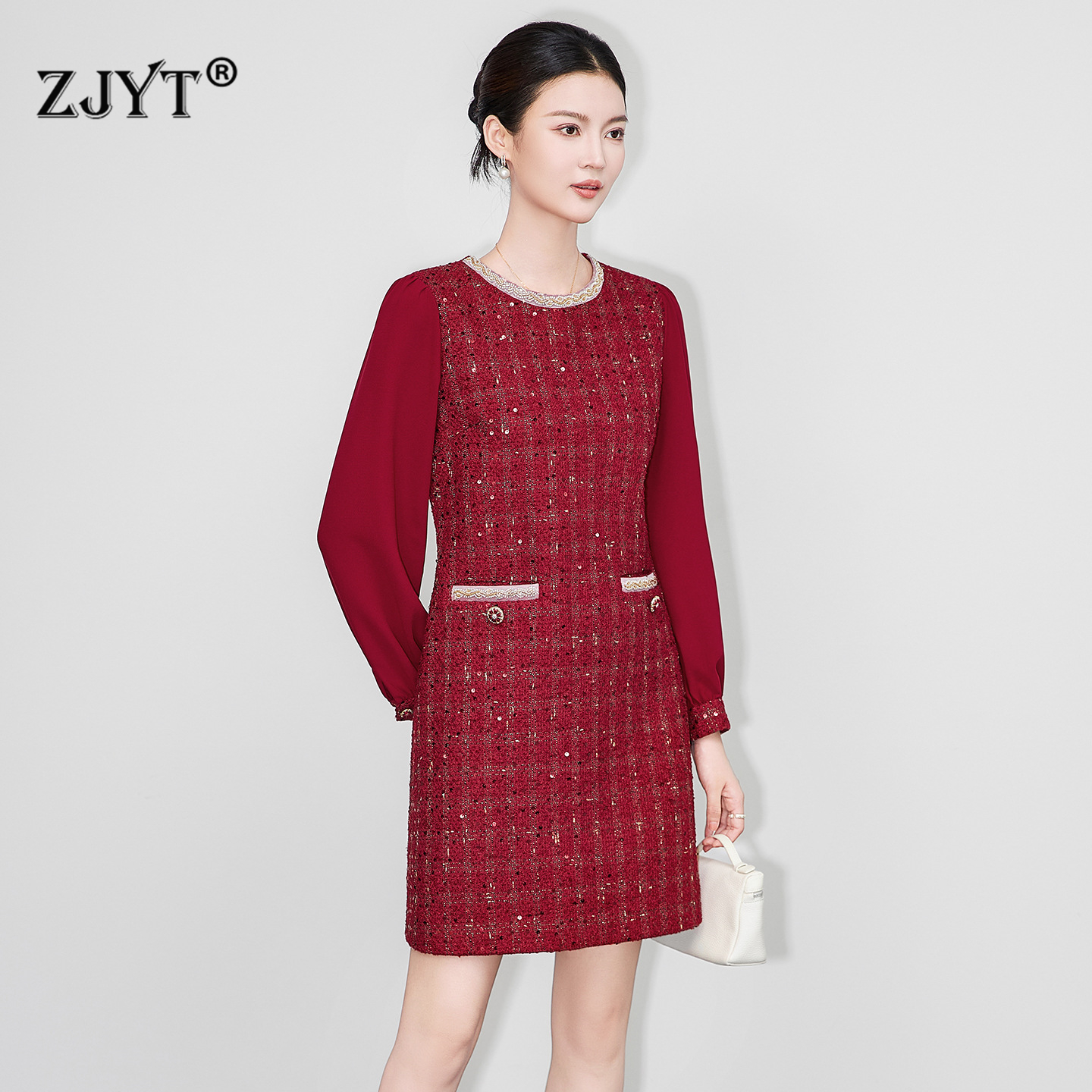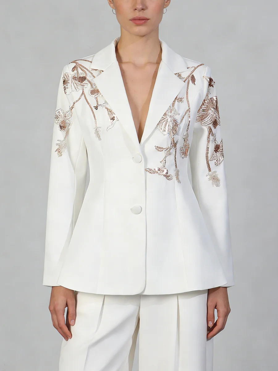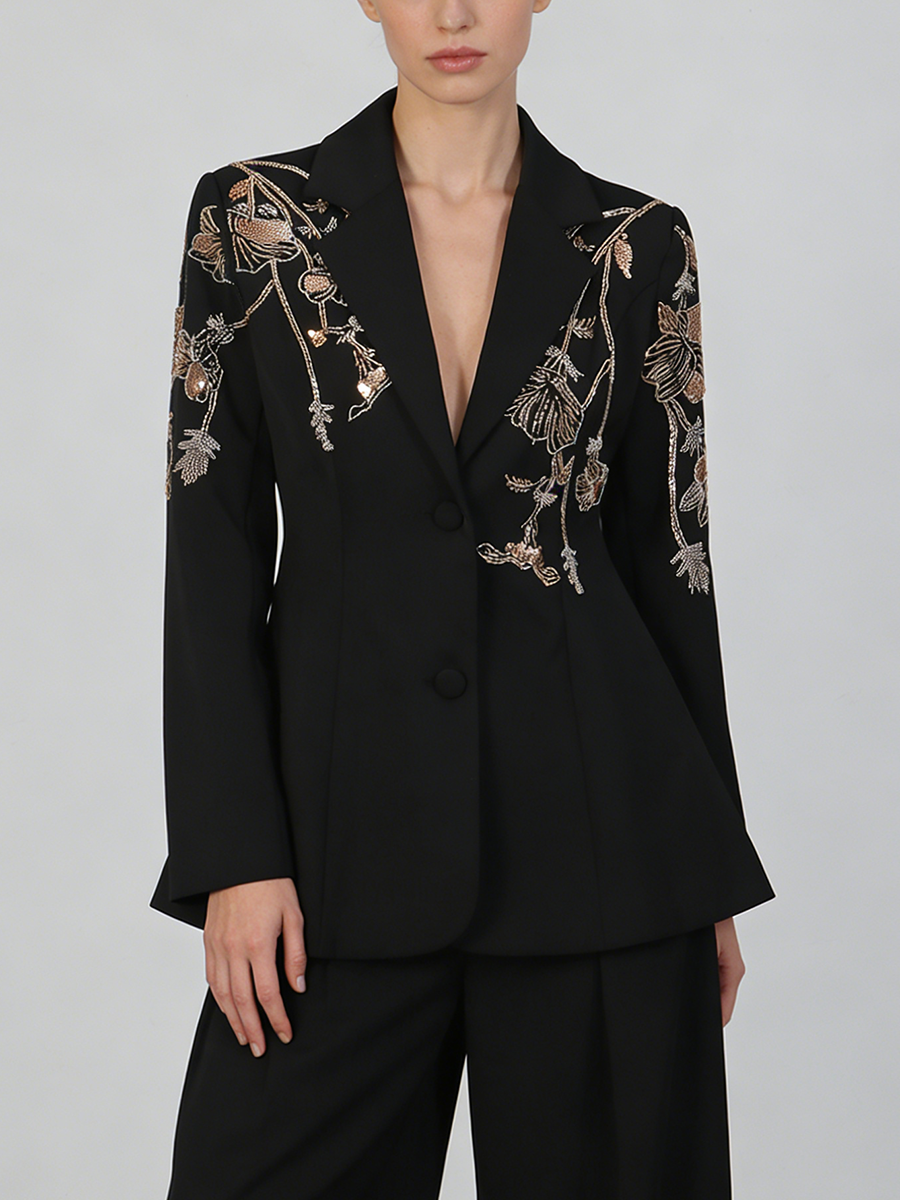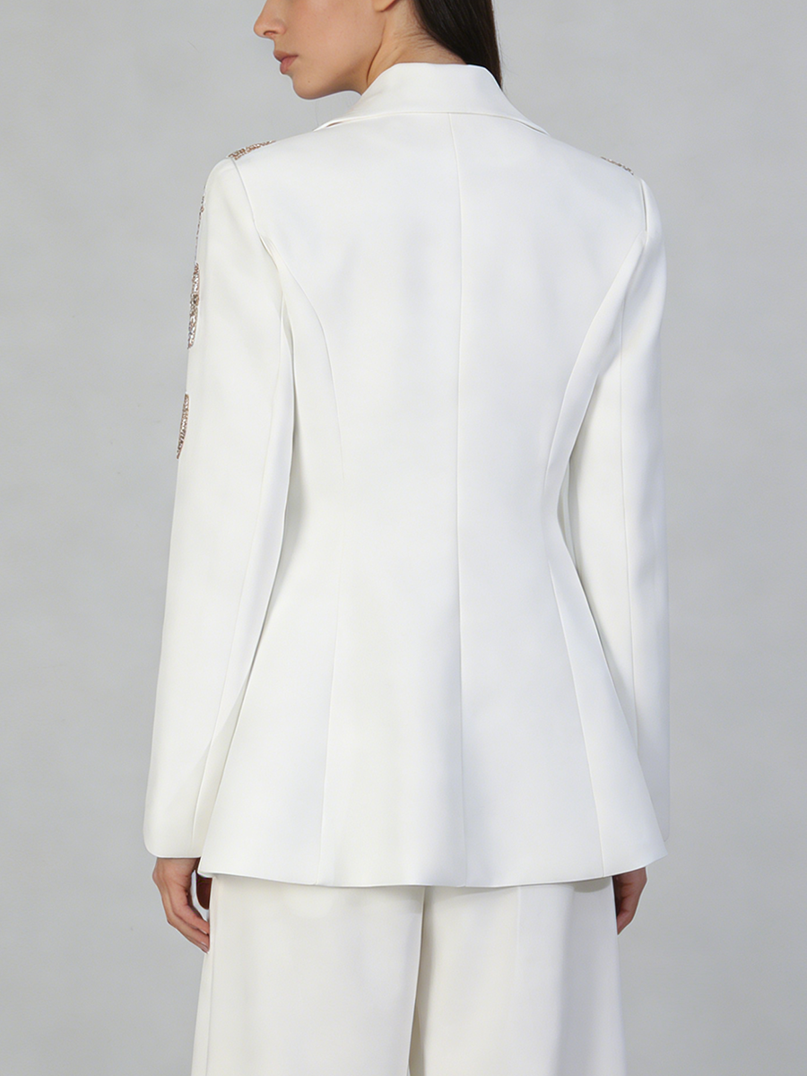 TWOTWINSTYLE Black Spliced Beading Slimming Blazer for Women Lapel Long Sleeves High Waist Patchwork Ruffles Blazers Female New