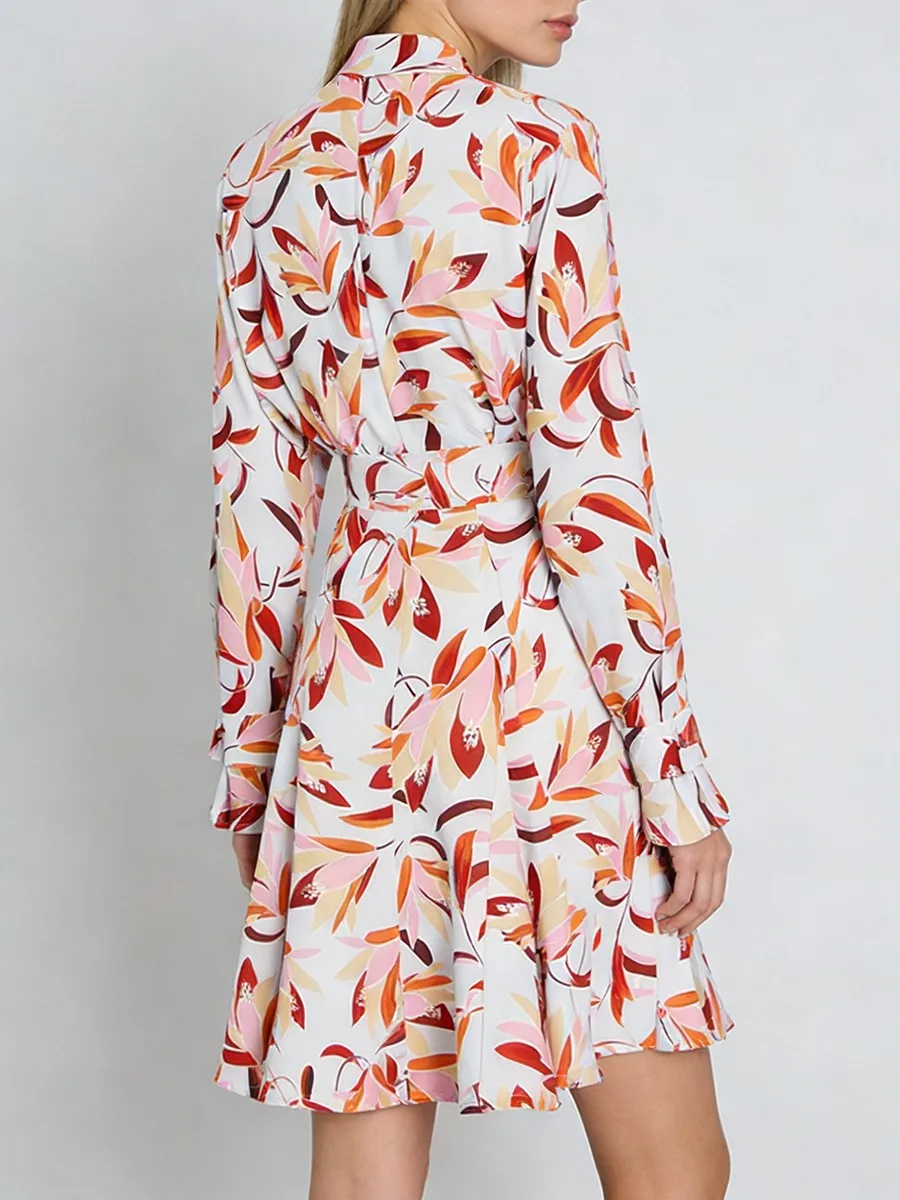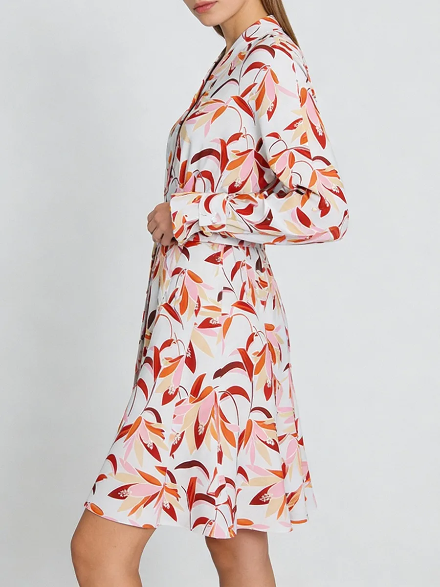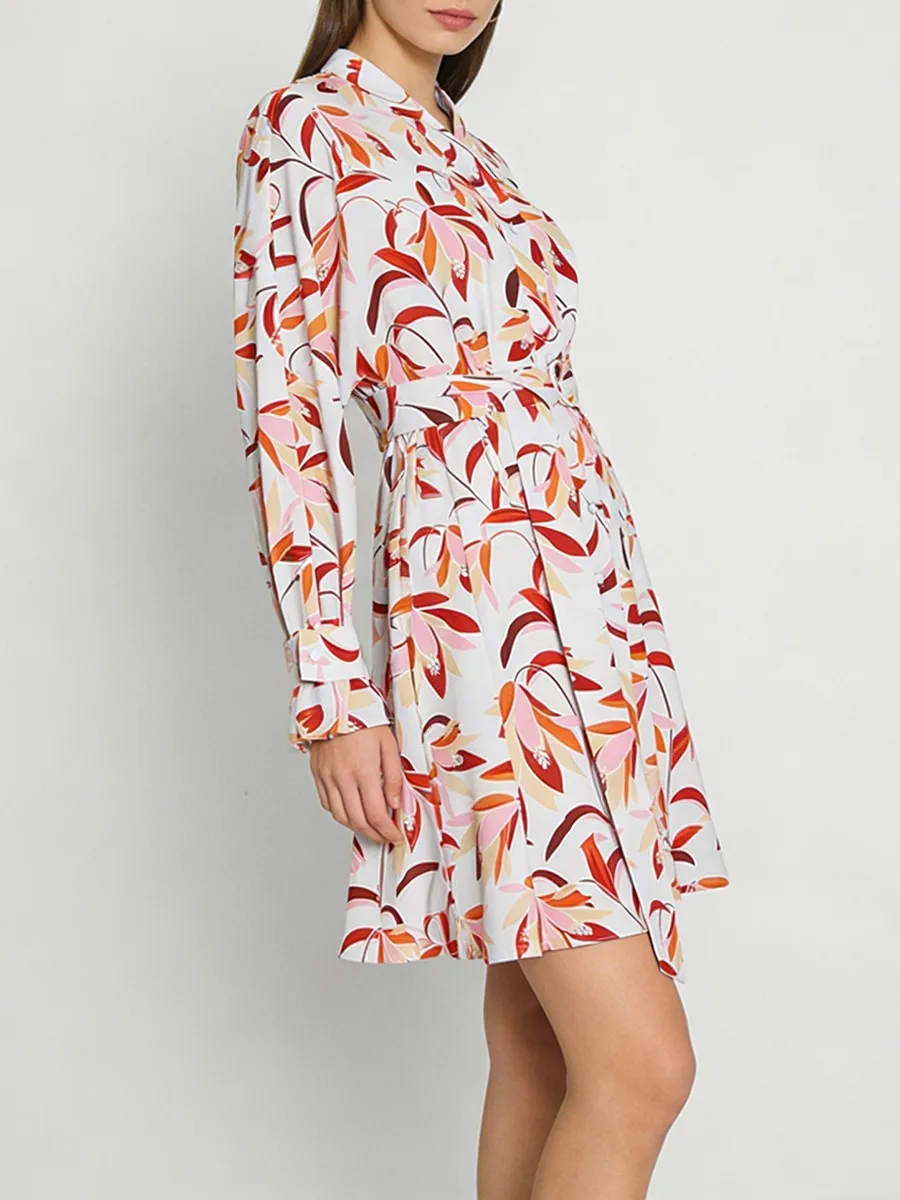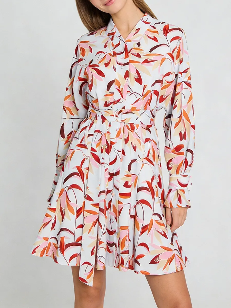 TWOTWINSTYLE Casual Printing Spliced Belt Loose Dresses for Women V Neck Long Sleeves Patchwork Buttons Vintage Dress Female New