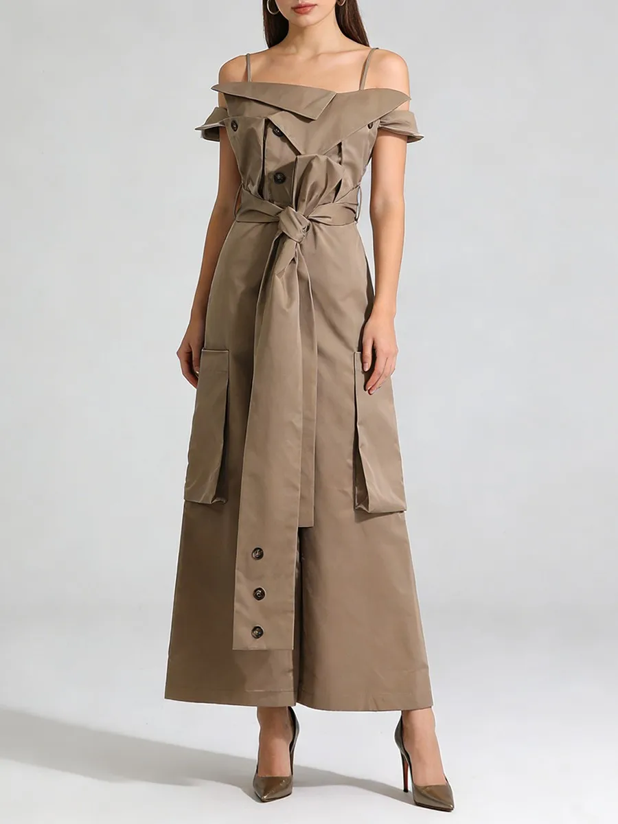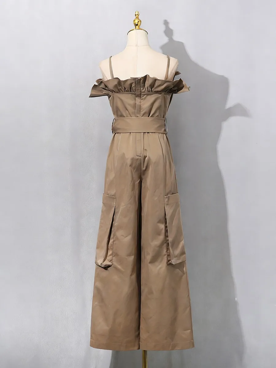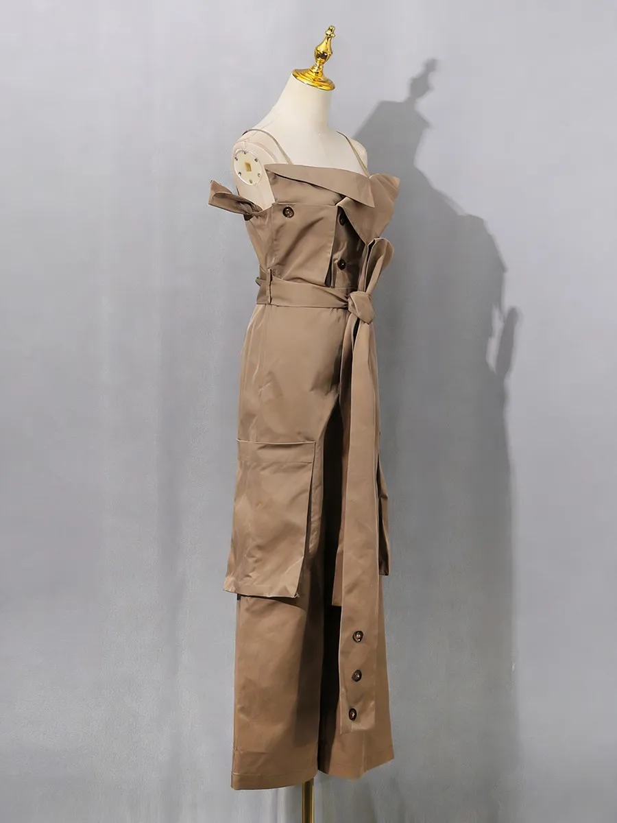 TWOTWINSTYLE Design Sense Spliced Buttons Fashion Jumpsuit for Women Square Neck Sleeveless Tunic Wide Leg Jumpsuits Female New