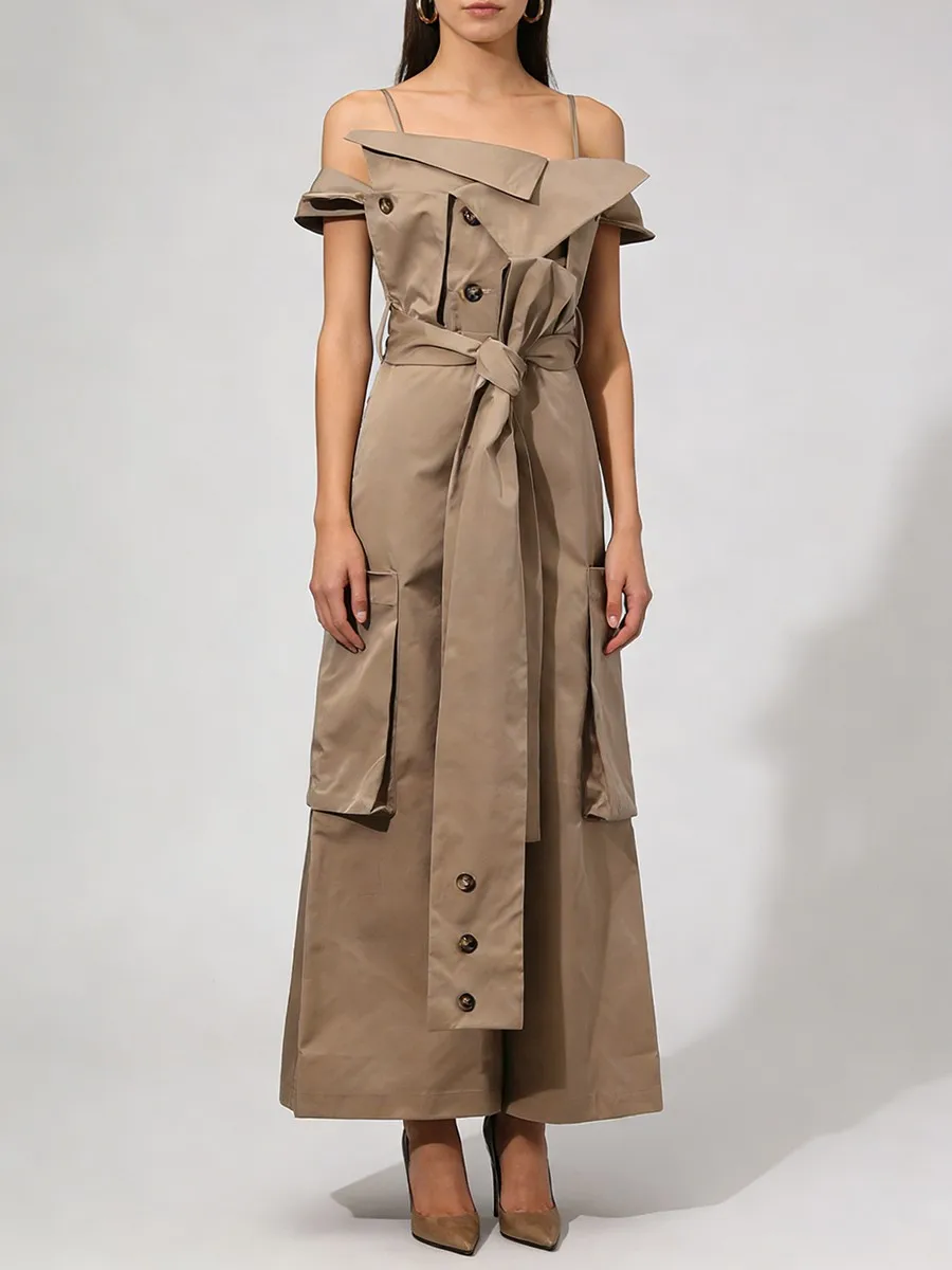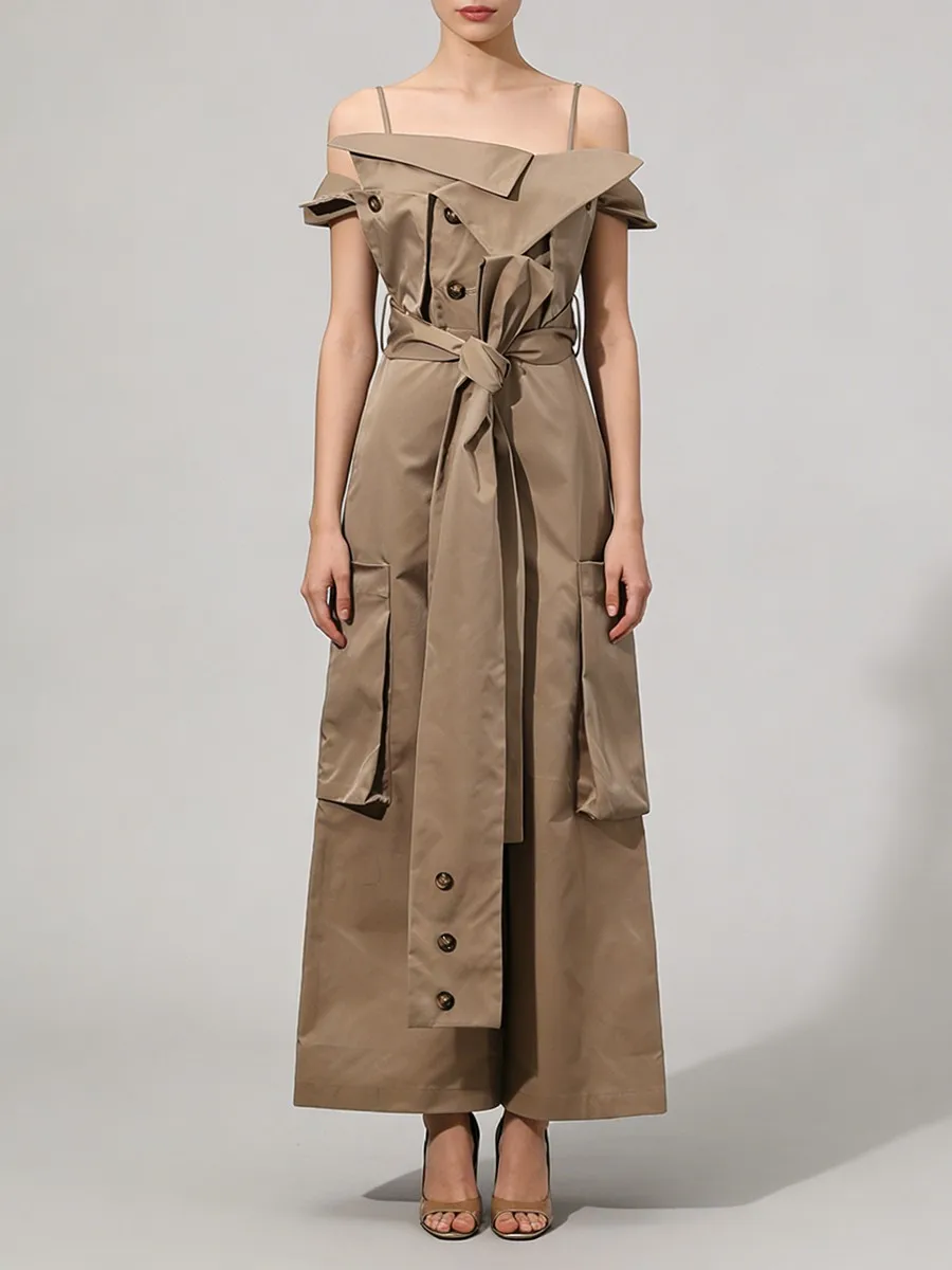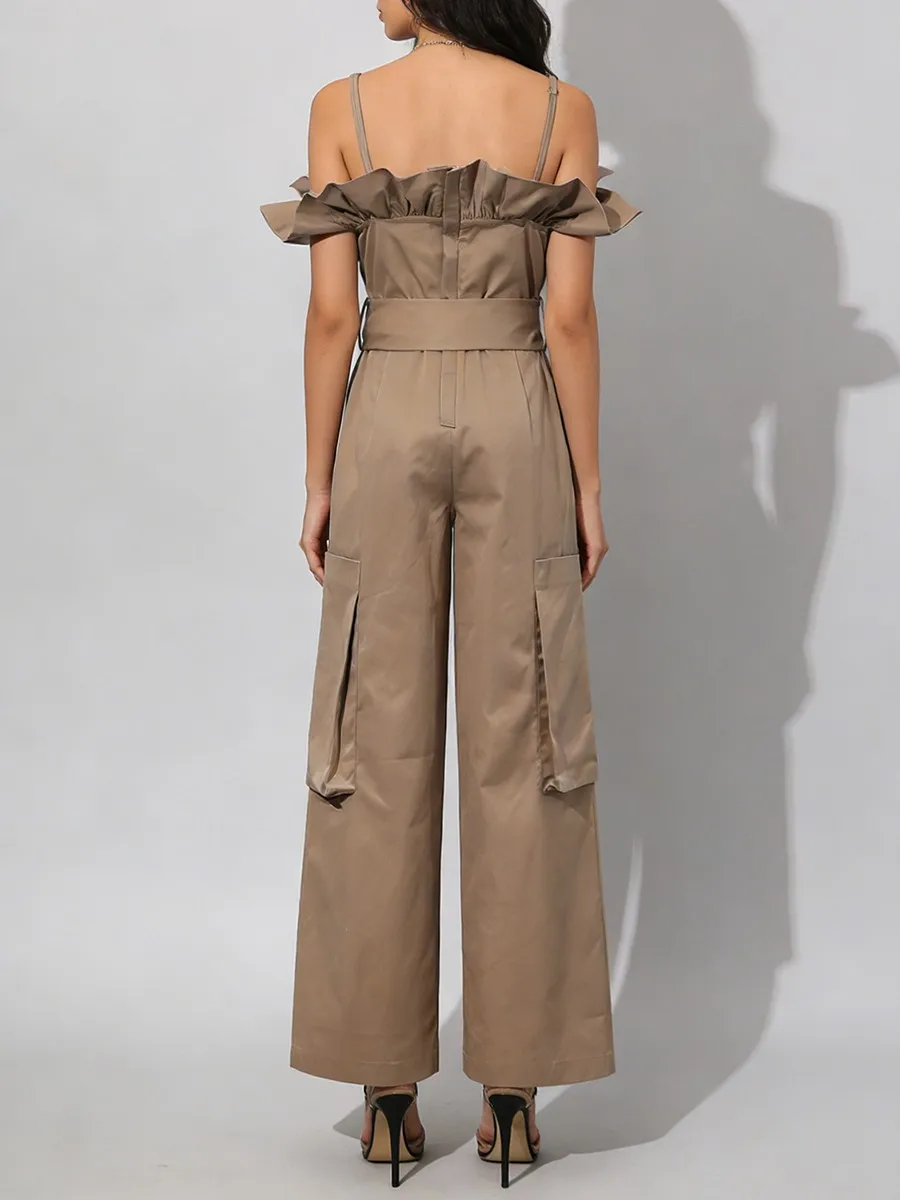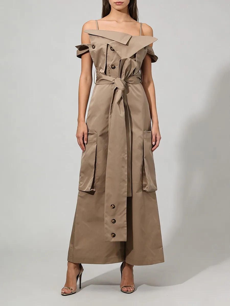 TWOTWINSTYLE Design Sense Spliced Buttons Fashion Jumpsuit for Women Square Neck Sleeveless Tunic Wide Leg Jumpsuits Female New