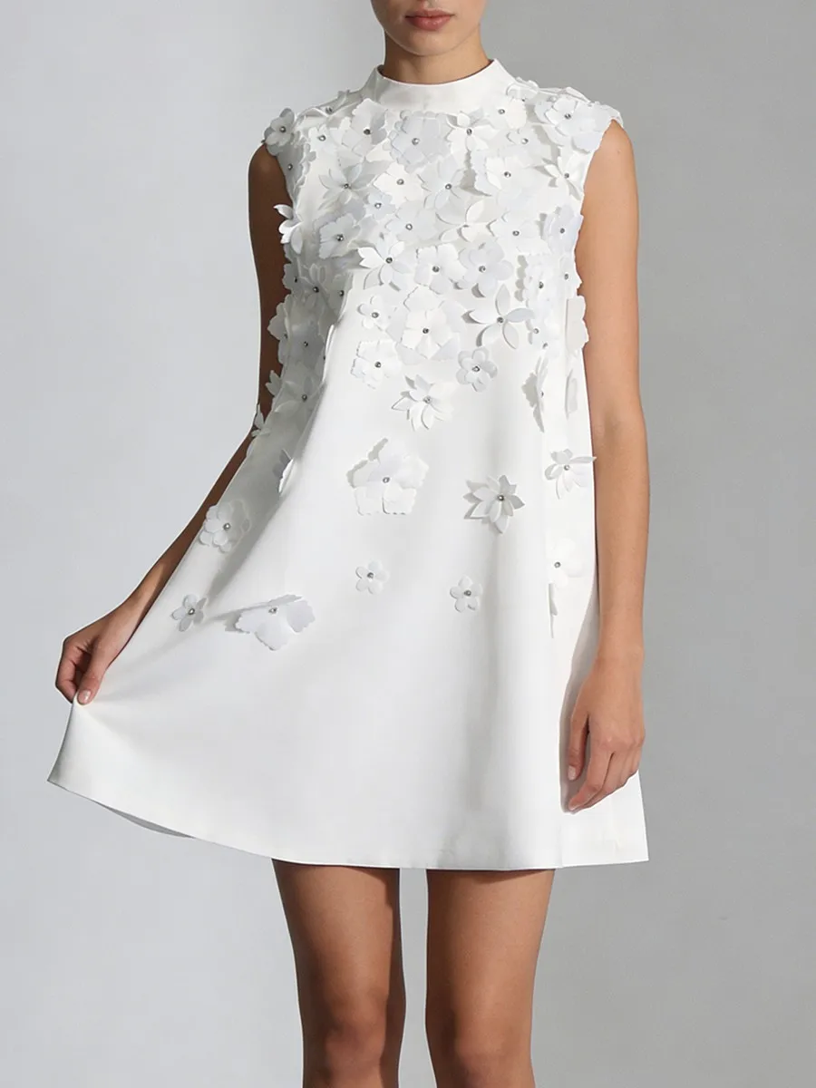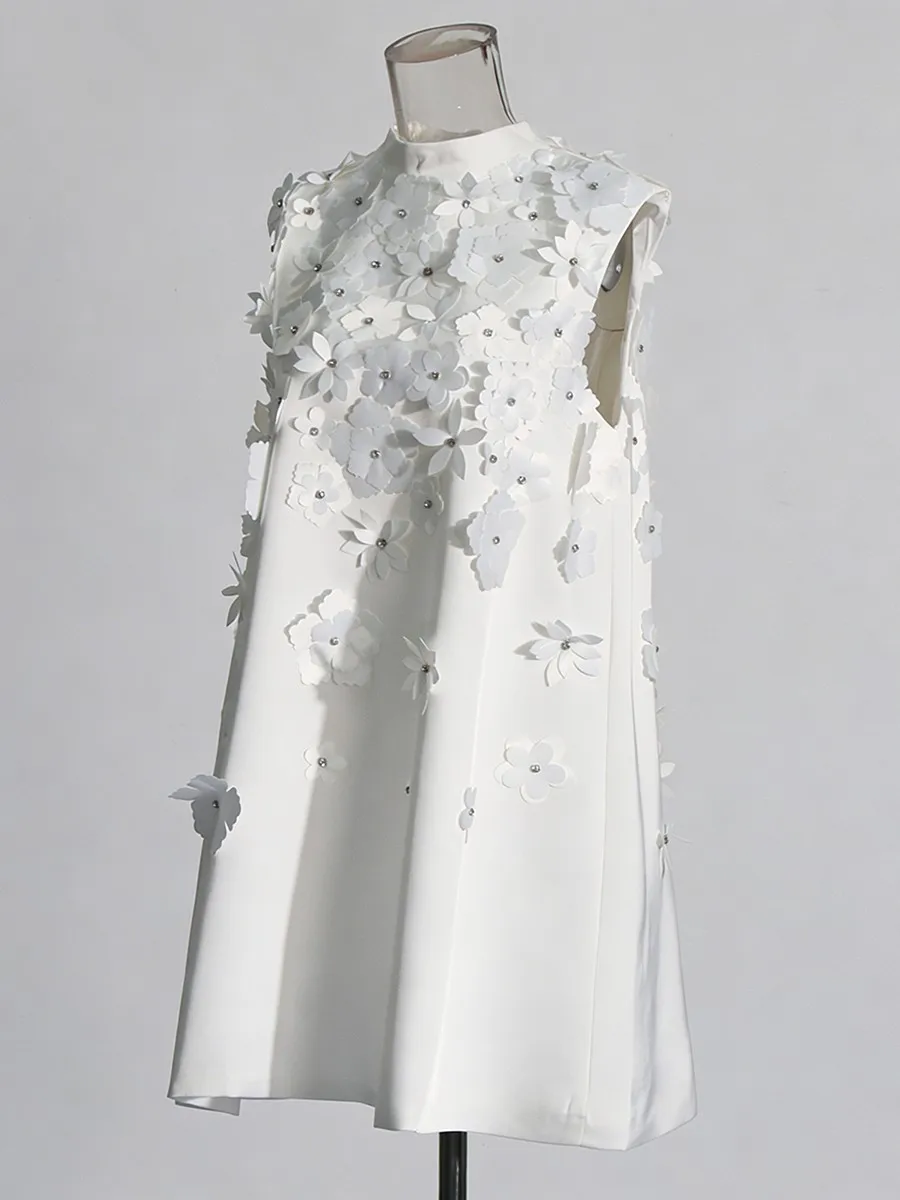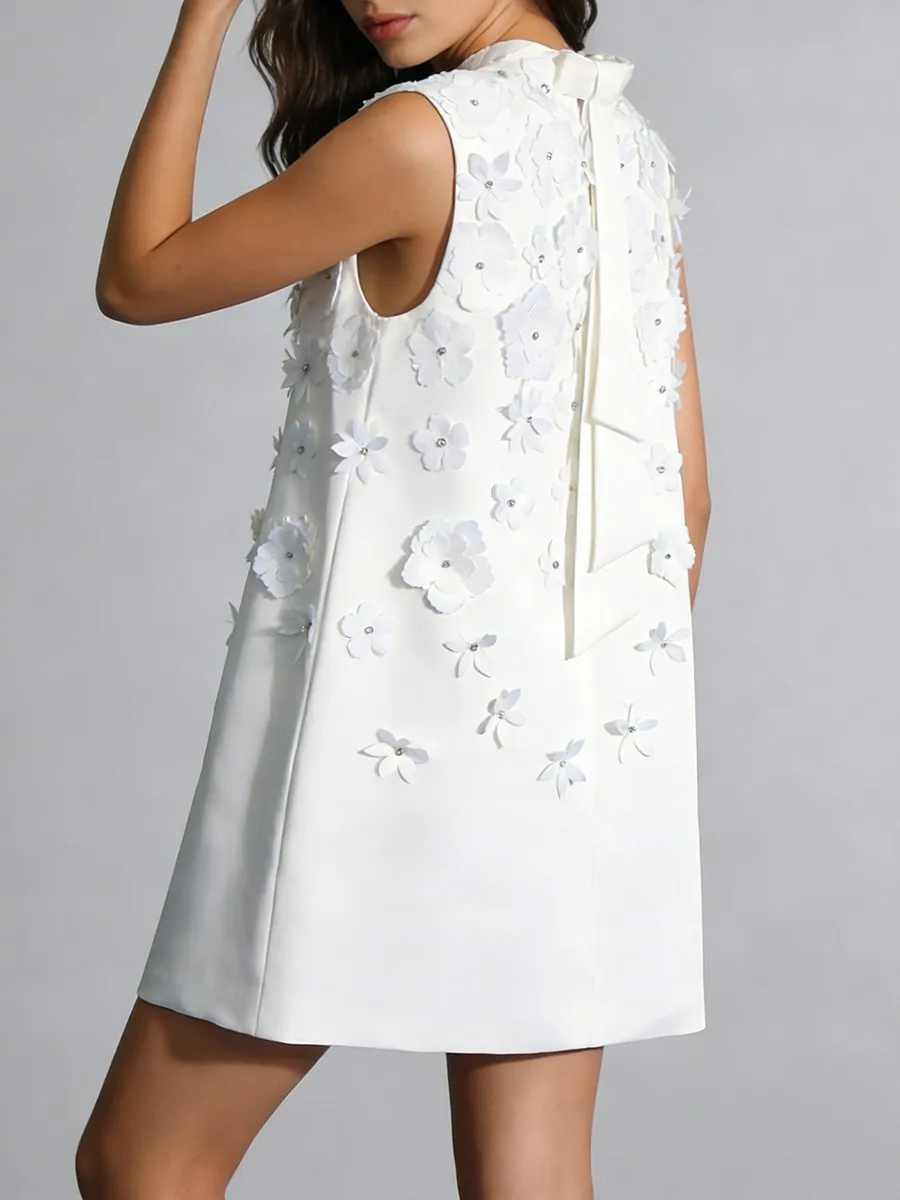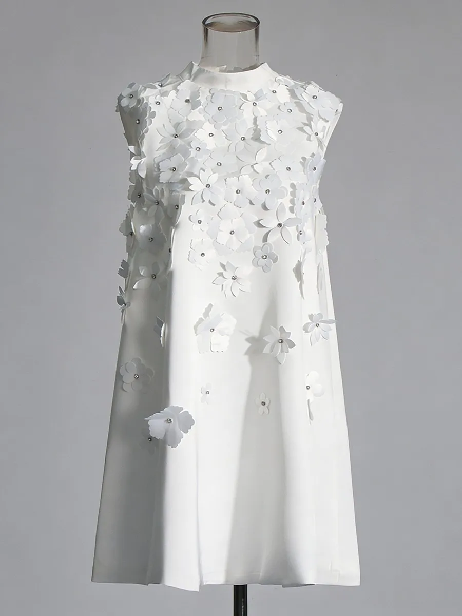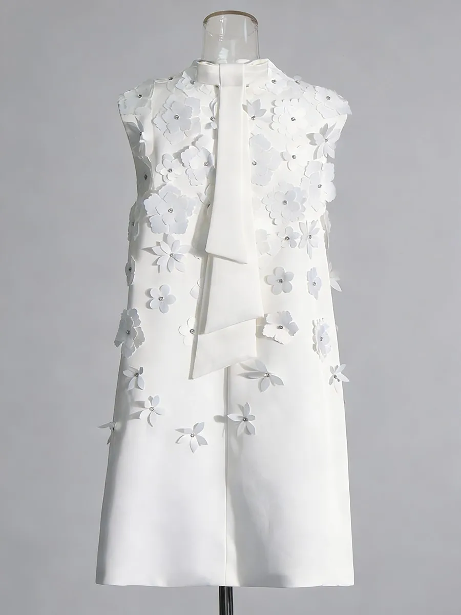 TWOTWINSTYLE Fashion Loose Spliced Appliques Basics Dress for Women Round Neck Sleeveless Patchwork Bowknot Dresses Female New